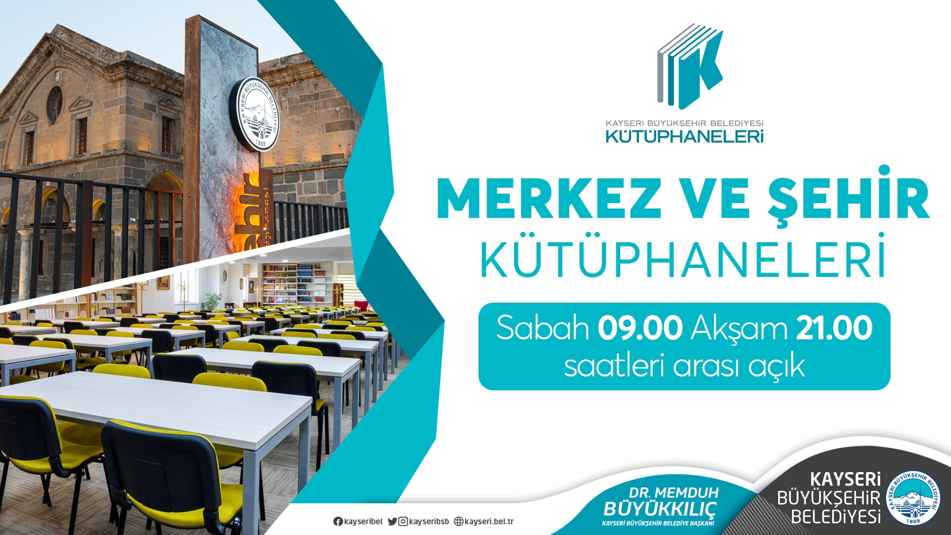 ve Şehir Kütüphanesi’nin çalışma saatleri Başkan Dr. Memduh Büyükkılıç’ın