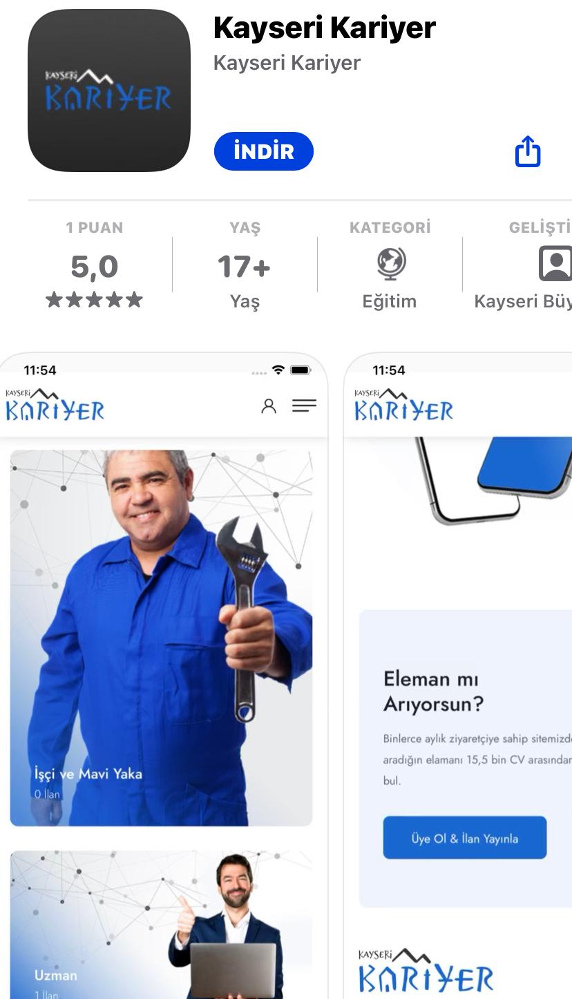ilgilenen Kayseri Kariyer Merkezi, web sitesi ve cep telefonu uygulaması