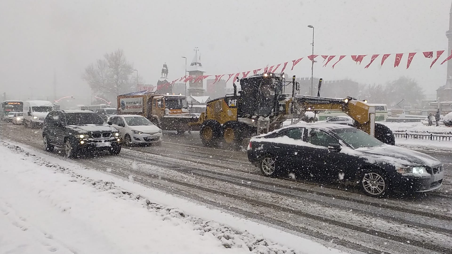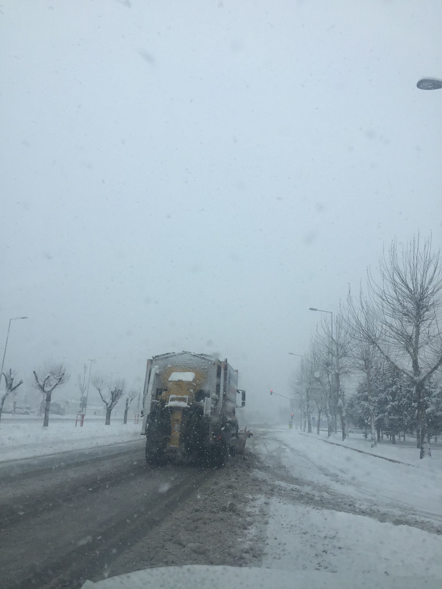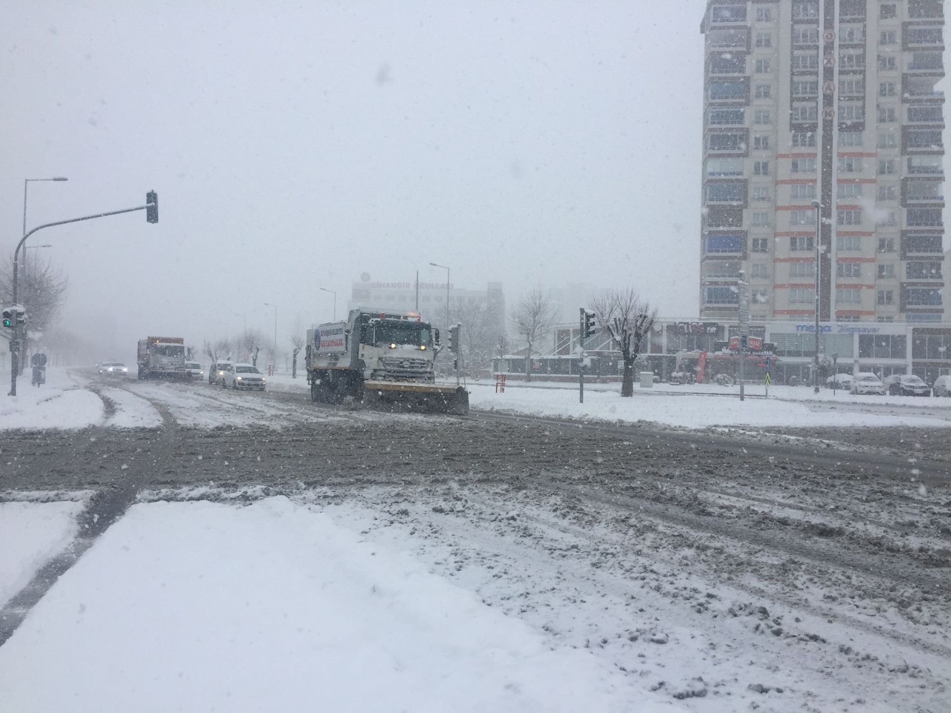çalışan Büyükşehir Belediyesi’nin karla mücadele ekipleri, kar yağışının
