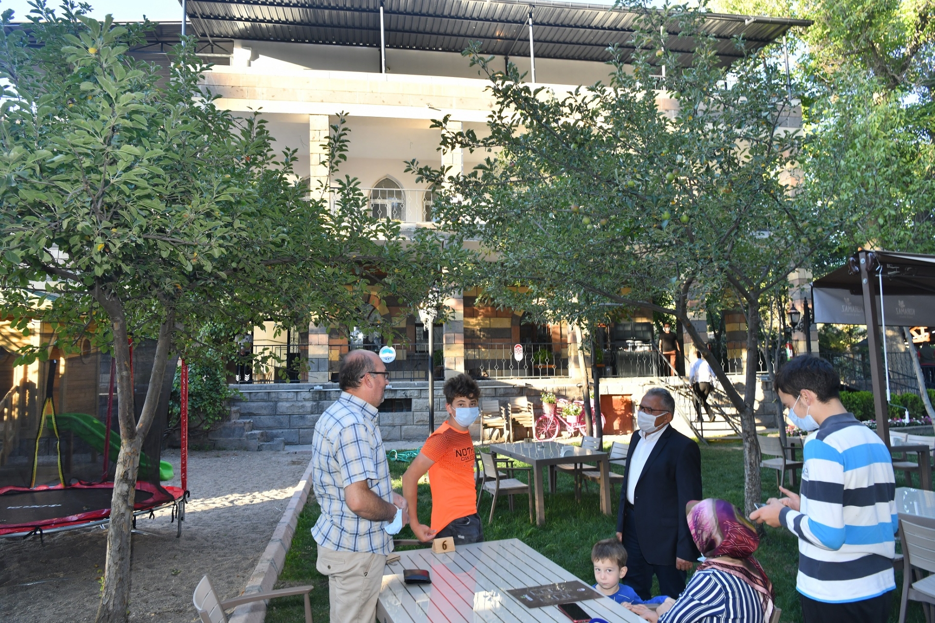 yemek salonları ile bahçesini gezerek görevlilerden de bilgi aldı.