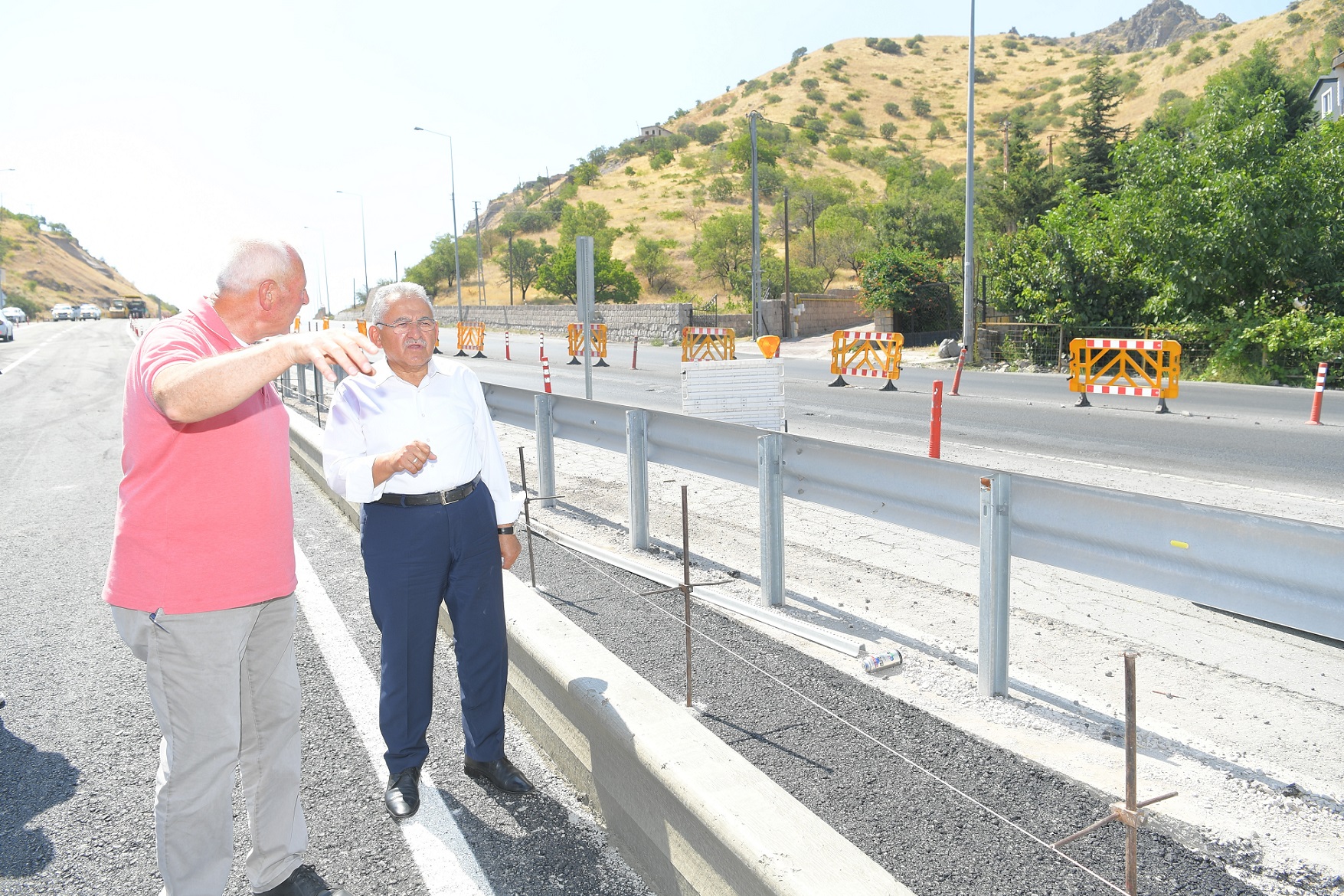 Memduh Büyükkılıç, devam eden yol yapım çalışmalarını titizlikle takip ediyor.