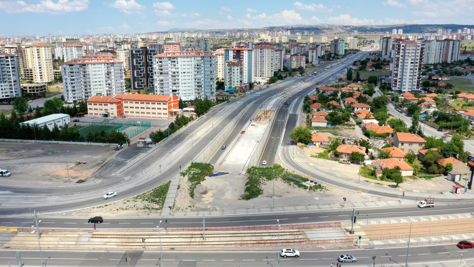 çalışmalarını sürdürürken, hattın 15 Temmuz Caddesi ile kesiştiği kavşakta yol