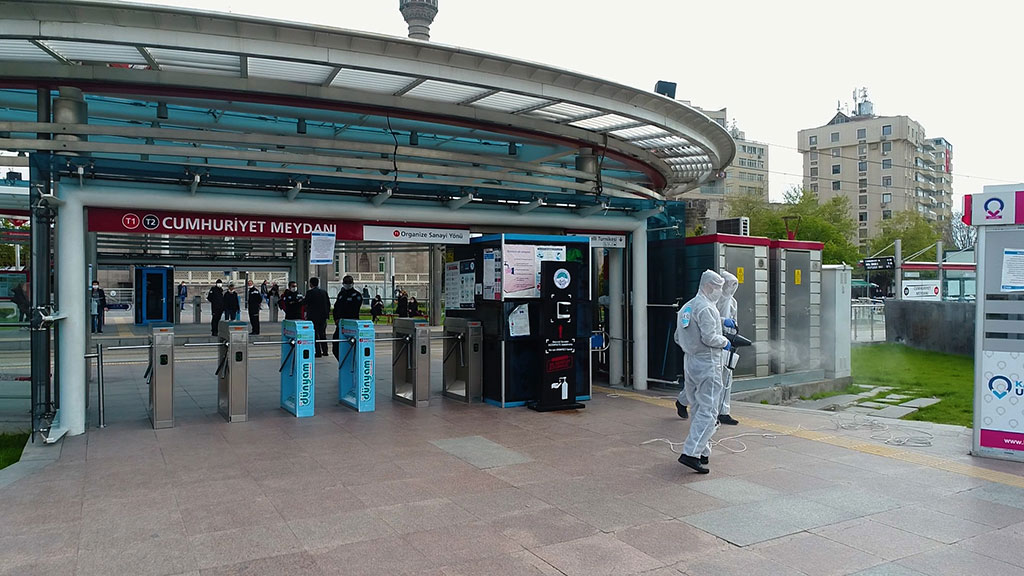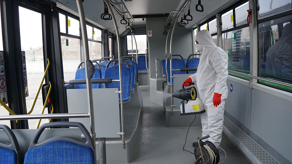 Kayseri Büyükşehir Belediyesi Covid-19 salgınına karşı her alanda düzenli olarak yürüttüğü temizlik ve dezenfeksiyon çalışmalarına ulaşımda da hız kesmeden devam ediyor. Bu kapsamda vatandaşlar tarafından yoğun bir şekilde kullanılan toplu taşıma araçlarındaki dezenfeksiyon işlemleri için toplam 4 bin 654 lt dezenfektan kullanıldı. Kayseri Büyükşehir Belediyesi, virüs ve mikroplara karşı mücadelesi çerçevesinde gerçekleştirdiği temizlik ve dezenfeksiyon çalışmalarına Büyükşehir Belediye Başkanı Dr. Memduh Büyükkılıç’ın talimatlarıyla devam ediyor. Salgının başından beri toplu taşıma araçlarında azami gayretle temizlik işlemleri yapan Büyükşehir Belediyesi, Kayserililerin daha güvenli ve daha sağlıklı ulaşım gerçekleştirebilmeleri için hizmet ediyor. Buna göre Büyükşehir Belediyesi tarafından raylı sistem araçlarında 4 bin 543 kez dezenfeksiyon işlemi yapıldı ve sefere çıkan her araç günlük olarak dezenfekte edildi. Ayrıca otobüslere de 14 bin 825, otobüs duraklarına da bin 365 kez dezenfeksiyon işlemi yapıldı. Tramvay istasyonlarına 792 kez dezenfeksiyon işlemi yapılırken, Büyükşehir Belediyesi’nin tüm hizmet birimlerinde, ortak kullanım alanlarında, bakım atölyelerinde, makinist ekip binalarında ise temizlik işlemleri devam etti. Kayserililerin her alanda olduğu gibi ulaşımda da gönüllerinin rahat etmesi için çalışan Büyükşehir Belediyesi, böylelikle dezenfeksiyon işlemlerin de toplam da 4 bin 654 lt dezenfektan kullandı.