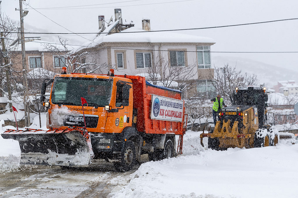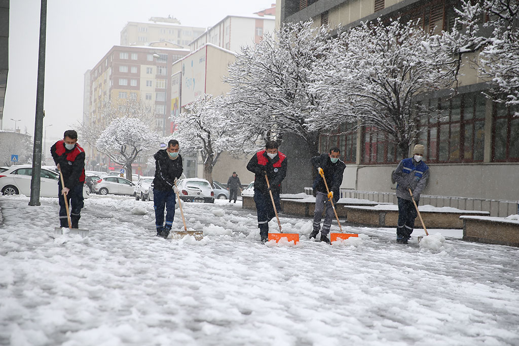 Kayseri Büyükşehir Belediyesi ekipler gece boyunca etkili olan kar yağışına anında müdahale etti. Büyükşehir Belediyesi ekiplerinin çalışmaları sonucu olumsuz hava koşulları nedeniyle ulaşım etkilenmedi. Kayseri Büyükşehir Belediyesi ekiplerinin kar temizleme çalışmaları kesintisiz devam ediyor. Gece boyunca etkili olan ve etkisini devam ettiren kar yağışı nedeniyle kent merkezi ve ilçelerde takviye ekiplerle çalışmalar yapıldı. Büyükşehir Belediyesi ekipleri yol açma ve kar temizleme çalışmalarını 24 saat esasıyla sürdürdü. Kar yağışının etkili olduğu bölgelerde yapılan yoğun çalışmalar sonucu kent merkezi ve ilçelerdeki tüm yollar ulaşıma açık tutuldu. Büyükşehir Belediyesi kar temizleme ekiplerinin çalışmaları kesintisiz olarak devam ediyor.