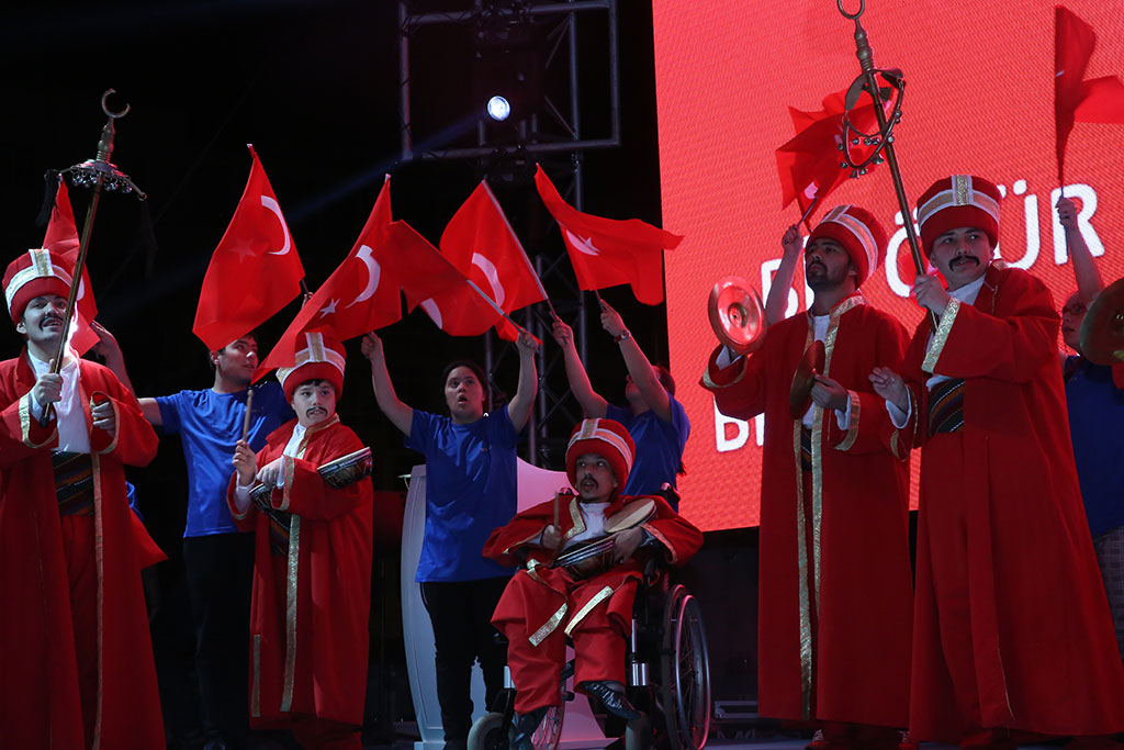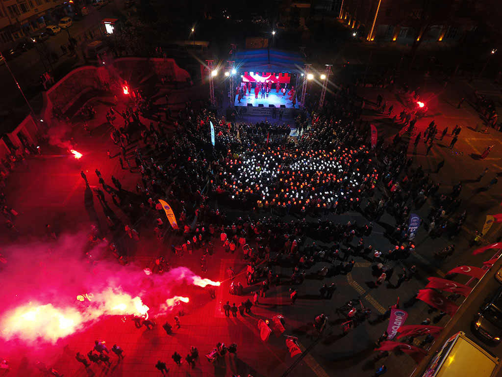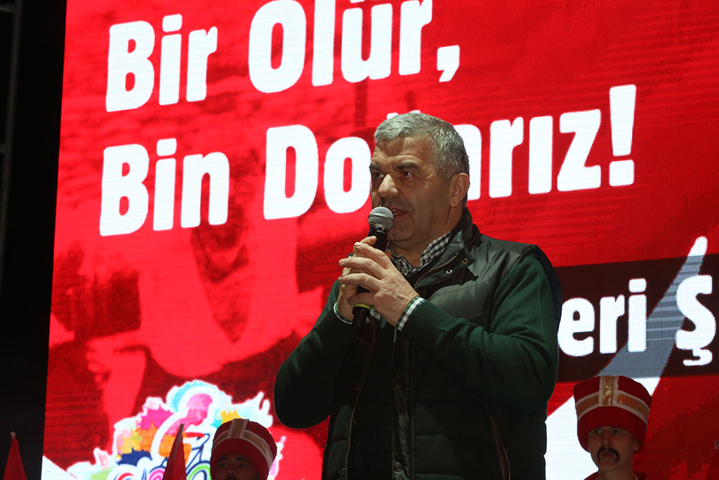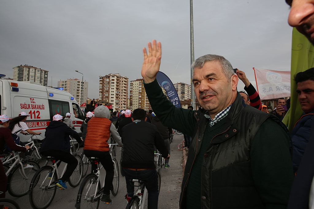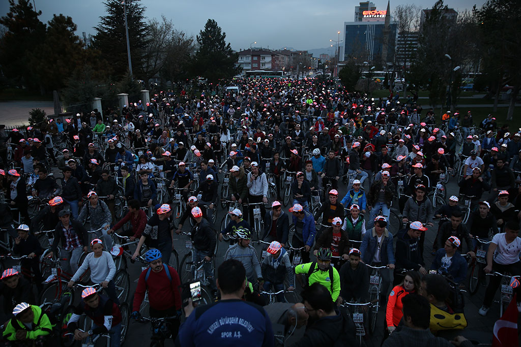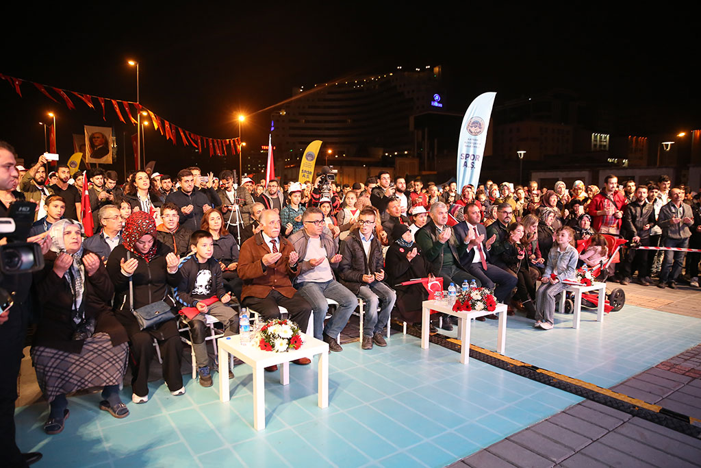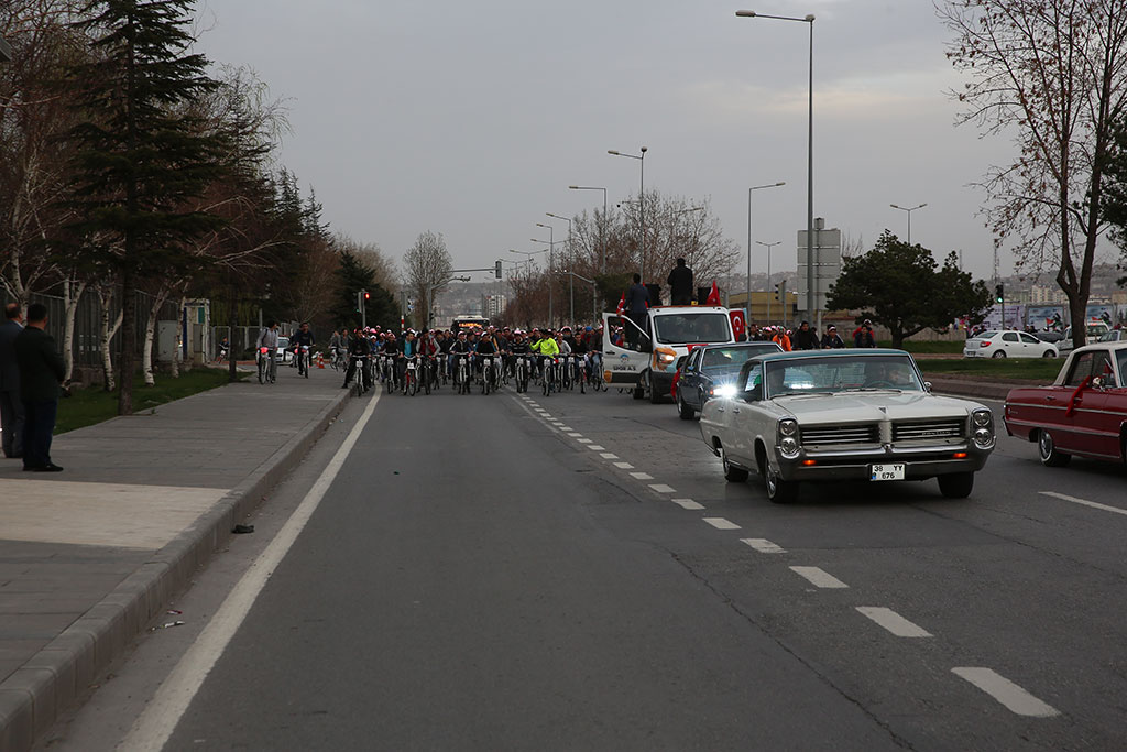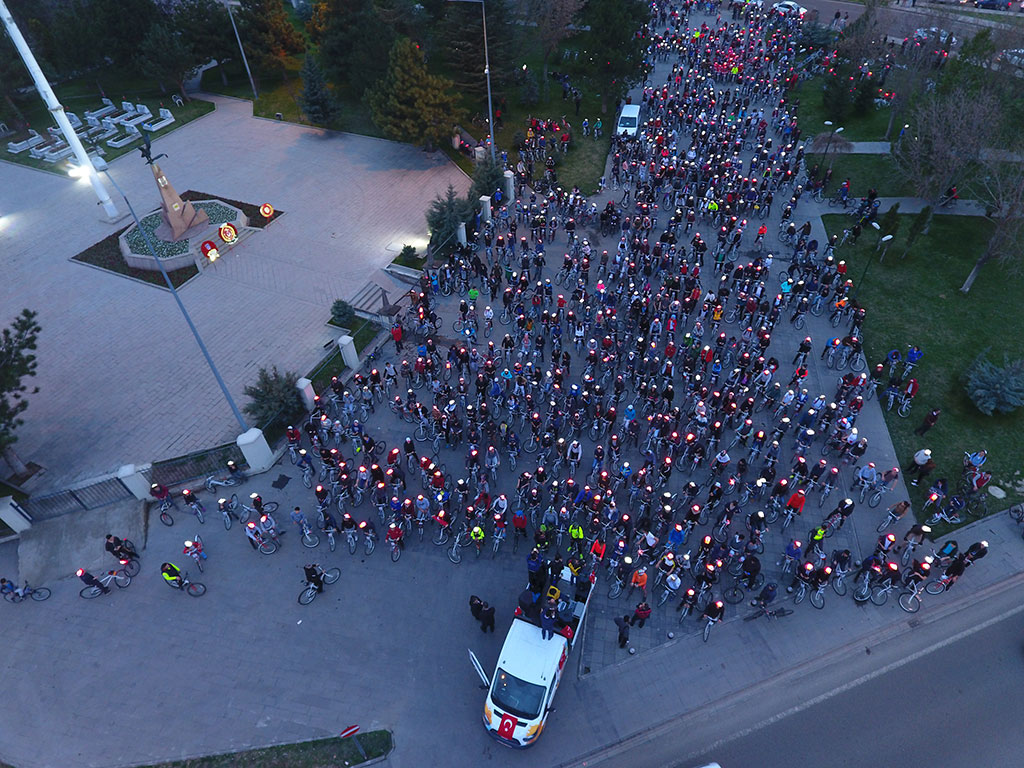 Kayseri Büyükşehir Belediyesi bünyesindeki Spor A.Ş. Çanakkale Zaferi’nin 103. Yıldönümü vesilesiyle “Kayseri Şehitlerini Anıyor” adı altında muhteşem bir etkinlik düzenledi. Çanakkale ile birlikte Afrin Zaferi’nin de kutlandığı 2 binden fazla bisikletlinin katılımıyla başlayan etkinlik Türk bayraklarıyla Cumhuriyet Meydanı’na gelen binlerce kişinin katılımıyla devam etti. Büyükşehir Belediye Başkanı Mustafa Çelik, “Bu coşku, bu iman, bu vatan millet aşkı oldukça hiçbir düşman bu memlekete zarar veremez. Bu ezanı susturamaz, bu bayrağı indiremez” dedi. Spor A.Ş. baharla birlikte başlattığı kitle sporları etkinliklerine “Kayseri Şehitlerini Anıyor” adı altında anlamlı bir programla start verdi. Talas’taki Paraşüt İndirme Parkı’nda başlayan etkinliğe 2 binden fazla bisikletli katıldı. Start öncesi katılımcılara seslenen Büyükşehir Belediye Başkanı Mustafa Çelik, ulusumuz için çok önemli bir günü yaşadığımızı belirterek, “103 yıl önce kazanılan Çanakkale Zaferi’nin yıldönümünü kutlarken bir taraftan da Afrin Zaferi’ni kutluyoruz” dedi. Başkan Çelik’in start vermesiyle birlikte bisikletliler Komando Caddesi’ni takip ederek Erciyes Üniversitesi karşısından Talas Yolu’na çıktılar. Erciyes Klasik Otomobilciler Derneği de Türk bayrakları ile süslenen klasik otomobilleri ile kortejin önünde yer aldı. İLK DURAK KARTAL ŞEHİTLİĞİ Binlerce kişi etkinliğin adına uygun olarak ilk olarak Kartal Şehitliği’nde bir araya geldi. Burada şehitlerimizi için Kuran-ı Kerim okundu ve dualar edildi. Kartal Şehitliği’ni ziyaretin ardından hareket eden bisikletliler Cumhuriyet Meydanı’na geldiler. Cumhuriyet Meydanı’nda bisikletlilerin ışıklı kasklarıyla ay yıldız şekli oluşturuldu. Cumhuriyet Meydanı’nda devam eden “Kayseri Şehitleri’ni Anıyor” etkinliğine ellerinde Türk bayraklarıyla vatandaşlar da katıldı. Büyükşehir Belediye Başkanı Mustafa Çelik’in de katıldığı anma etkinliğinde şehitlerimiz için Kuran-ı Kerim okundu. Kuran-ı Kerim’in ardından İstiklal Marşı okundu ve daha sonra anlamlı günde anlamlı bir grup sahne aldı. Başkan Çelik’ten ritim grubu oluşturmak için destek isteyen farklı engel gruplarından gençlerin kendilerine verilen destekle kurdukları Mehter Takımı bir konser verdi. Büyükşehir Belediye Başkanı Mustafa Çelik de kürsüden yaptığı konuşmaya özel çocukların oluşturduğu mehter takımına değinerek başladı. Engelli gençlerin hiçbir engel tanımadıklarını görmekten duyduğu memnuniyeti dile getiren Başkan Çelik, konser nedeniyle teşekkür etti. “BAYRAK İNMEZ, EZAN DİNMEZ” Kayseri Cumhuriyet Meydanı’ndaki coşkuya atıfta bulunarak Kayseri’nin kendine yakışanı yaptığını ifade eden Başkan Mustafa Çelik, “Bu meydan yine kendi yakışanı yaptı. Çifte mutluluğu yaşıyoruz. 18 Mart Çanakkale Zaferi’ni kutladığımız gün ikinci coşkuyu Afrin’e Türk bayrağının dikilmesiyle yaşadık. Konu, vatan, millet, bayrak, ezan olunca bu millet bir araya gelmesini ve düşmana karşı dimdik durmasını biliyor. En az şehitle, sivil zayiat vermeden nasıl zafer kazanılabildiğini tüm dünyaya gösterdik Operasyonda görev alan tüm güvenlik güçlerimize teşekkür ederim. Orada askerleri bulunan Komando Tugayımızın komutanını aradım ve teşekkür ettim” dedi. Spor A.Ş.’nin hiçbir açık hava platformunda ya da basında duyuru yapmadan gerçekleştirdiği etkinliğe binlerce kişinin katılmasının önemine de değinen Başkan Çelik, yaz boyunca çok daha geniş katılımlı organizasyonlar yapacaklarını kaydetti. Spor A.Ş.’nin tüm Türkiye’ye örnek olduğunu da ifade eden Başkan Çelik, “Yaz spor okullarında 50 binden fazla çocuğumuzu spor yaptırdık. Kayseri ölçeğindeki hatta daha büyük nüfuslu illerin dahi bu rakamı yakalaması mümkün değil. Bu öğrenciler içinden başarılı olanları kulüplerimize aldık ve yetiştiriyoruz. Dünya şampiyonu sporcular çıkıyor” diye konuştu. Büyükşehir Belediye Başkanı Çelik, sözlerinin sonunda birlik beraberliğin önemini vurgulayarak “Rabbim birlik beraberliğimizi bozdurmasın. Bozmak isteyenlere de fırsat vermesin. Bu meydandaki coşku, bu iman, bu vatan millet aşkı oldukça hiçbir düşman bu memlekete zarar veremez. Bu ezanı susturamaz bu bayrağı indiremez. Biz, sizler ve Cumhurbaşkanımız Recep Tayyip Erdoğan’a güveniyoruz” dedi. Başkan Mustafa Çelik’in konuşmasının ardından İl Müftüsü Şahin Güven, Çanakkale Şehitleri, terörle mücadele şehitlerimiz ve Afrin kahramanları için dua ettirdi. Cumhuriyet Meydanı’ndaki “Kayseri Şehitlerini Anıyor” etkinliğinde Çanakkale Savaşı’nı anlatan bir de tiyatro gösterisi sunuldu.