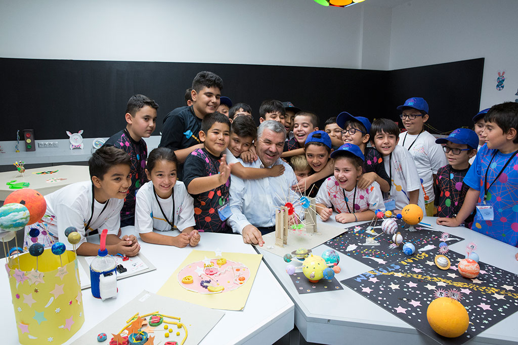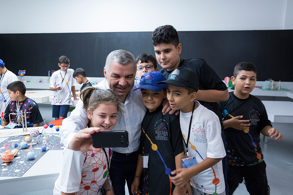 Kayseri Büyükşehir Belediye Başkanı Mustafa Çelik, yatırım ve hizmetler için yoğun mesai harcarken geleceğimiz olan çocuklarımızın daha iyi yetişmelerine de özel önem gösteriyor. Bu anlamda Kayseri Bilim Merkezi’nde yapılan çalışmaları dikkatle takip eden Başkan Çelik, yaz bilim kampındaki çocuklarla bir araya geldi ve verilen eğitimi yerinde gördü. Sık sık sahaya çıkarak yaptığı inceleme gezileri ve şantiye ziyaretleri ile yatırımları yerinde takip eden Büyükşehir Belediye Başkanı Mustafa Çelik, Huzurevi, YADES, KAYMEK Kursları, Spor A.Ş. Kampı, Engelsiz Çocuk Evi, Yaz Spor Okulları, KAYTUR tesisleri, Doğal Ürünler Bahçesi, Kayseri Bilim Merkezi gibi hizmet birimlerini de ziyaret ederek verilen hizmeti yerinde görüyor. İnsana yatırımın önemli unsurları olan bu hizmetlerin kalitesini takip eden ve hizmet alanlarla bir araya gelerek memnuniyetlerini alan Başkan Mustafa Çelik, Kayseri Bilim Merkezi’ndeki yaz bilim kampını da ziyaret etti. Bilime olan ilgiyi artırmak için üçer günlük periyotlar halinde açılan 9-13 yaş grubunun katıldığı 7. Dönem Yaz Bilim Kampı’nı ziyaret eden Başkan Mustafa Çelik, farklı dallarda bilimi yaşayarak öğrenen öğrencilerle bir araya geldi. Yapılan bilimsel çalışmalar ve deneylere öğrencilerle birlikte katılan Başkan Çelik, çocukların bilimi sevmesi için onları teşvik etti ve bilimsel merakın artması için her zaman destek vermeye devam edeceklerini söyledi. Kayseri Bilim Merkezi’nin bu şehirde yaşayan özellikle çocuklar ve gençler için bir şans olduğunu vurgulayan Başkan Çelik, “Çocuklarımız kendilerini geliştirebilmek için uzay teknolojileri, astronomi, temel bilimler konularının tamamında incelemelerde bulunup deneyler yapabiliyorlar. Merkezimiz bilimi teknolojiden pratiğe dönüştürerek geleceğin bilim adamlarının yetiştirilmesine katkıda bulunuyor. Tüm çocuklarımızı ve ailelerini kendilerine sağlanan bu imkandan yararlanmaya davet ediyorum” dedi.
