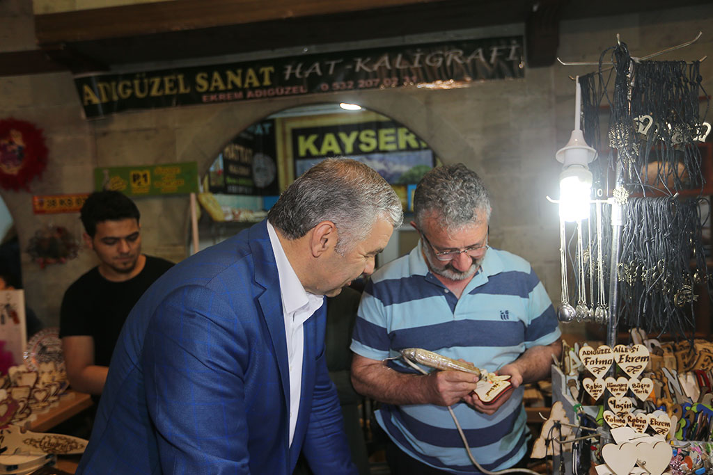 Ramazan Sokağı gezisi sırasında Başkan ve eşinin ziyaretinden büyük memnuniyet duyan esnaflar, Çelik ve eşine ikramlarda bulundular. Büyükşehir Belediye Başkanı Çelik, havya ile ahşap yakma suretiyle güzel yazı yazan sanatçıyı da ziyaret ederek bir süre çalışmasını izledi. İkbal ve Mustafa ismini yazan sanatçı yaptığı eseri Çelik ailesine hediye etti.