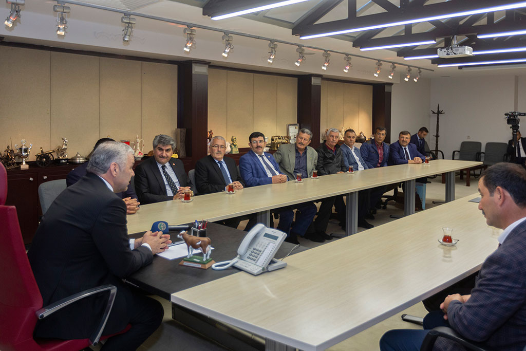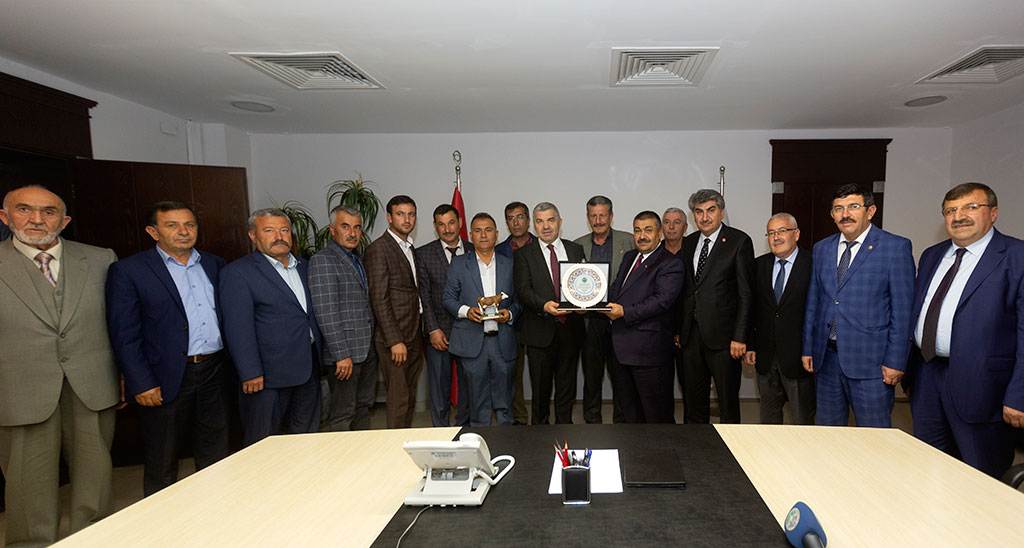 Kayseri’deki ziraat odaları ve hayvancılıkla ilgili birliklerin Başkanları Büyükşehir Belediye Başkanı Mustafa Çelik’in tarım ve hayvancılığı desteklemek için yaptığı çalışmaların devamı için destek ziyaretinde bulundular. Kocasinan Ziraat Odası Başkanı ve Ziraat Odaları İl Koordinasyon Kurulu Başkanı Abdülkadir Güneş ve ziraat odalarının bulunduğu Develi, Sarız, Bünyan, Yahyalı, Akkışla, Yeşilhisar, Felahiye ve Tomarza Ziraat Odalarının Başkanları ile Koyun Keçi Yetiştiricileri Birliği Başkanı Ali Yücel, Damızlık Sığır Yetiştiricileri Birliği Başkanı Günay Çakı, Manda Yetiştiricileri Birliği Başkanı İsmail Ilgın ve Arıcılar Birliği Başkanı İlhan Bozdağ Büyükşehir Belediye Başkanı Mustafa Çelik’i ziyaret etti. Tarım ve hayvancılığın önemli temsilcilerinin yapmış olduğu ziyaret nedeniyle teşekkür eden Başkan Mustafa Çelik, göreve geldiği ilk günden itibaren kırsala verdiği önemi dile getirdi. Kent merkezi ile ilçeler arasındaki gelişmişlik farkını azaltmak ve ilçelerden göçü önlemek için üstün bir gayret gösterdiklerini vurgulayan Başkan Çelik, “Tarım makineleri desteği verdik. Süt soğutma tankları alarak üreticilerimize dağıttık. Arı kovanları dağıtımı yaptık. Şeker Fabrikamız ile yaptığımız protokol sonucu çok büyük bir besi tesisi ve eğitim merkezi yapılmasını sağladık. Bizim derdimiz ilçelerimize omuz vererek ekonomik destek sağlamak. Bugün ilçelerimize gittiğimizde büyük bir muhabbetle karşılanıyor ve dua alıyoruz. Demek ki doğru işler yapıyoruz. İlçelerine bu kadar yatırım yapan bir başka belediye yok. Rabbim hayırlı hizmet verdiği müddetçe hizmet etmeye devam edeceğiz. Kırsal Hizmetler ve Tarımsal Hizmetler olmak üzere kırsala hizmet için iki daire başkanlığı kurduğumuzu da belirtmek isterim. Ayrıca Felahiye Toplu Ahır Projemiz, Beydeğirmeni Besi Bölgesi Projemiz, tüm ilçelere sosyal tesisler, organik tarıma yaptığımız destekler başka hiçbir ilde yok” diye konuştu. “ÇİFTÇİLERİMİZ VE ODALARIMIZ ADINA TEŞEKKÜR EDERİZ” Ziyarette konuşan Kocasinan Ziraat Odası Başkanı ve Ziraat Odaları İl Koordinasyon Kurulu Başkanı Abdülkadir Güneş, Başkan Mustafa Çelik’in göreve geldiği günden bu yana her zaman çiftçilerle beraber olduğunu ifade ederek, “Tarıma Can Suyu Projesi ile 56 tarım makinesini odalarımız aracılığı ile çiftçilerimizin kullanımına sundunuz. Şimdi bu makinelerden herkes faydalanıyor. Sulama projeleri devam ediyor. Biz belediyeyi sadece kaldırım ve asfalt yapar zannederdik; ama öyle değilmiş. Hinterlandın genişlemesi ve ilçelerin Büyükşehir’e bağlanması bizi çok mutlu etti. Çiftçilerimiz ve odalar adına teşekkür ederiz. Size desteğiz ve destek olmaya devam edeceğiz. Biz çalışandan yanayız ve sizden memnunuz. Göreve geldiğinizde insanları doğdukları yerde doyuracağız demiştiniz. Yaptığınız çalışmalar bunun göstergesi oldu. İnşallah bu çalışmalar devam eder. Ankara’da burada yapılan çalışmaları anlattığımızda herkesin ağzı açık kalıyor. Allah yolunuzu açık etsin” ifadelerini kullandı. Yeşilhisar Ziraat Odası Başkanı Metin Altıparmak da ilçelerin ilk kez böyle hizmetler gördüğünü dile getirerek yapılan hizmetler nedeniyle çiftçilerin dua ettiğini söyledi. “SÜT ÜRETİMİNDE ÇIĞIR AÇILDI” Damızlık Sığır Yetiştiricileri Birliği Başkanı Günay Çakı da Başkan Çelik’e verdiği destekler nedeniyle teşekkür ederek, “Süt soğutma tankları projesi ile insan sağlığını tehdit etmeyen süt üretiminde Kayseri’de bir çığır açtınız. Bunun yanında insanların ekonomisini canlandırdınız. Bunların da yanında süt firmalarına çok iyi bir sunum yapmamıza katkı sundunuz. Sürdürülebilir bir hayvancılık adına olması gereken desteği verdiniz. Sayenizde Kayseri’de kaliteli süt üretme imkanı bulduk. Damızlık Sğır Yetiştiricileri Birliği ve süt üreticileri adına teşekkür ediyorum” dedi. Arıcılar Birliği Başkanı İlhan Bozdağ da açıklamasında Büyükşehir Belediyesi’nin 2 bin 220 kovan arıyı üreticilere dağıttığını hatırlatarak, bu kovanları alan arıcıların memnuniyetini dile getirdi. Bozdağ, arıcılığa en büyük katkıyı Başkan Çelik’in sağladığını dile getirerek teşekkür etti. Ziyarette Kocasinan Ziraat Odası Başkanı ve Ziraat Odaları İl Koordinasyon Kurulu Başkanı Abdülkadir Güneş, Büyükşehir Belediye Başkanı Mustafa Çelik’e tarım ve hayvancılığa verdiği destekler nedeniyle çiftçiler adına şükran plaketi takdim etti.