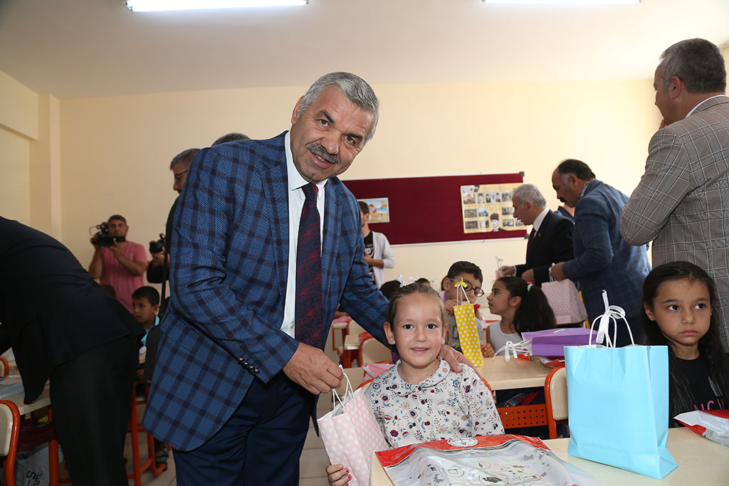 Büyükşehir Belediye Başkanı Mustafa Çelik, yeni eğitim ve öğretim yılının açılışı nedeniyle yaptığı açıklamada ülkemizin geleceği olan çocuklarımız için yapılacak her projeyi destekleyeceklerini belirtti. Başkan Çelik, yeni eğitim ve öğretim yılının tüm öğrencilere ve ülkemize hayırlı uğurlu olması temennisinde bulundu. Büyükşehir Belediye Başkanı Mustafa Çelik, yeni eğitim ve öğretim yılının açılışı dolayısıyla Vali Süleyman Kamçı ile birlikte Türkan Av. Mehmet Altun İlkokulu’nda yapılan törene katıldı. Vali Kamçı ve Başkan Çelik, çocuklarla yakından ilgilendi. Şiirlerin okunduğu, halk oyunları gösterilerinin yapıldığı törende öğrencilere hitap eden Büyükşehir Belediye Başkanı Çelik, tüm öğrencilere yeni eğitim ve öğretim yılının hayırlı uğurlu olması temennisinde bulundu. Uzun sürecek eğitim öğretim yılı ve öğrencilik hayatı ile ilgili tavsiyelerde bulunan Başkan Çelik, “Bu sıralarda alacağınız planlı programlı ders çalışma ve prensipli iş yapma yeteneğiniz ömür boyu sürecektir. Bu yıllarda elde edeceğiniz alışkanlıklar başarılı bir eğitim hayatı sürmenizi sağlayacaktır” dedi. Başkan Çelik, ayrıca öğrencilere bugünden kendileri için bir hedef belirlemelerini tavsiye etti. Tören Vali Süleyman Kamçı’nın ders zilini çalmasıyla sona erdi. Vali Kamçı ve Başkan Çelik, sınıfları gezerek öğrencilerle sohbet ettiler. Ayrıca öğrencilere hediyeler verildi. HAYIRSEVERLERE TEŞEKKÜR Basın mensuplarının soruları üzerine bir açıklama yapan Büyükşehir Belediye Başkanı Çelik, “Baba dostum” olarak tanımladığı Av. Mehmet Altun’un yaptırdığı okulda bir törene katılmaktan duyduğu mutluluğu dile getirdi. Hayırseverlerin eğitime verdikleri desteğin önemine de dikkat çeken Başkan Çelik, bu anlamda Kayseri’nin çok özel bir noktada olduğunu vurguladı. Eğitimle direk ilişkili bir kurum olmamalarına rağmen eğitim ve öğretime destek verdiklerini de dile getiren Başkan Mustafa Çelik, “Öğrencilerimiz için ülkemizin geleceği için çalışıyoruz. Bu çocuklar için yapılacak her projede biz varız” diye konuştu. KENTSEL DÖNÜŞÜM ALANINA MODERN OKUL Büyükşehir Belediye Başkanı Mustafa Çelik, eğitim ve öğretim yılının ilk gününde Sahabiye Kentsel Dönüşüm Projesi kapsamında Hayırsever Mehmet İlgü tarafından yaptırılan okulu da ziyaret etti. İnşaatı süresince yakından ilgilendiği okulu, eğitim ve öğretim yılının ilk gününde de ziyaret eden Başkan Çelik, sınıfları gezdi, öğrencilerle ve velilerle sohbet etti. Başkan Mustafa Çelik, 36 derslikli modern okulun kısa sürede tamamlanarak eğitim öğretim yılına yetiştirildiğini ifade ederek Mehmet İlgü İlkokulu’nda 1300 öğrenci ile ders başı yapıldığını kaydetti.