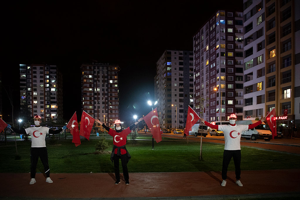 Kayseri Büyükşehir Belediyesi, Türkiye Büyük Millet Meclisi’nin kuruluşunun 100’üncü yılı ve 23 Nisan Ulusal Egemenlik ve Çocuk Bayramı nedeniyle Yenidoğan Mahallesi’nde bir kutlama düzenledi. Kutlamalara Büyükşehir Belediye Başkanı Dr. Memduh Büyükkılıç, Vali Şehmus Günaydın ile birlikte katıldı. Yenidoğan Mahallesi sakinleri etkinliklere ve coşkuya balkon ve pencerelerinden destek verdi. Dünyayı etkisi altına alan koronavirüs, 23 Nisan Ulusal Egemenlik ve Çocuk Bayramı’nın coşkusuna engel olamadı. Kayseri Büyükşehir Belediyesi, sosyal mesafeyi bozmayacak bir etkinlikle ve bu etkinliğe vatandaşların balkon ve pencerelerinden katılımıyla 23 Nisan Ulusal Egemenlik ve Çocuk Bayramı’nı coşkuyla kutladı. Kutlamalar, etkinliğe daha fazla insanın balkonlarından katılabilmesi için fiziki uygunluğu nedeniyle seçilen Yenidoğan Mahallesi’ndeki Ihlamur Parkı’nda yapıldı. Spor A.Ş. tarafından düzenlenen kutlamalar gündüz saatlerinde başladı. Spor A.Ş. eğitmenlerinin gösterilerine özellikle bayramın armağan edildiği çocuklar büyük ilgi gösterdi. Kutlamalara Büyükşehir Belediye Başkanı Dr. Memduh Büyükkılıç da katıldı. Başkan Büyükkılıç, balkon ve pencerelerdeki halkı selamlayarak etkinlik alanına geçti. Bu sırada Büyükşehir Belediyesi bando takımı da marşlar seslendirdi. Bando takımının marşlarına evlerinde büyük bir coşkuyla katılan vatandaşlar, mehter marşlarına da evlerinin ışıklarını söndürüp yakarak ve alkışlarla eşlik etti. Kutlamalara ilerleyen dakikalarda Vali Şehmus Günaydın da katıldı. Vali Günaydın ve Başkan Büyükkılıç, ellerindeki ay yıldızlı bayrağımızı sallayarak coşkuya eşlik etti. GÖRSEL ŞÖLEN Yenidoğan Mahallesi’nde gerçekleştirilen kutlamalarda saatler 21.00’ı gösterdiğinde tüm Türkiye’de olduğu gibi İstiklal Marşı okundu. İstiklal Marşımızın ardından ise muhteşem bir havai fişek gösterisi gerçekleştirildi. “DAHA NİCE 100 YILLARA” Kayseri Büyükşehir Belediye Başkanı Dr. Memduh Büyükkılıç, kısa bir konuşma yaparak 23 Nisan Ulusal Egemenlik ve Çocuk Bayramı’nı kutladı. TBMM’nin 101’inci yılının çok daha büyük coşkuyla kutlanacağını dile getiren Başkan Büyükkılıç, “Cenabı Allah birliğimizi, beraberliğimizi, huzurumuzu, bozmasın. Ay yıldızlı Türk Bayrağımızı, vatanımızı, milletimizi, devletimizi elimizden almasın. 23 Nisan’ı ve içerisine girdiğimiz Mübarek Ramazan ayını tebrik ediyorum. İnanıyoruz ki koronavirüs belasından kurtularak hep beraber iki bayramı birlikte kutlayacağız. Türkiye Büyük Millet Meclisimizin kuruluşunun 100’üncü yılını çok daha büyük coşkuyla kutlayacaktık; ancak böyle bir durum ortaya çıktı. Allah lütfederse 101’inci yılı büyük bir coşkuyla kutlayacağız. Rabbim Cumhuriyetimizi, devletimizi daha nice 100 yıllara ulaştırsın” dedi. Vali Şehmus Günaydın da konuşmasında, 23 Nisan coşkusunu hiçbir şeyin azaltamayacağını ifade ederek, “Koravirüs nedeniyle bir araya gelemediysek de kalplerimiz beraber. Mahallerimizi gezince bu coşkuyu hiçbir şeyin azaltamayacağını gördük” diye konuştu. VATANDAŞLARDAN ALKIŞ VE SLOGAN Vali Şehmus Günaydın ve Başkan Memduh Büyükkılıç, kutlamaların sonunda Ihlamur Parkı’na bakan binaların önünden geçerek balkon ve pencerelerdeki halkı selamladı. Vali Günaydın ve Başkan Büyükkılıç’ı alkışlarla karşılayan vatandaşlar zaman zaman sloganlar da attı.