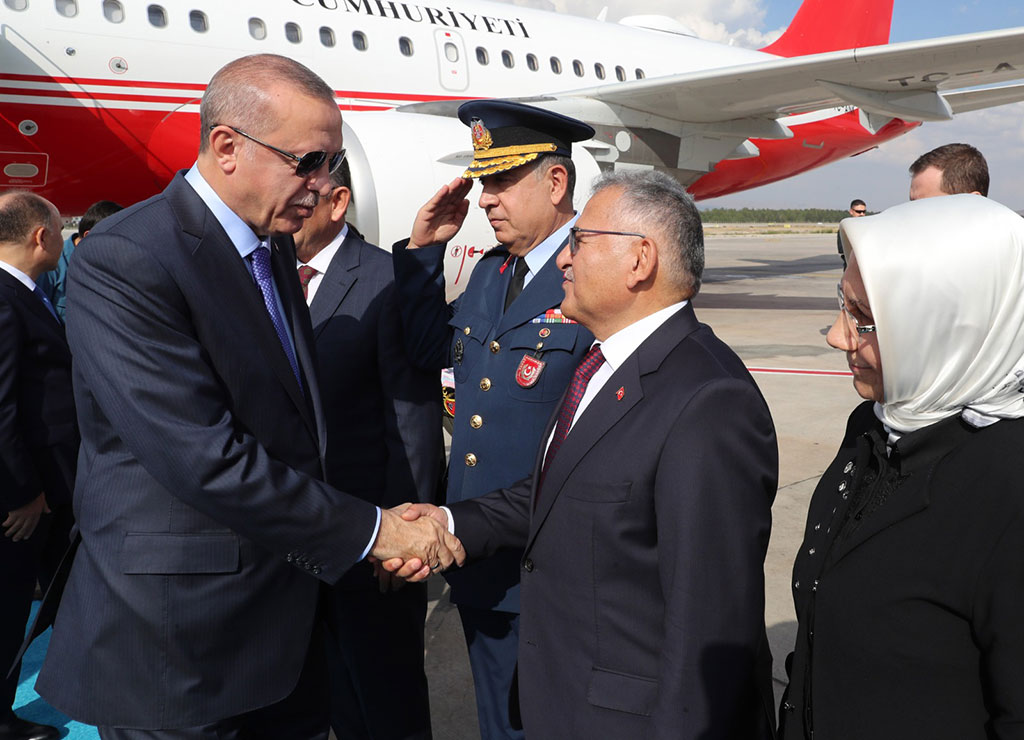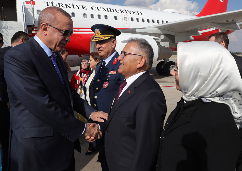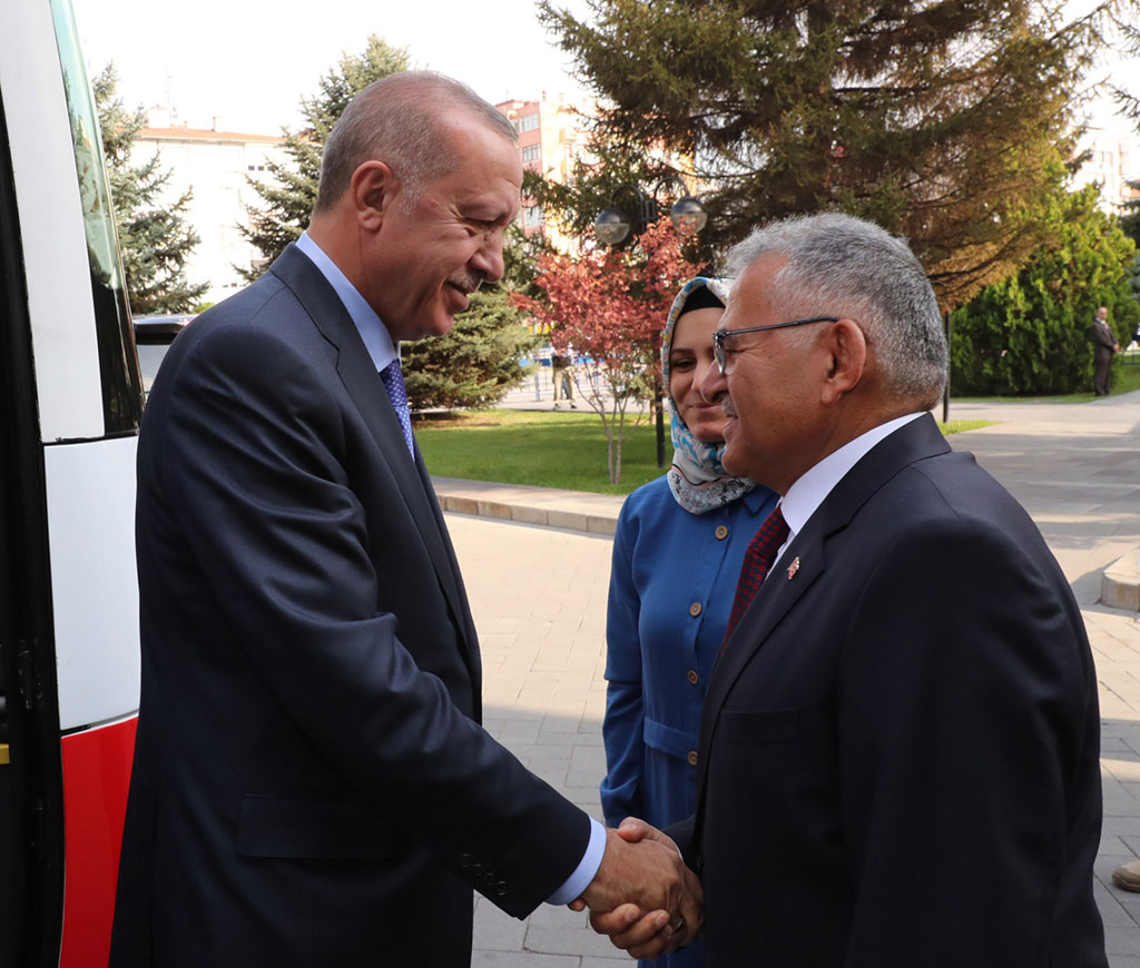 Büyükşehir Belediyesi’nin Kayseri’de yaptığı önemli yatırımlar ve çeşitli kamu kurum ve kuruluşları ile özel sektör tarafından yapımı tamamlanan yatırım ve hizmetlerin toplu açılış törenine katılmak üzere şehrimize gelen Cumhurbaşkanı Recep Tayyip Erdoğan, ilk olarak Büyükşehir Belediyesi'ni ziyaret etti. Cumhurbaşkanı Recep Tayyip Erdoğan’ı Kayseri Erkilet Havalimanı’nda Kayseri Büyükşehir Belediye Başkanı Dr. Memduh Büyükkılıç’ın yanı sıra Vali Şehmus Günaydın, AK Parti Yerel Yönetimlerden Sorumlu Genel Başkan Yardımcısı Mehmet Özhaseki, AK Parti İl Başkanı Şaban Çopuroğlu, milletvekilleri ve şehir protokolü karşıladı. Cumhurbaşkanı Erdoğan, havalimanındaki karşılamanın ardından Kayseri Büyükşehir Belediyesi’ni ziyaret etti. Başkan Büyükkılıç, Genel Sekreter Hüseyin Beyhan ve genel sekreter yardımcıları tarafından karşılanan Cumhurbaşkanı Erdoğan, şeref defterine ziyaret anısına duygu ve düşüncelerini yazdı. Ziyaret sırasında Büyükşehir Belediye Başkanı Memduh Büyükkılıç, Cumhurbaşkanı Recep Tayyip Erdoğan’a Kayseri’de yapılması planlanan çalışmalar hakkında bir sunum gerçekleştirdi.
