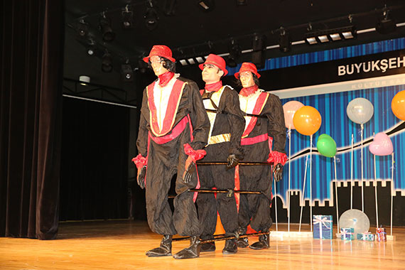 Birbirinden renkli animasyon ışıkları değişik sahne şovları ile başlayan gösteride akordiyon tırtıl adam, komedi kutu şov, kukla şov, dans şov gibi gösteriler yer aldı.