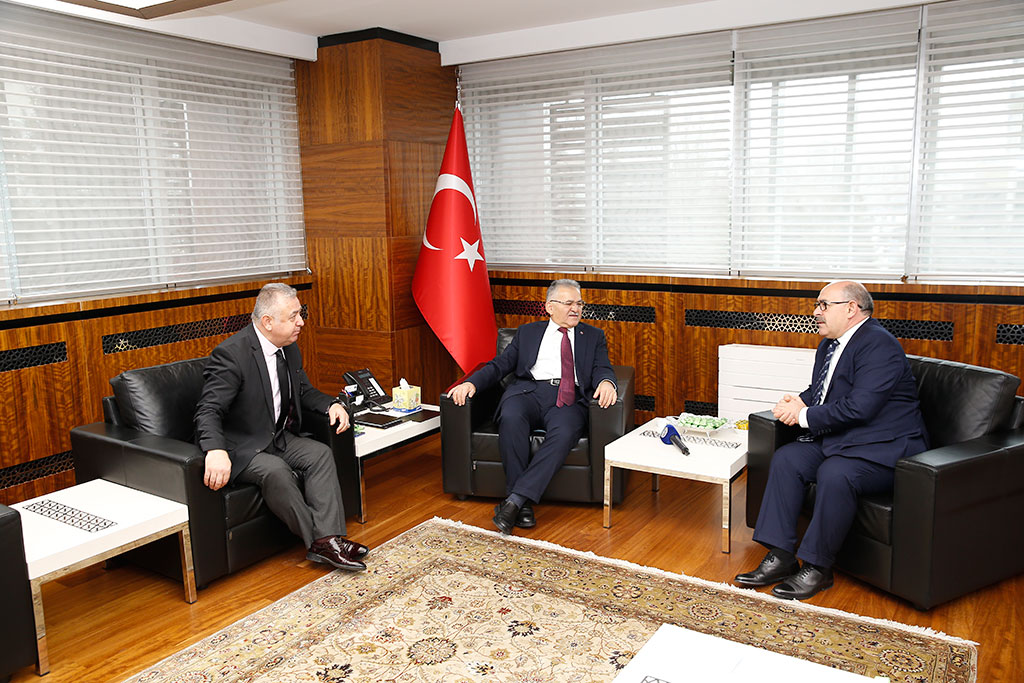 Devlet Tiyatroları Genel Müdür Yardımcısı Turan Erdeğer, Büyükşehir Belediye Başkanı Dr. Memduh Büyükkılıç’ı ziyaret etti. Başkan Dr. Memduh Büyükkılıç, Devlet Tiyatroları’nın Kayseri’ye Kayseri’ye geleceğini belirterek, Kayseri Devlet Tiyatrosu kurulma süreci devam ederken oyunların gelmeye başlamasını istedi. Kayseri Büyükşehir Belediye Başkanı Dr. Memduh Büyükkılıç’ın girişimleriyle Devlet Tiyatroları Genel Müdürlüğü tarafından Kayseri Devlet Tiyatrosu kurulması çalışmalarına başlandı. Bu kapsamda teknik inceleme için Kayseri’ye gelen Devlet Tiyatroları Genel Müdür Yardımcısı Turan Erdeğer ve Sanat Teknik Müdürü Hakan Özdemir Büyükşehir Belediye Başkanı Memduh Büyükkılıç’ı ziyaret etti. Devlet Tiyatroları Genel Müdür Yardımcısı Erdeğer, Kayseri’deki tiyatro salonlarını inceleyeceklerini belirterek, bu salonları devlet tiyatrolarıyla buluşturmak istediklerini söyledi. Büyükşehir Belediye Başkanı Memduh Büyükkılıç da Kayseri Devlet Tiyatrosu’nun açılması için Kültür ve Turizm Bakanı ile yaptığı görüşmelerden bahsetti ve Bakan Mehmet Nuri Ersoy’a sıcak yaklaşımı nedeniyle teşekkür etti. Kayseri Devlet Tiyatrosu’nun kurulması için Şehir Tiyatrosu’nu Kültür ve Turizm İl Müdürlüğü’ne devretme kararı aldıklarını ifade eden Başkan Büyükkılıç, bu salonun yanı sıra Büyükşehir Belediyesi’nin Kadir Has Kültür ve Sanat Merkezi’nin bulunduğunu ve Devlet Tiyatroları’nın Kayseri’ye gelmesi için her türlü desteği verebileceklerini söyledi. Başkan Büyükkılıç, bürokratik süreç devam ederken oyunların bir an önce Kayseri’ye getirilmesini beklediklerini de sözlerine ekledi.