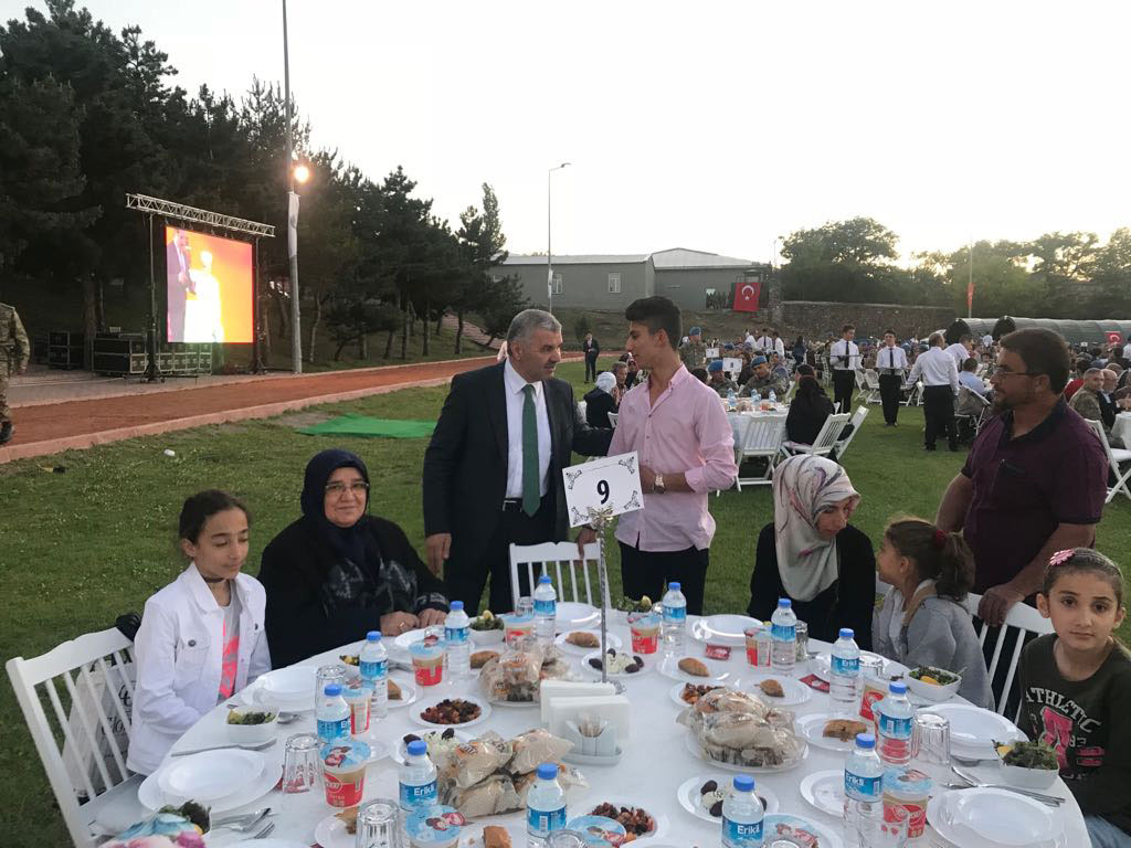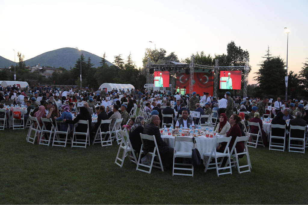 Kayseri Büyükşehir Belediyesi tarafından Zincidere Komando Tugayı'nda düzenlenen iftar, devletin zirvesi ile şehit ailelerini buluşturdu. Geçtiğimiz yıl aynı tarihte düzenlenen iftar yemeği bu yıl da şehit aileleri, gaziler ile yurt içinde ve dışında birçok önemli operasyonu başarıyla tamamlayan ülkemizin ilk komando tugayı olan Zincidere 1. Komando Tugayı’nın kahraman askerleriyle birlikte gerçekleştirildi. Büyükşehir Belediyesi tarafından verilen iftar devletin önemli isimlerini de bir araya getirdi. İftar programına Cumhurbaşkanı Recep Tayyip Erdoğan, Genelkurmay Başkanı Orgeneral Hulusi Akar başta olmak üzere Çevre ve Şehircilik Bakanı Mehmet Özhaseki ve milletvekilleri katıldı. Kayseri Cumhuriyet Meydanı’nda gerçekleştirdiği mitingin ardından iftar programına katılan Cumhurbaşkanı Erdoğan’ı Zincidere Komando Tugayı’nda Büyükşehir Belediye Başkanı Mustafa Çelik ve diğer yetkililer karşıladı. Ardından Cumhurbaşkanı Erdoğan ve Büyükşehir Belediye Başkanı Çelik, iftarın verileceği alana birlikte geldi. Cumhurbaşkanı Recep Tayyip Erdoğan şehit aileleri ve askerlerle birlikte aynı masaya otururken, Genelkurmay Başkanı Orgeneral Hulusi Akar, Çevre ve Şehircilik Bakanı Mehmet Özhaseki, Büyükşehir Belediye Başkanı Mustafa Çelik ve diğer yöneticiler farklı masalarda şehit aileleri, gaziler ve askerlerle birlikte iftar açtılar. Cumhurbaşkanı Recep Tayyip Erdoğan iftar yemeğinin ardından yapılan dua sonrasında şehit yakınları, gaziler ve komandolara hitap etti. Türkiye’nin ilk komando tugayında olmaktan duyduğu memnuniyeti dile getiren ve terörle mücadeleye değinen Cumhurbaşkanı Erdoğan "insanın bir mücadeleye canı pahasına girmesi için önce yüreğinde iman olması lazım. İmanla birlikte cesarete, eğitime, dirayete, disipline ihtiyaç vardır. Hamdolsun bunların hepsi bizim askerimizde var ve ayak bastıkları her yeri titretiyorlar” şeklinde konuştu. Şehit aileleri, gaziler ve askerlerle yapılan iftar yemeğine ev sahipliği yapmaktan duydukları mutluluğu dile getiren Kayseri Büyükşehir Belediye Başkanı Mustafa Çelik yoğun çalışmalarından vakit bulup iftar programına katılan başta Cumhurbaşkanı Recep Tayyip Erdoğan olmak üzere Genelkurmay Başkanı Hulusi Akar’a, Bakan Mehmet Özhaseki’ye, kuvvet komutanları ve milletvekillerine teşekkür etti.