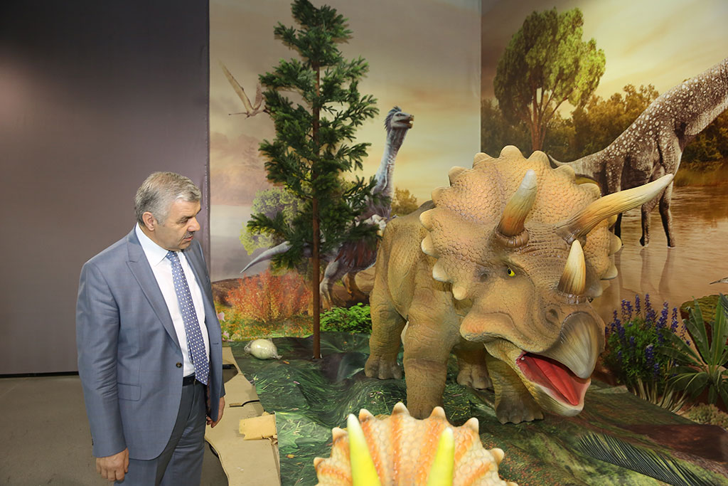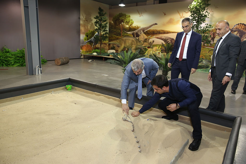 Kayseri Bilim Merkezi, toplumun tüm kesimlerinin merakla takip edebileceği muhteşem bir sergiyi daha Kayseri’ye getiriyor. 13 ayrı dinozorun birebir replikalarının bulunduğu Devr-i Dinozor Sergisi’ni kurulum aşamasında Büyükşehir Belediye Başkanı Mustafa Çelik de gezdi. Başkan Çelik, serginin büyük ilgi göreceğine inancını dile getirdi. Bilimsel bilgiyi geniş toplum kitlelerine aktarmak hedefini ilke edinen ve Anadolu'nun en kapsamlı bilim merkezi olan Kayseri Bilim Merkezi Devr-i Dinozor sergisi ile tarih boyunca en fazla merak edilen canlılardan olan dinozorları Kayserililerin ayağına getiriyor. Bilimi genç kuşaklara sevdirmek ve analitik düşünce yapısına sahip geleceğin bilim insanlarının yetişmesine katkı sağlamak amacıyla bilimin uygulamalı ve eğlenceli yönünü vatandaşlarla buluşturan Kayseri Bilim Merkezi 750 metrekarelik alanda 150 milyon yıl önce dünyada egemen olan dinozorların replikalarını sergileyecek. “Devr-i Dinozor” sergisinde 3 farklı çağda yaşamış, 13 ayrı dinozorun birebir replikaları özel efektler ve bitki örtüsünü içeren dekorlarla birlikte ziyaretçilere sunulacak. Büyükşehir Belediye Başkanı Mustafa Çelik, Bilim Merkezi’nde kurulmakta olan sergiyi gezerek bilgi aldı. Devr-i Dinozor sergisinin 6 ay boyunca Kayseri Bilim Merkezi’nde sergileneceğini ifade eden Başkan Mustafa Çelik, “Bilim Merkezi’nde kalıcı sergi salonlarımız ve 6 aylık dönemler halinde değişen geçici sergi salonumuz var. Bu salonumuzda “Mars ile Yüz Yüze” adlı sergimiz vardı. O sergiyi şimdi Türkiye’de başka bir bilim merkezine gönderdik. Bu salonumuzda 6 ay boyunca Dinozorlar Sergisi yer alacak. Hazırlıklarımız hızla devam ediyor. 150 milyon yıl önce dünyaya hakim olmuş dinozorların geçmişten günümüze hayat hikayelerinin anlatıldığı panolar, o döneme ait imitasyon iskelet örnekleri ve o dönemde yaşayan dinozorları ziyaretçiler takip edebilecekler. Nisan ayı başında açmayı planladığımız bu sergiye tüm hemşehrilerimi davet ediyorum” dedi. BAŞKAN ÇELİK ÖĞRENCİLERLE PLANETARYUMDA Büyükşehir Belediye Başkanı Mustafa Çelik, Kayseri Bilim Merkezi’nde ayrıca Türkiye’nin en büyük planetaryumu olan gök evinde öğrencilerle bir araya geldi. Şükrü Malaz İlkokulu ve Hacılar İstiklal İlkokulu’ndan gelen 110 kişilik öğrenci grubuyla birlikte bir süre planetaryumda bilimsel film izleyen Başkan Çelik, daha sonra öğrenciler ve öğretmenlerle görüşerek Bilim Merkezi ile ilgili fikirlerini aldı. Öğretmenler çocuklar için çok yararlı olan böylesine bir tesisin Kayseri’ye kazandırılmış olmasından büyük mutluluk duyduklarını belirttiler.