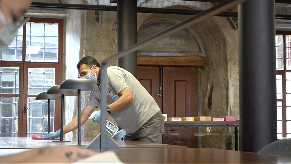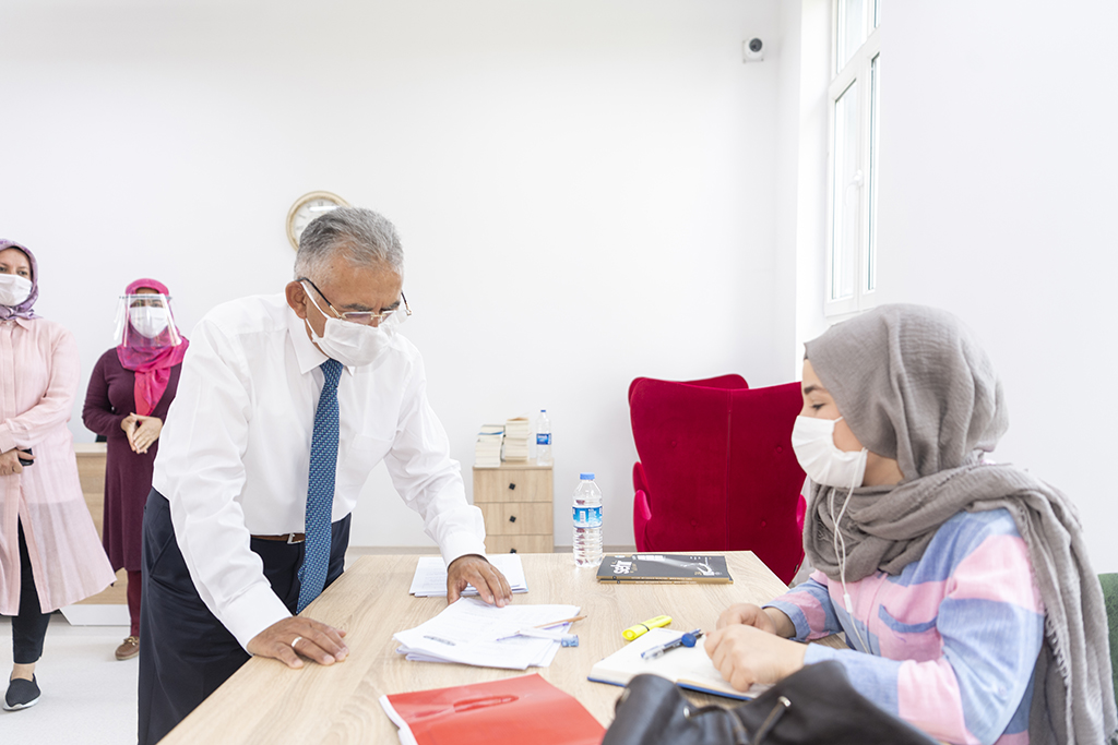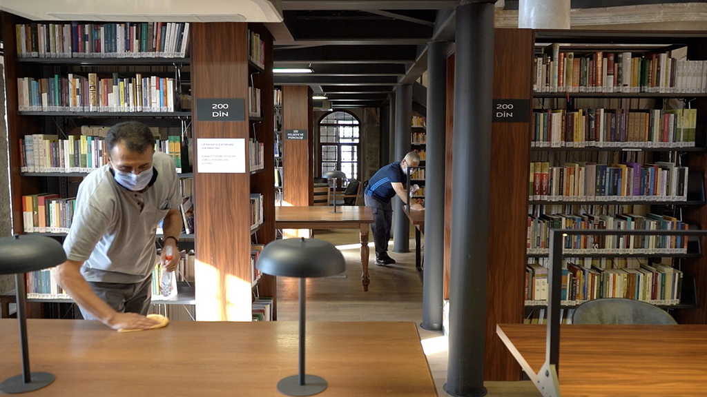 Kayseri Büyükşehir Belediye Başkanı Dr. Memduh Büyükkılıç, doktor olmasının getirdiği hassasiyeti Büyükşehir belediyesi bünyesindeki kütüphanelerdeki uygulamalara da yansıtarak, hizmet almaya gelen öğrenci ve vatandaşlara “Tam Hijyen” içerisinde hizmet verilmesini sağlıyor. Yaşanan pandemi sürecinde Büyükşehir Belediyesi’ne bağlı tüm tesislerde hijyen kuralları titizlikle uygulanıyor. Özellikle öğrenciler tarafından büyük ilgi gören kütüphanelerde ise Doktor Başkan Memduh Büyükılıç’ın talimatlarıyla kitaplardan masalara kadar her şey düzenli olarak sterilize ediyor. Merkez Halk Kütüphanesi, Gevher Nesibe Halk Kütüphanesi, Sezai Karakoç Kütüphanesi, Şehir Kütüphanesi, Beyazşehir Kütüphanesi, Argıncık Semt Kütüphanesi ve Ziya Gökalp Semt Kütüphanesi olmak üzere Büyükşehir’e bağlı 7 kütüphanede sürekli olarak dezenfeksiyon işlemleri uygulanıyor. Sabah sosyal mesafe kurallarına uyularak teker teker içeriye alınan ziyaretçiler, ateşleri ölçülerek ve el dezenfektanı kullanılarak steril bir şekilde içeriye alınıyor. İçeride 4 metrekareye 1 kişi düşecek şekilde hazırlanan masalarda çalışmalarını yürüten ziyaretçilerin kullandığı kitaplar, raflardaki yerini almadan önce sterilizasyon makinesinde temizleniyor. İçerdeki çalışmasını sonlandıran kişinin masa ve sandalyeleri temizlik görevlileri tarafından dezenfekte edilerek sonrasında gelen kullanıcı için hazır hale getiriliyor. Kayseri’yi bir kütüphaneler şehri yapmak ve gençlerin bu kütüphanelerden faydalanmasını sağlamak için projeler üreten Büyükşehir Belediye Başkanı Memduh Büyükkılıç, kütüphanelerdeki temizlik kurallarının titizlikle uygulandığını belirterek, “Gençlerimiz bizim için önemli. Onların daha nezih ve çağın gerekliliklerine uygun şartlarda kendilerini eğitmeleri ve geliştirmeleri için şehrimize çok modern kütüphaneler kazandırdık. Ama yaşanan bu pandemi sürecinde de gördük ki insan sağlığı her şeyin üzerinde. Dolayısıyla “Önce tedbir” diyerek kütüphanelerimizi sürekli dezenfekte ediyor ve buraları kullanan gençlerimizin sağlığını önemsiyoruz” şeklinde konuştu. Ayrıca kütüphaneleri kullanacak olan gençlerin ailelerine de seslenen Başkan Büyükkılıç, “Gençlerimizi bir aile özeni ve titizliği ile kütüphanelerimizde misafir ediyoruz. Bu sebepten ötürü ailelerimiz gönül rahatlığı ile gençlerimizin kütüphanelerimize gönderebilir” dedi.