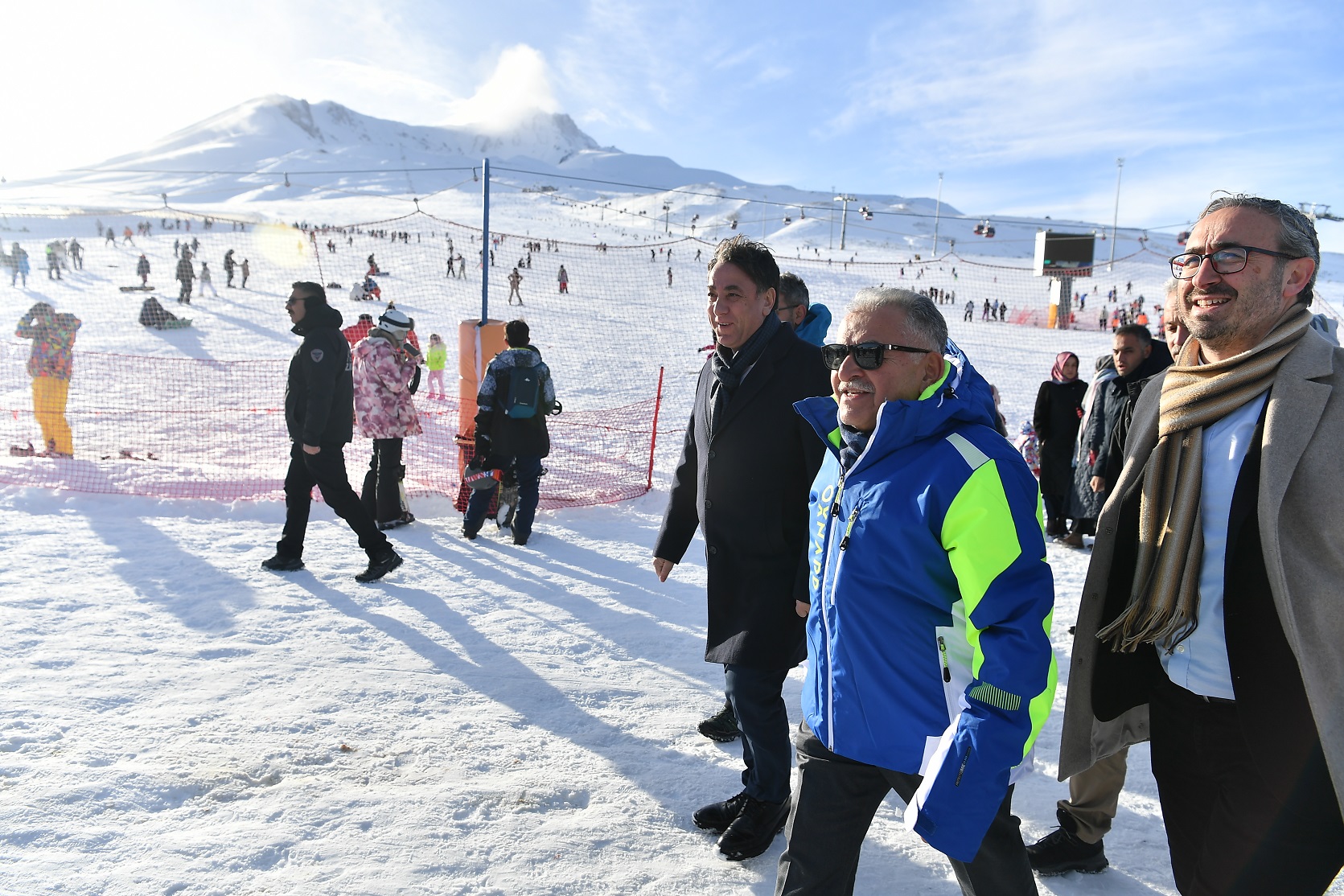 Büyükşehir Belediye Başkanı Dr. Memduh Büyükkılıç, dünyanın sayılı kayak merkezleri arasında yer alan Erciyes Kayak Merkezi’nde incelemelerde bulunarak, yurt içi ve yurt dışından gelen kayakseverlerle bir araya geldi. Sıcak ve samimi bir atmosferde gerçekleşen buluşmada Başkan Büyükkılıç, misafirlerin talep ve önerilerini dinledi.