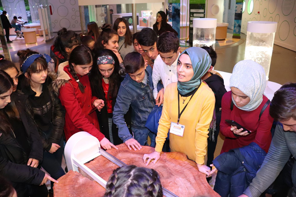 Kayseri Bilim Merkezi, eğitimin her kademesinde bilimsel destek vermeye ve bilimin eğitimin bir parçası haline gelmesine katkı sunmaya devam ediyor. Kayseri Bilim Merkezi mevcut donanımı, bilimsel ve teknolojik altyapı imkanları ile 7’den 70’e tüm kesimlerin bilimsel süreçler hakkında bilgi edinmelerini, yetkinlik kazanmalarını, akademik başarılarının yanı sıra bilime olan ilgilerinin artırılmasını sağlamaya devam ediyor. Bu kapsamda geleceğin öğretmen adayları olan Erciyes Üniversitesi Eğitim Fakültesi öğrencileri Topluma Hizmet Uygulamaları dersi kapsamında Bilim Merkezi’nde gerçekleştirilen etkinliklere katıldılar. Öğretmen adayları bu sayede okul dışı öğrenme ortamları ve burada gerçekleştirilen etkinliklere aktif katılım sağlayarak mesleki becerilerini geliştirme imkanına sahip oluyorlar. Erciyes Üniversitesi Eğitim Fakültesi ile ortaklaşa gerçekleştirilen uygulamaya 2018 yılında toplam 50 öğretmen adayı katılım sağladı. Uygulamaya katılan Erciyes Üniversitesi Eğitim Fakültesi Sınıf Öğretmenliği öğrencileri, Kayseri Bilim Merkezi’nde katıldıkları etkinliklerin gelecekleri açısından önemli faydalar sağladığını belirttiler.