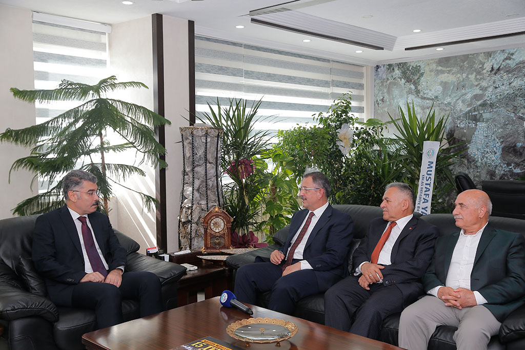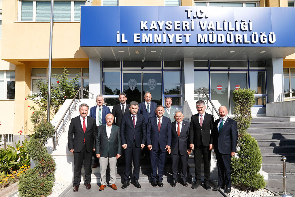 Kayseri Büyükşehir Belediye Başkanı Dr. Memduh Büyükkılıç, Önceki Dönem Çevre ve Şehircilik Bakanı ve AK Parti Genel Başkan Yardımcısı Mehmet Özhaseki ile birlikte Kayseri Emniyet Müdürü Kamil Karabörk’ü ziyaret etti. Özhaseki, ziyarette Kayseri’de herkesin devletinin yanında olduğunu belirtti. Önceki Dönem Çevre ve Şehircilik Bakanı Mehmet Özhaseki, AK Parti Kayseri Milletvekili İsmail Tamer, Büyükşehir Belediye Başkanı Dr. Memduh Büyükkılıç, AK Parti İl Başkanı Şaban Çopuroğlu, Melikgazi Belediye Başkanı Mustafa Palancıoğlu, Kocasinan Belediye Başkanı Ahmet Çolakbayrakdar, Talas Belediye Başkanı Mustafa Yalçın ve Hacılar Belediye Başkanı Bilal Özdoğan, Kayseri Emniyet Müdürlüğü’ne atanan Kamil Karabörk’e hayırlı olsun ziyaretinde bulundular. Kayseri’nin huzuru için her türlü desteği vermeye hazır olduklarını ifade eden AK Parti Genel Başkan Yardımcısı Mehmet Özhaseki, “Kayseri’ye hoş geldiniz. Burada kaldığınız süre içinde inşallah güzel hizmetler yaparsınız ve inşallah Kayseri’deki insanlarımızın duasını alarak da ayrılırsınız. Kayseri; Anadolu’nun tam ortasında, milli ve manevi değerlerine sahip, devletini seven, bayrağına saygı duyan ezanı duyduğu zaman içi ürperen insanların memleketiyiz. Burada hangi partiden olursa olsun herkes devletinin yanında, huzurdan ve asayişten yana. Değerlerimiz konusunda da herkes dikkatli. Tabii ki her toplumda asayişi bozan bir takım unsurlar olur, bunlar da sizin göreviniz. Allah size kolaylık versin. Bu uyum içinde gerek milletvekillerimiz, gerek il teşkilatımız, gerekse belediye başkanlarımız her zaman size yardımcı olacak. Bize de Ankara’da üzerimize ne düşüyorsa yapmaya hazırız. Hepimiz bu şehrin çocuklarıyız. Burada doğduk, büyüdük ve buraya vefa borcumuz var. Bunu da ödemeye çalışıyoruz” dedi.