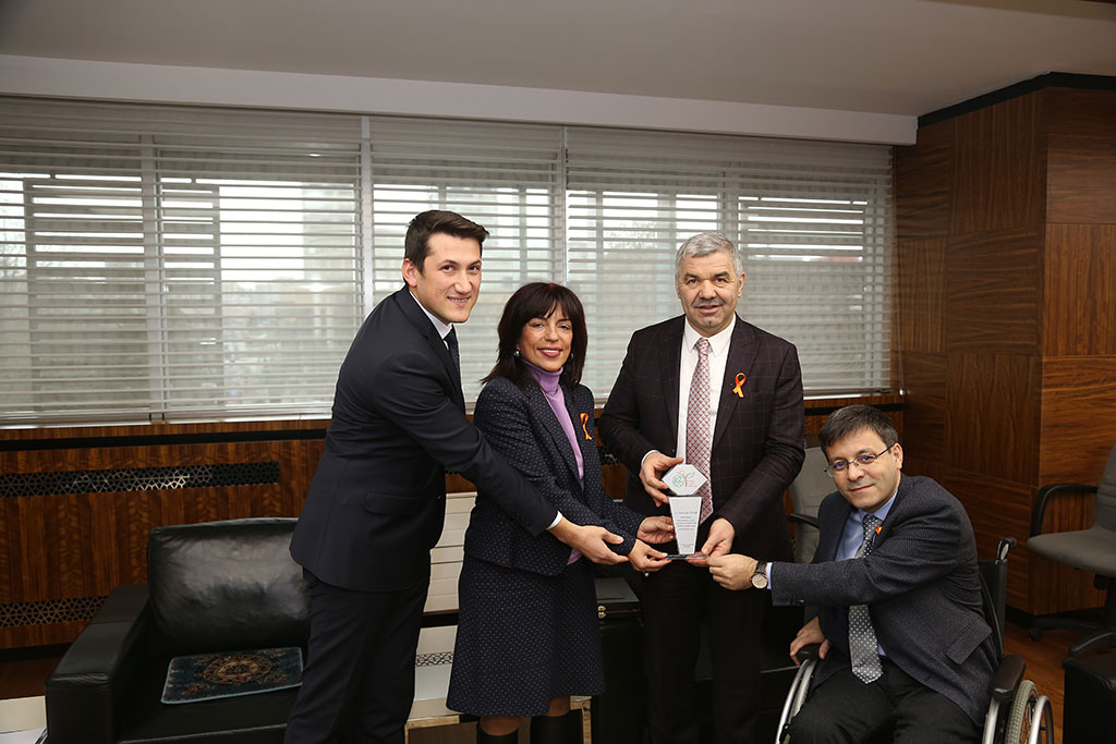 Anadolu Sosyal Sorumluluk Derneği ve Büyükşehir Belediyesi’nin de destek verdiği “Tarım Engel Tanımaz” projesi içerisinde yer alan engelli kadınlar Büyükşehir Belediye Başkanı Mustafa Çelik’i ziyaret etti. Başkan Çelik, engellilerimizle ilgili her talebe olumlu yanıt verdiklerini söyledi. Büyükşehir Belediye Başkanı Mustafa Çelik’i ziyaret eden Anadolu Sosyal Sorumluluk Derneği Genel Başkanı Kadir Can Gökalp, Başkan Çelik’in her zaman engellilerin yanında olduğunu belirtti. Başkan Çelik’in her alanda maddi ve manevi olarak engellileri desteklediğini vurgulayan Gökalp, “Sayın Başkanım, kısa zamanda çok büyük işler yaptınız ve bize her zaman destek oldunuz. Su fiyatlarında engellilere yapılan yüzde 50 indirim, engelsiz çocuk evi ve engelsiz yaşam merkezi ile ilgili protokol için teşekkür ediyoruz. Biz ‘Tarım Engel Tanımaz’ adı altında engelli bayanlarımızı tarıma kazandırmak için Tarım ve Orman İl Müdürlüğü, Kayseri Büyükşehir Belediyesi ve Anadolu Sosyal Sorumluluk Derneği olarak bir proje yaptık. Bunun için bize çok güzel bir yer verdiniz. İnşallah burada engelli bayanlarımız meyveleri kurutarak paketleyip satışını gerçekleştirecekler. Engelli bayanlarımız artık evlerinde oturmayacak, bu proje ile onlara iş kapısı açılmış olacak. Bunların hepsi sizlerin sayesinde oldu. Engellilere bakış açınızı biliyoruz. Birçok yerde engellileri maddi ve manevi olarak kolluyorsunuz. Engellilerin her zaman yanındasınız ve yanında olacağınızı biliyoruz” dedi. Büyükşehir Belediye Başkanı Mustafa Çelik de Kayseri’yi engelsiz kent yapmak ve engellilerin ekonomiye katılımlarını sağlamak için büyük gayret gösterdiklerini belirterek, “Yönettiğimiz coğrafyada yaşayan tüm insanlarımızın derdiyle dertlenmemiz ve onların kaygılarını taşımamız gerekiyor. Biz hep bu vebalin bilincinde olduk. Hepimiz potansiyel engelliyiz. Dolayısıyla bu sıkıntıları çeken herkesin yanında olmalıyız. Şehrimizi engelsiz kent yapma çalışmalarımız devam ediyor. Ulaşım araçlarını engelli vatandaşlarımıza uygun hale getiriyoruz. Engelsiz Çocuk Evi’nin yenilerini yapmak için çalışıyoruz. Engelsiz Yaşam Merkezi için de önümüzdeki günlerde ihaleye çıkıyoruz. Türkiye’nin en modern ve en kapsamlı Engelsiz Yaşam Merkezi’ni yapacağız. Bunların haricinde de gelen her talebe eğilmeye çalışıyoruz. ‘Tarım Engel Tanımaz’ projesinde olmaktan da son derece mutluyuz. Engelli kadınlarımızın ekonomiye katılması için önemli bir proje” diye konuştu. Ziyarette ayrıca Başkan Mustafa Çelik’e engelli kadınların tarıma kazandırılması projesine katkıları nedeniyle teşekkür plaketi takdim edildi.