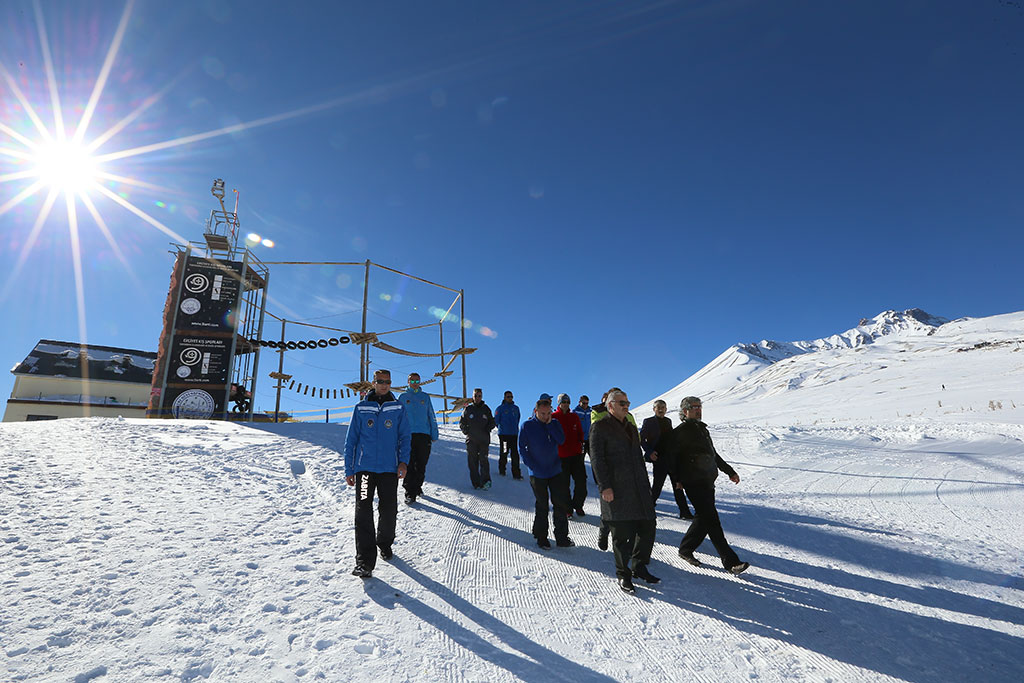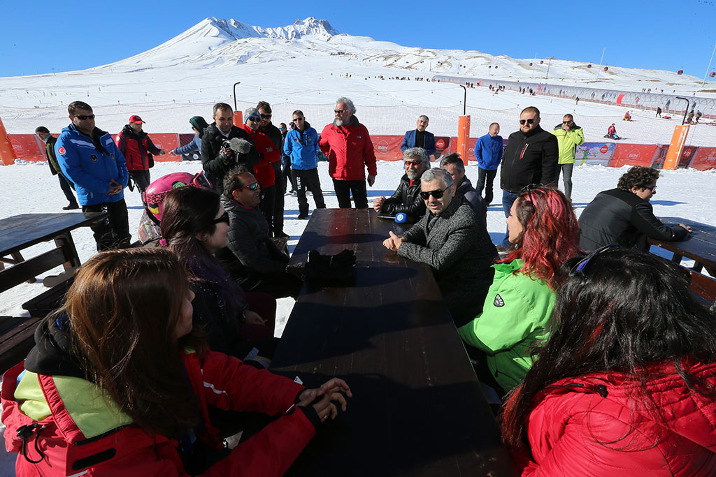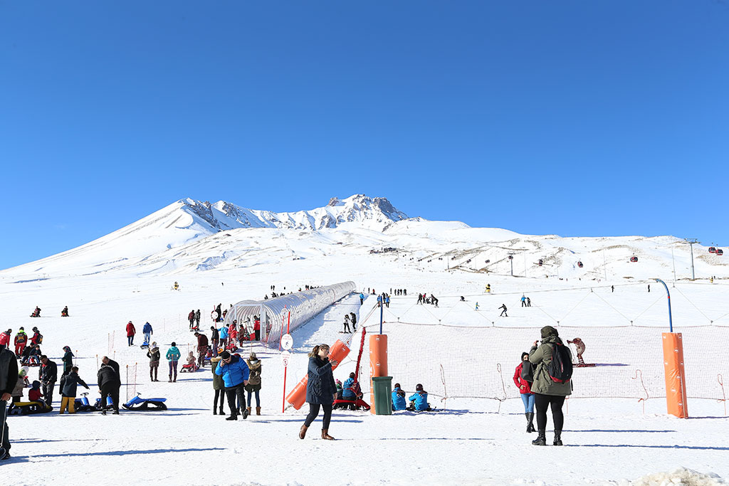 Erciyes, kayak sezonunun açılmasıyla birlikte cıvıl cıvıl görünümüne kavuştu. Bu yıl sezonu erken açan Erciyes, kendi ölçeğindeki kayak merkezleri arasında kayak sezonunun açıldığı tek dağ durumunda. Kayak turizmi henüz hareketlenmemiş olmasına rağmen Erciyes’i hafta sonu 20 bini aşkın kişi ziyaret etti. Kış mevsiminin gelmesiyle birlikte Kayseri’de Erciyes mevsimimiz de başladı. Kayseri ve çevre illerden on binlerce kişinin hafta sonu tercihi Erciyes oldu. Hafta sonu Erciyes’e gelenlerin sayısı 20 bini geçti. Büyükşehir Belediye Başkanı Mustafa Çelik de hafta sonu Erciyes’e çıkarak sezonun ilk misafirleriyle sohbet etti. Bu yıl sezonu erken açan Erciyes, Büyükşehir Belediyesi’nin yatırımlarıyla dünyanın sayılı kayak merkezlerinden biri haline geldi. Erciyes’in yeni sezon için her haliyle hazır olduğunu dile getiren Büyükşehir Belediye Başkanı Mustafa Çelik, “Erciyes Kış Turizm Merkezi sadece şehrimizin değil dünyanın gözde merkezlerinden birisi. 2 bin 88 metre ile 3 bin 400 metre arasında, farklı zorluk derecelerinde 102 kilometre uzunluğunda 34 adet kayak pistimiz var. 18 ayrı telesiyej, telekabin, gondol gibi halk arasında ‘teleferik’ olarak bilinen mekanik tesislerimizin uzunluğu 24 kilometreye ulaştı. Son teknolojiyle donatılmış ve birbiri ile bağlantılı güvenilir mekanik tesislerimizin saatte 26 bin 750 kişi taşıma kapasitesi var. Erciyes’te şu an mükemmel pistlerimiz var; ancak Erciyes’e kar yağmasa da hazırlıklıyız. 154 adet suni kar makinemiz 170 hektar alanda ve mevcut pistlerin %58’lik kısmında kar garantili bir sezon imkanı sunuyor. Bunların yanı sıra 4 adet yürüyen band, çocuk oyun alanları, eğitim alanları, kızak alanları ve kayak dışı eğlence aktivitelerini besleyecek baby lift, snowtubing ve tırmanma duvarları gibi imkanlar da Erciyes’te oluşturuldu. Tüm kayakseverleri böylesine imkanlara sahip olan Erciyes’e bekliyoruz” dedi.