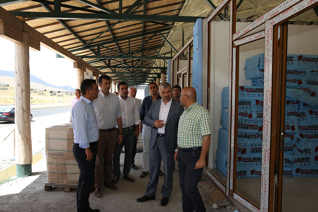 Büyükşehir Belediyesi’nin yatırımlarıyla dünyanın sayılı kış spor merkezlerinden birisi haline gelen ve yaz mevsiminde de büyük ilgi gören Erciyes’te ziyaretçi sayısı her geçen yıl artıyor. Yerli ve yabancı turistlerde yaşanan artış nedeniyle Büyükşehir Belediyesi, ihtiyacı karşılamak için yeni iş yerleri yapıyor. Başkan Çelik, Erciyes’te yapımı devam eden iş yerlerinde incelemelerde bulundu. Büyükşehir Belediye Başkanı Mustafa Çelik, Erciyes’te yapımı devam işyerlerinin son durumunu yerinde gördü. Çalışmalarla ilgili bilgi alan Başkan Çelik, “Son yıllarda yaptığımız tanıtım faaliyetleriyle birlikte ziyaretçi sayısı katlanarak artıyor. Özellikle il dışından gelen misafirlerimiz Kayseri’nin yöresel ürünlerini alabilecekleri ve tadabilecekleri mekan istiyorlar. Erciyes’e çıkışta sağda iş yerlerimiz var. Şimdi dönüş istikametinde de yine ahşap kullanarak dükkanlar yapıyoruz. Kısa süre içinde tamamlayarak kiraya vereceğiz. Bu işyerlerinin bulunduğu alanda tüm ihtiyaçları düşünerek gerekli mekanları yaptık” diye konuştu. Büyükşehir Belediyesi, Erciyes’te 6 adet 48 metrekarelik, 2 adet de 250 metrekarelik olmak üzere toplam 8 iş yeri yapıyor.