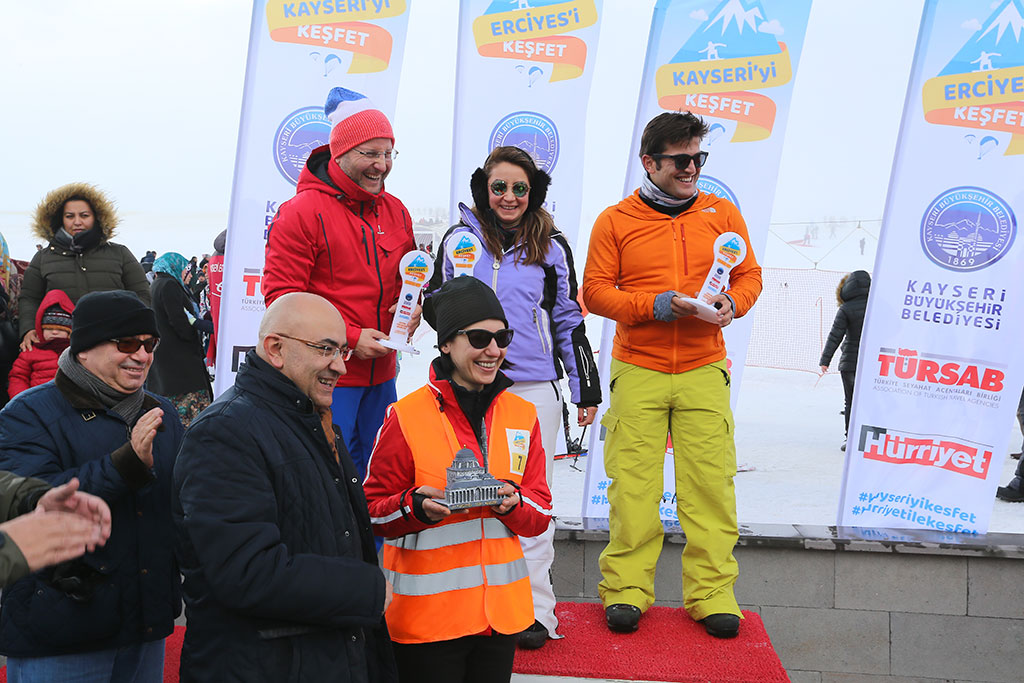 Büyükşehir Belediyesi, Türkiye Seyahat Acenteleri Birliği (TÜRSAB) ve Hürriyet Gazetesi tarafından düzenlenen dört günlük “Kayseri’yi Keşfet” programının ikinci gününde Erciyes’in eşsiz güzelliği keşfedildi. Turizmciler ve gazeteciler gün boyu Erciyes’i tanıma ve tadını çıkarma imkanı buldular. Kayseri’yi Keşfet programı kapsamında ilimize gelen turizmciler ve gazeteciler gezi programlarının ikinci gününde Erciyes’e çıktılar. Kayseri’nin tanıtımı için şehrimize gelen misafirlerin Erciyes gezisine Büyükşehir Belediye Başkanı Mustafa Çelik de katıldı. Başkan Mustafa Çelik, konuklarıyla yakından ilgilendi ve Erciyes Kış Turizm Merkezi ile ilgili bilgiler verdi. Başkan Çelik ile birlikte gondollarla üst istasyonlara çıkan misafirler Erciyes’in eşsiz güzelliğini görme şansı buldular. Büyükşehir Belediye Başkanı Mustafa Çelik, Erciyes’i Keşfetme şansı bulan turizmciler ve gazetecilere Kardanadam Tesisleri’nde yemek verdi. Yemeğe Vali Süleyman Kamçı da katılarak misafirlerle bir araya geldi. Yemeğin ardından katılımcılara Erciyes’teki dev maketin önünde Erciyes A.Ş. Genel Müdür Yardımcısı Yücel İkiler tarafından Master Plan ile ilgili bilgi verildi. Katılımcılar daha sonra kayak ve kızaklarla kayarak Erciyes’in tadını çıkardılar. Kızak yarışları büyük heyecana sahne oldu. Dereceye girenlere Erciyes A.Ş. Yönetim Kurulu Başkanı Murat Cahid Cıngı tarafından ödülleri verildi.