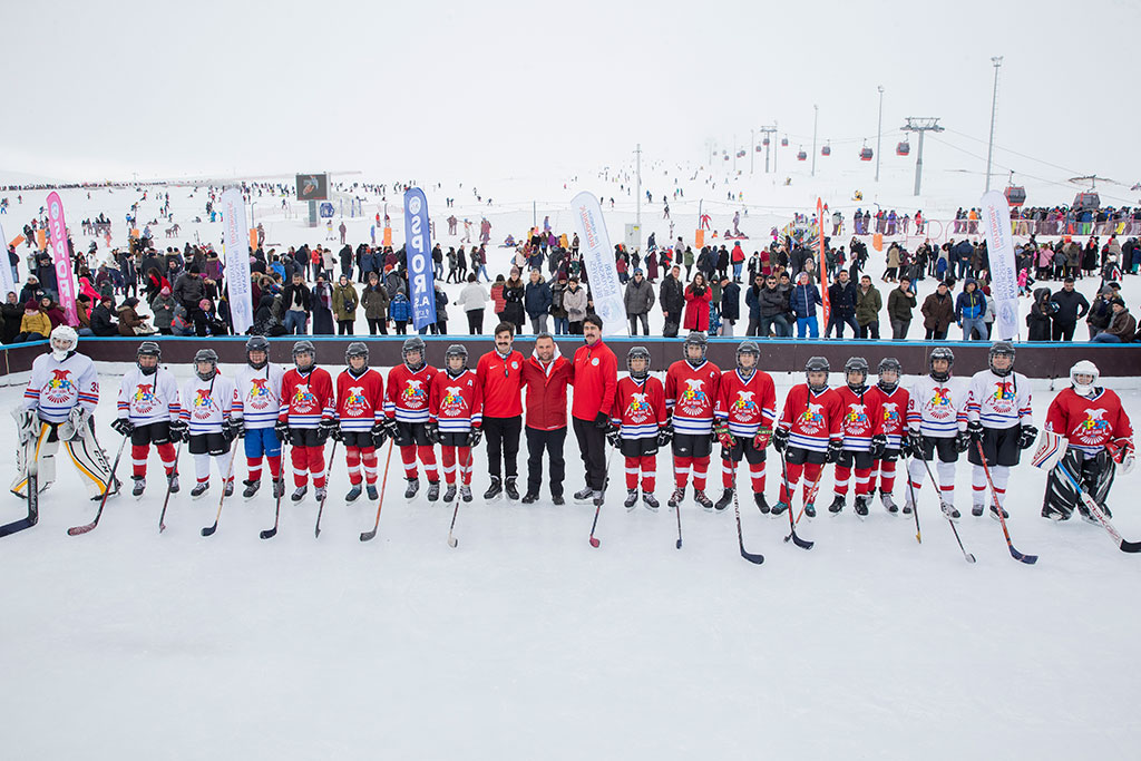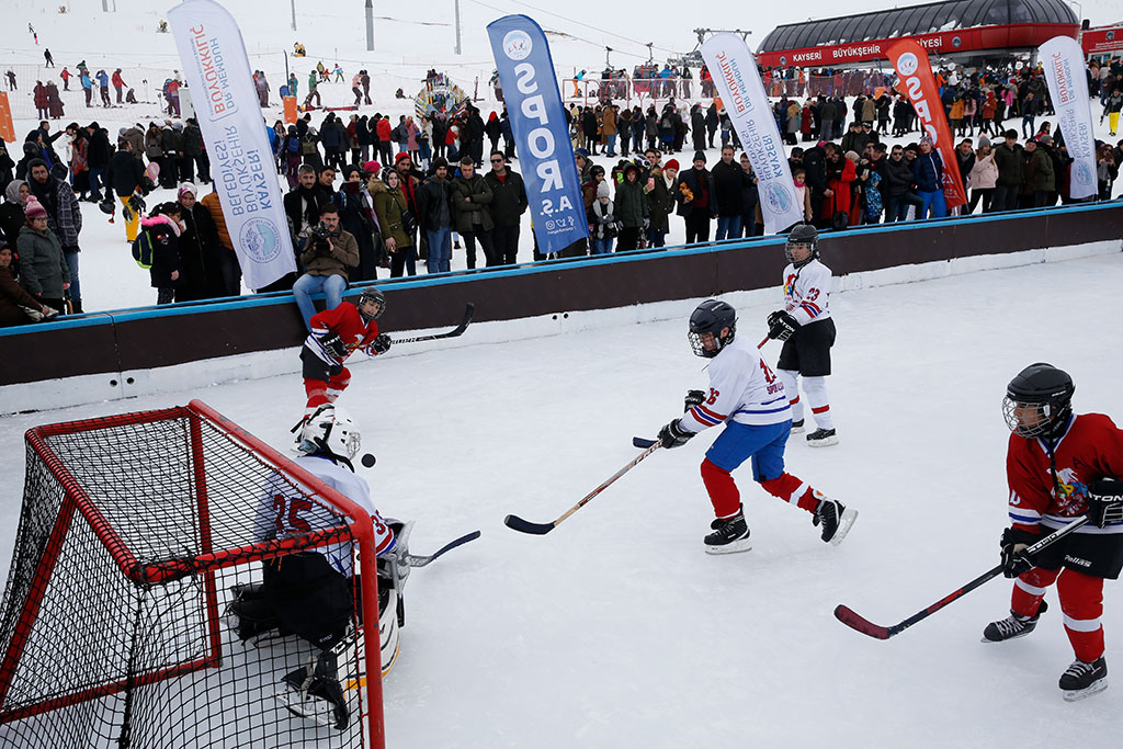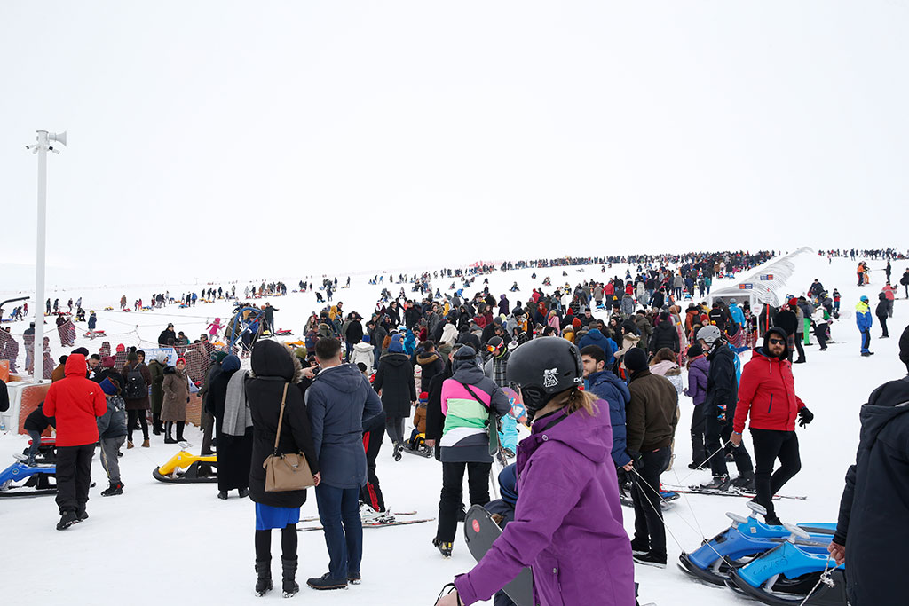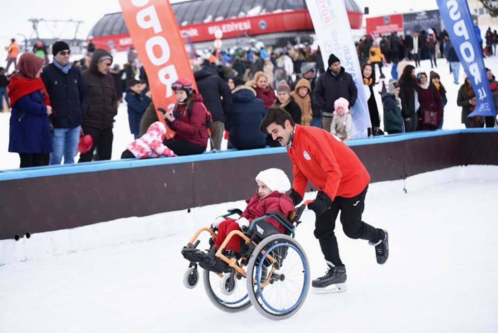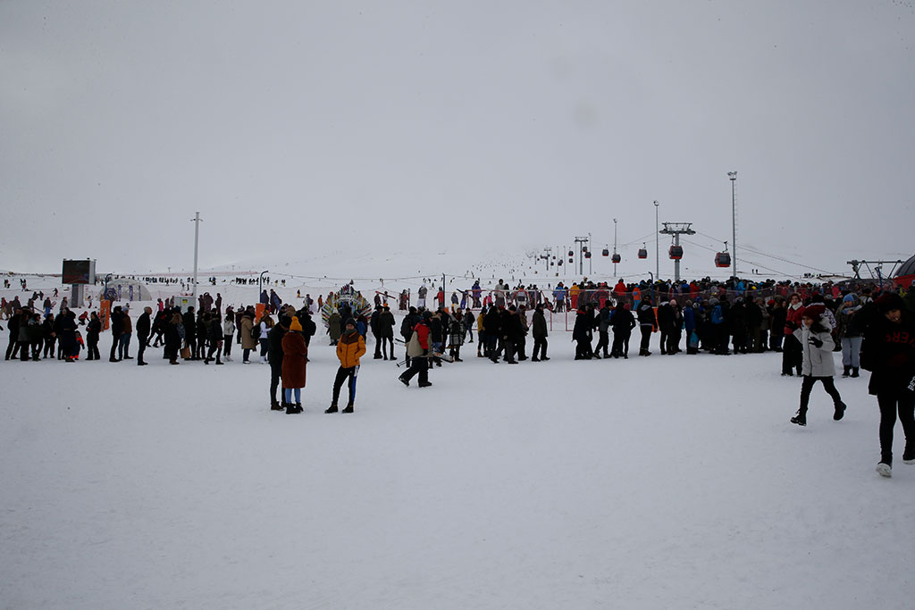 Dünya’nın en önemli kayak merkezlerinden olan Erciyes Kayak Merkezi sömestr tatilinin son gününde de Türkiye’nin ve dünyanın dört bir yanından gelen turistlerle doldu taştı. Yaptığı birçok hizmet ile Türkiye’de öncü olmayı başaran Kayseri Büyükşehir Belediyesi yine bir ilki gerçekleştirdi. Kayseri Büyükşehir Belediyesi bünyesinde faaliyet gösteren Spor A. Ş. kızak ve kayak sporuna alternatif olarak yapılabilecek spor branşları arasına buz patenini de ekledi. Erciyes Tekir Kapı’da 350 metrekare alanda yapılan buz pisti Türkiye’deki kayak merkezleri arasında da ilk oldu. Kış boyunca Erciyes’i ziyarete edecek olan turistlere hizmet verecek olan buz pisti Spor A. Ş. öğrencilerinin buz hokeyi müsabakası ile açılışını gerçekleştirdi. Artistik buz pateni gösterileri ile devam eden program sonrasında ilk gün olması sebebi ile vatandaşlar buz pistini ücretsiz olarak kullanabildi. MİNİK AYŞEGÜL’ÜN HAYALİ GERÇEK OLDU Erciyes Kayak Merkezi’nde kurulan buz pistinde yürüme engeli bulunan Ayşegül, Spor A. Ş. eğitmenleri eşliğinde kaydırıldı. En büyük hayallerinden biri gerçekleştirilen Ayşegül’ün mutluluğu görülmeye değerdi. ERCİYES’TE SÖMESTR ÇOK YOĞUN GEÇTİ Yılın en yoğun dönemlerini yaşayan Erciyes Kayak Merkezi yoğun bir sömestr dönemini geride bıraktı. Biten sömestr dönemini değerlendiren Erciyes A. Ş. Yönetim Kurulu Başkanı Murat Cahit Cıngı, “Sömestrın son gününde Erciyes, bütün dağlar açısından da kış turizmi içerisindeki en yoğun iki haftalık dönemi geride bıraktı. Son gün hasebiyle yoğunluk halen devam etme. Fakat son gün olması sebebiyle bugün itibariyle klasik pazar günü yoğunluğuna ulaşmış olduk. Pistlerimiz dolu. Günü birlik ziyaret için gelen misafirlerimiz burada sucuk ekmek yiyor, kızak yapıyor ve ailesiyle kar topu oynuyor. Erciyes’te güzel bir ortam var” dedi. 350 metrekarelik alana kurularak Türkiye’de ilk olma özelliğini taşıyan buz pisti için de konuşan Cıngı, “Spor A. Ş. tarafından buz pisti de açıldı. Açık havada hizmet veriyor. O da çok güzel bir faaliyet olarak Erciyes’te yapılabilecekler listesine girecek güzel bir sportif faaliyet olacak. Dolayısıyla Erciyes, her zaman olduğu gibi dolu dolu, canlı, rengarenk, birçok şehirden ve ülkeden misafirlerimizin bir arada bulunduğu bir platform haline geldi. Bundan sonra da bu çeşitliliği arttırmaya devam edeceğiz” şeklinde konuştu. Erciyes A.Ş. Yönetim Kurulu Başkanı Murat Cahit Cıngı Türkiye’deki Nijerli Öğrenciler Birliği olarak Erciyes’e gelen misafirlerle keyifli bir sohbet gerçekleştirdi. Türkiye’nin birçok ilinde eğitim gören Nijerli öğrenciler her yıl geleneksel olarak ülkemizin bir şehrinde bir araya geliyor. Bu yıl da 3 gün boyunca süren etkinliklerini Kayseri’de düzenleyen Türkiye’deki Nijerli Öğrenciler Birliği öğrencileri Kayseri’yi ve Erciyes’i çok beğendiklerini dile getirerek, Erciyes’te çok keyifli vakit geçirdiklerini belirttiler.