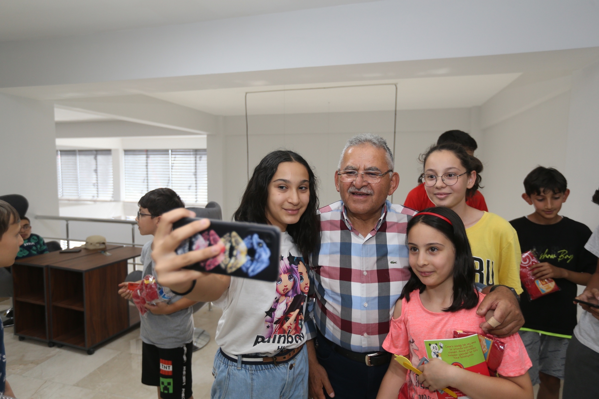 Öğrencilerle sohbet ederek fotoğraf çektiren Büyükkılıç,