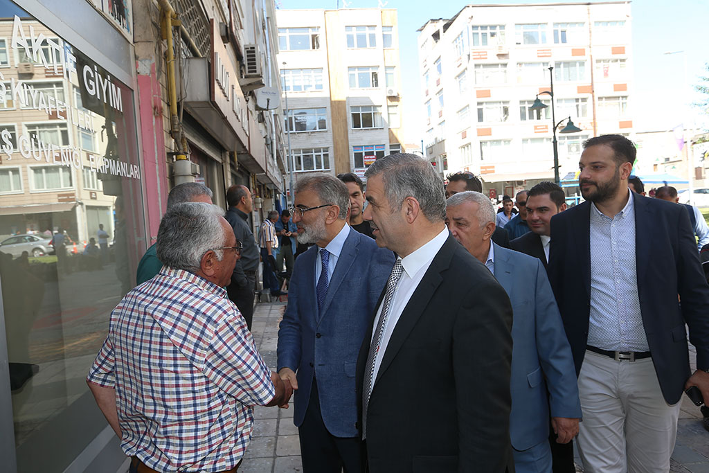 Büyükşehir Belediye Başkanı Mustafa Çelik, Enerji ve Tabi Kaynaklar Eski Bakanı ve AK Parti Kayseri Milletvekili Taner Yıldız ile esnaf ziyaretlerinde bulundu. Yıldız ve Çelik’e esnaf ve vatandaşlar büyük ilgi gösterdi. Büyükşehir Belediye Başkanı Mustafa Çelik ile AK Parti Kayseri Milletvekili Taner Yıldız, çarşı içi olarak da ifade edilen Cumhuriyet Mahallesi’nde esnafları gezdiler. Esnaflara “hayırlı işler” temennisinde bulunan ve alışveriş yapan vatandaşlarla sohbet eden Yıldız ve Çelik, çok sıcak ve samimi diyaloglar kurdular, Cumhuriyet Mahallesi’nin hemen her sokağını gezen Kayseri Milletvekili Yıldız ve Başkan Çelik, banklarda oturan vatandaşlarla da görüştüler.