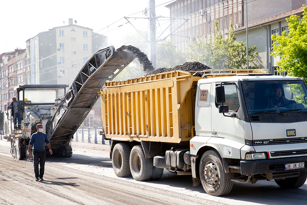 Kayseri Büyükşehir Belediyesi, sokağa çıkma kısıtlaması nedeniyle boşalan caddelerde yenileme çalışmalarını sürdürüyor. Şehir merkezindeki bazı caddelerde KASKİ alt yapı çalışmaları yaparken, Fen İşleri ekipleri de asfaltlama çalışmaları gerçekleştiriyor. Büyükşehir Belediyesi ekipleri, geçen haftalarda olduğu gibi sokağa çıkma kısıtlamasından yararlanarak kent merkezindeki bazı caddelerde yenileme çalışmaları yapıyor. Büyükşehir Belediyesi ekipleri, normal günlerde trafik yoğunluğunun bulunduğu caddelerde yaptığı çalışmalara Düvenönü-Eski Sanayi istikametinde devam etti. Osman Kavuncu Bulvarı üzerinde yapılan çalışmalarda öncelikle KASKİ Genel Müdürlüğü’ne bağlı ekipler altyapı çalışmalarına girerek, bölgedeki eskiyen içme suyu borularını sağlıklı ductil borularla değiştirdi. Altyapı çalışmalarının ardından Fen İşleri ekipleri önce eskiyen ve yıpranan asfaltı söktü, ardından da caddenin asfaltını yenileme çalışmalarına başladı. Büyükşehir Belediyesi ekipleri, alt yapı ve yol yenileme çalışmalarına farklı caddelerde de devam edecek.