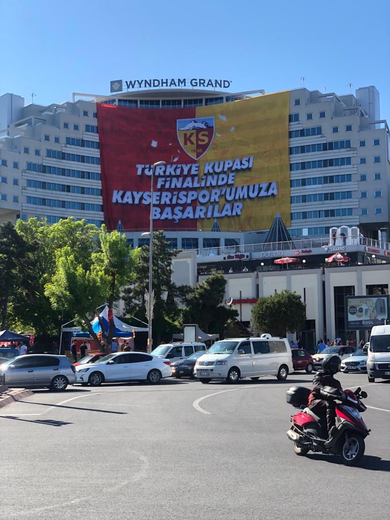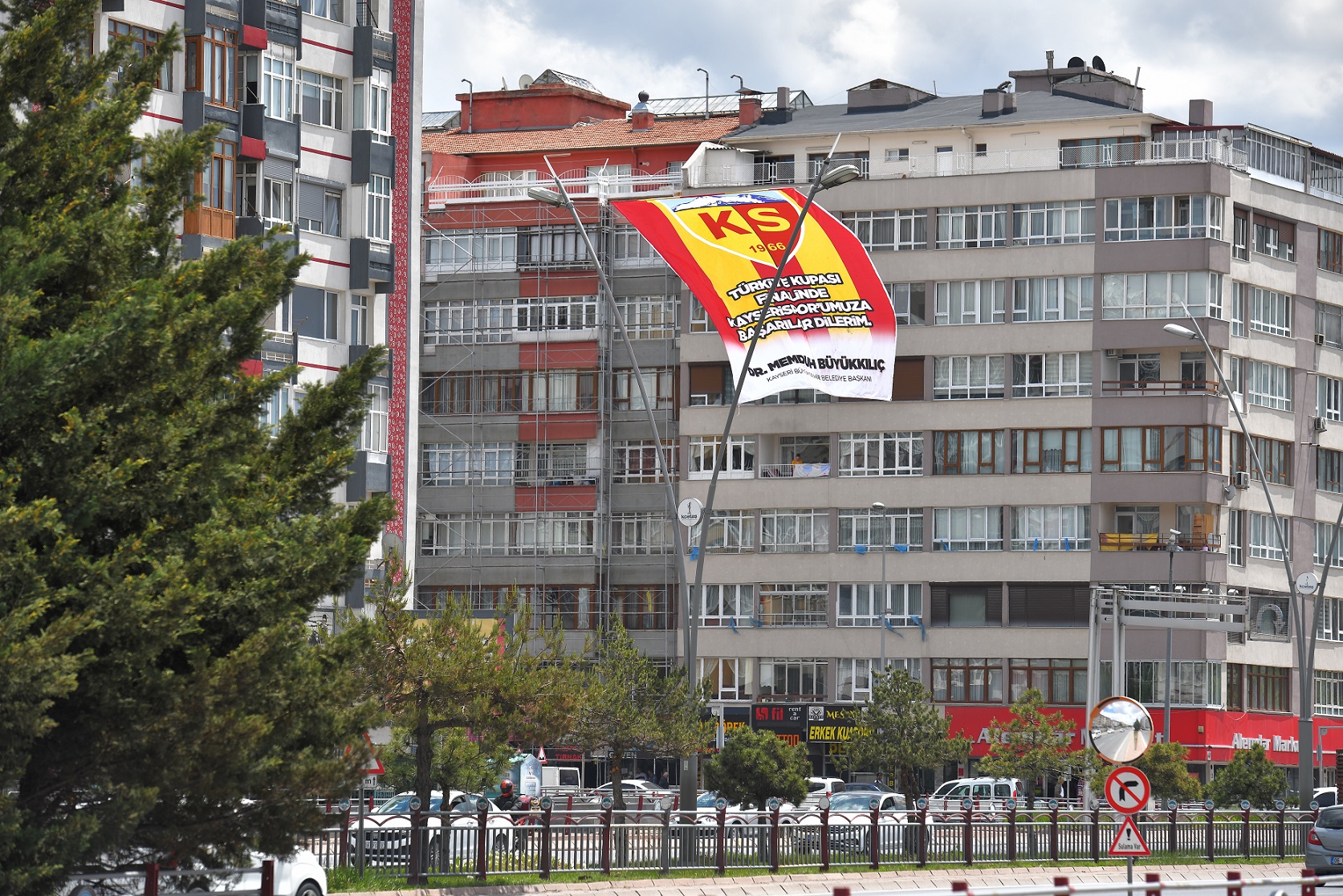 Finalinde Kayserispor’umuza Başarılar’ yazılı 116 pankart ve yayınlanan