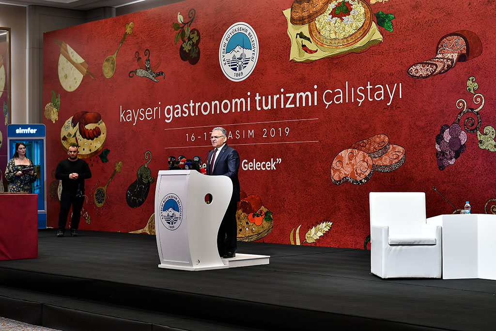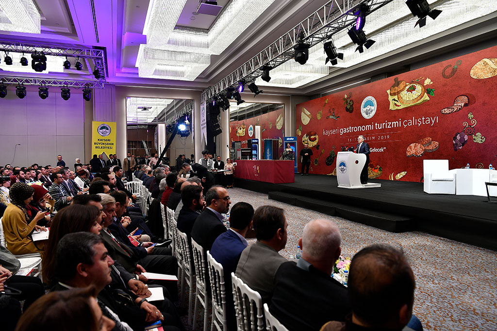 Kayseri’de turizmin çeşitlendirilmesi için çok önemli bir atılım olan balon turizminin başladığı günde bir başka önemli çalışma olan Gastronomi Turizmi Çalıştayı başladı. Çalıştayın açılışında konuşan Kayseri Büyükşehir Belediye Başkanı Memduh Büyükkılıç, Kayseri’nin turizmde en önde olması için çalıştıklarını söyledi ve “Bunu elbirliğiyle başaracağız” dedi. Kayseri Büyükşehir Belediyesi tarafından düzenlenen Gastronomi Turizmi Çalıştayı Radisson Blu Hotel’de başladı. Çalıştayın açılışına Büyükşehir Belediye Başkanı Dr. Memduh Büyükkılıç’ın yanı sıra Vali Şehmus Günaydın, Önceki Dönem Enerji ve Tabi Kaynaklar Bakanı Taner Yıldız, Kayseri Milletvekili İsmail Tamer, Cumhuriyet Başsavcısı Abdülkadir Akın, AK Parti İl Başkanı Şaban Çopuroğlu, Üniversite Rektörleri, İlçe Belediye Başkanları, Oda Başkanları, bürokratlar ve çok sayıda davetli katıldı. Çalıştayın açılışında konuşan Ticaret Odası Başkanı Ömer Gülsoy, şehrin ilçeleriyle birlikte çok zengin bir yemek kültürüne sahip olduğunu söyledi. Kayseri’nin turizm açısından önemli bir hazineye sahip bulunduğunu ifade eden Gülsoy, Kayseri’nin turizmden daha fazla pay alması için Valilik ve Büyükşehir Belediyesi öncülüğünde yapılan çalışmalara her türlü katkıyı vermeye hazır olduklarını kaydetti. “GASTRONOMİDE YOL HARİTAMIZI BELİRLEYECEĞİZ” Büyükşehir Belediye Başkanı Dr. Memduh Büyükkılıç ise sözlerinin başında Soğanlı’da başlatılan balon turizmine değinerek balon turizminin başlamasıyla Kayseri’ye ayrı bir destinasyon kazandırdıklarını belirtti. Gastronomi Turizmi Çalıştayı’nı bir yol haritası belirlemek için gerçekleştirdiklerini ifade eden Başkan Büyükkılıç, “Önümüzdeki dönemde bir kongre yapacağız ve Kayseri’yi daha fazla ön plana çıkaracağız” dedi. Konuşmasında Kayseri’nin lezzetlerinden de bahseden Başkan Büyükkılıç, iki kıtadan oluşan şu şiiri okudu: “Sucuk, pastırma ve mantı diyarı, Katmerin, ketenin anavatanı Böyle mutfak yok gezsen dünyayı, Bin bir lezzetiyle güzel Kayseri *** Pöç, fırın ağzı, kurşun aşıyla Çemeni, sarması, yağlamasıyla Şifa kaynağı gilaburuyla Lezzetler diyarı özel Kayseri.” “KAYSERİ TURİZM YARIŞINDA EN ÖNDE OLACAK” Kayseri’nin medeniyetler şehri olduğunu ve çevre illerle birlikte büyük bir hinterlandın kültürüne sahip bulunduğunu ifade eden Başkan Memduh Büyükkılıç, sözlerini şöyle sürdürdü: “Bacasız sanayi olarak nitelendirilen turizmden en büyük kazanımı elde edeceğiz. Kayseri, Allah’ın izniyle bu yarışta en önde olacak. Bunu da birlikte sağlayacağız.” Konuşmasında gilaburuya ayrı bir parantez açarak yararlarından bahseden ve şifa kaynağı olduğunu dile getiren Başkan Memduh Büyükkılıç, “Biz istiyoruz ki bu tatları herkes tatsın ve herkes yararlansın” dedi ve katılımcılara “Bunu birlikte yapar mıyız?” şeklinde seslenerek “Bep beraber elbirliğiyle yaparız, yapacağız. Birbirimizin kusurunu aramak yerine birbirimize sahip çıkarak bu şehrin güzelliklerini paylaşmak asli görevimiz olacaktır” diye konuştu. BAŞKAN’DAN TİYATRO MÜJDESİ Büyükşehir Belediye Başkanı Dr. Memduh Büyükkılıç, konuşmasında bir de müjde verdi. Kayseri’nin 2020 yılından itibaren tiyatrolar şehri olacağını dile getiren Başkan Büyükkılıç, “Deblet Tiyatroları ile gerekli çalışmaları Taner Yıldız Bakanım yaptı. Yılbaşından itibaren Kayseri’de ayda en az 3-4 devlet tiyatrosu izlenecek” dedi. Önceki Dönem Enerji ve Tabi Kaynaklar Bakanı Taner Yıldız da konuşmasında Kayseri’nin zenginliklerini daha fazla ön plana çıkaracak çalışmalar yapacağını ifade ederek “Böylesi güzel bir etkinliğe ev sahipliği yapan Büyükşehir Belediye Başkanımıza teşekkür ediyorum ve bu etkinliğin geleneksel hale geleceğine inanıyorum” dedi. Kayseri Milletvekili İsmail Tamer de konuşmasında yapılan bu güzel çalışmalara el birliğiyle katkı vereceklerini söyledi. Vali Şehmus Günaydın ise Kayseri’nin turizmde önemli bir gün yaşadığını belirtti. Sabah saat 05.00’te balon turizmini başlattıklarını ifade eden Vali Günaydın, “Balon turizminin Kayseri’ye kazandırılmasında başta Cumhurbaşkanımız olmak üzere Bakanlarımızın, Milletvekillerimizin, Belediye Başkanımızın çok önemli katkıları oldu. Kendilerine teşekkür ediyoruz” dedi. Vali Günaydın Gastronomi Turizmi Çalıştayı’nın da Kayseri açısından son derece yararlı olduğunu kaydetti. Konuşmaların ardından Başkan Memduh Büyükkılıç, Vali Günaydın, Bakan Yıldız ve KTO Başkanı Gülsoy’a günün anısına mutfak önlüğü ve üzerinde isimleri yazılı mutfak bıçağı hediye etti. Açılış konuşmalarının ardından Kayseri Üniversitesi Rektörü Prof. Dr. Kurtuluş Karamustafa gastronomi turizmiyle ilgili detaylı bir sunum yaptı. Daha sonra ise “Gastronomi Turizmi ve Kültürel Miras” konulu oturum gerçekleştirildi. Çalıştayda ayrıca gastro şovlarla yağlama, tepsi mantısı gibi Kayseri’nin lezzetleri davetliler önünde yapıldı.