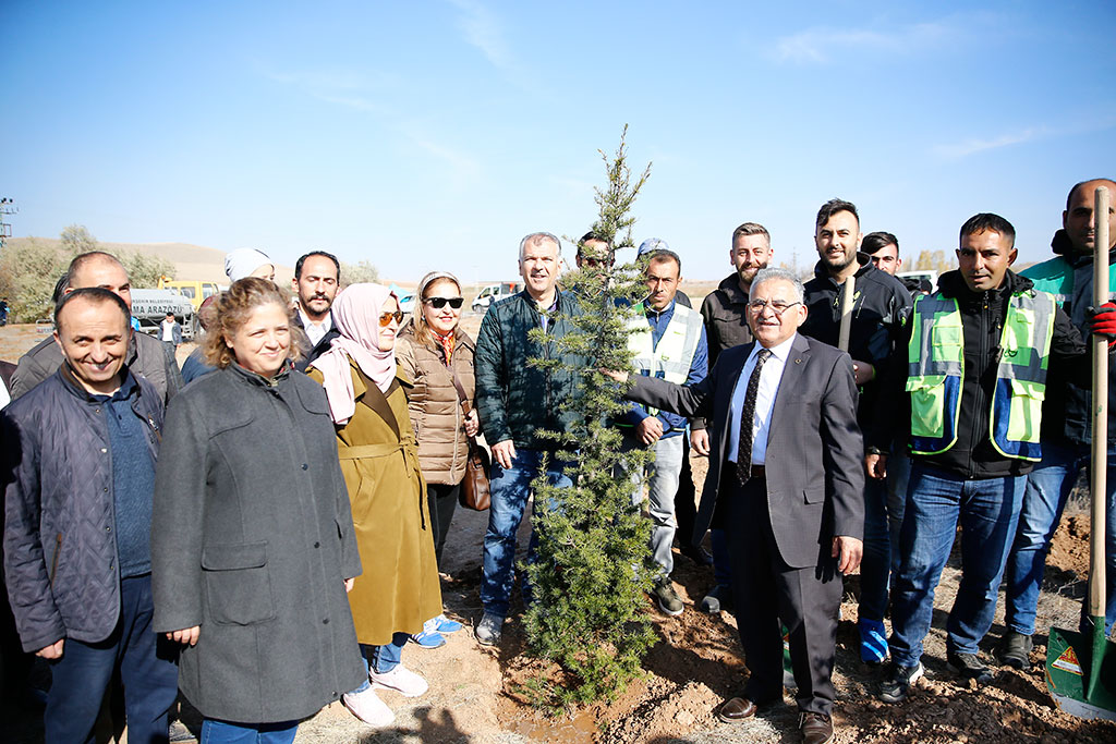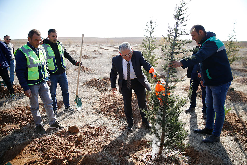 Kayseri Büyükşehir Belediyesi, Tarım ve Orman Bakanlığı’nın Geleceğe Nefes etkinliğinin yanı sıra Sarımsaklı Barajı çevresinde de fidan dikimi gerçekleştirdi. Geçen yıl 10 bin fidanın dikildiği Sarımsaklı Barajı çevresine bu yıl da 11 bin fidanın dikimi yapıldı. Büyükşehir Belediye Başkanı Dr. Memduh Büyükkılıç, ağaca sahip çıkmanın geleceğimizi garanti altına almak olduğunu söyledi. Büyükşehir Belediye Başkanı Dr. Memduh Büyükkılıç, Akçatepe’de gerçekleştirilen fidan dikimi töreninin ardından Sarımsaklı Barajı’na geçerek fidan dikmeye devam etti. Başkan Memduh Büyükkılıç, Büyükşehir Belediyesi’nce gerçekleştirilen etkinliğe katılarak vatandaşlarla birlikte fidan dikti. Ağacı sevmenin ve sahip çıkmanın geleceği garanti altına almak anlamına geldiğini vurgulayan Başkan Memduh Büyükkılıç, bu anlayışla çalışmalara devam ettiklerini belirtti. Tarım ve Orman Bakanlığı’nın Geleceğe Nefes için Kayseri’de diktiği 500 bin fidana ilave olarak Sarımsaklı’da 11 bin fidanı toprakla buluşturduklarını dile getiren Başkan Memduh Büyükkılıç, geleceğe nefes olacak çalışmalara katkıda bulunanlara teşekkür etti.