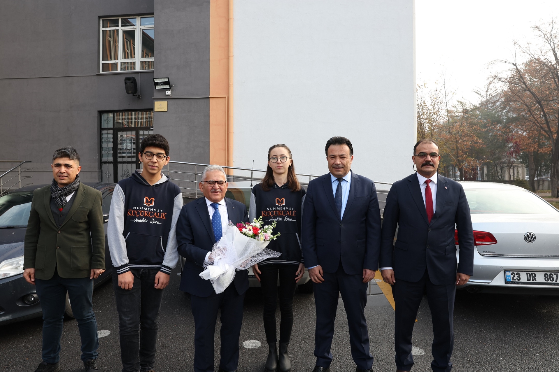 çiçeklerle karşılanan Başkan Büyükkılıç, sınıfları da gezerek, öğrencilere