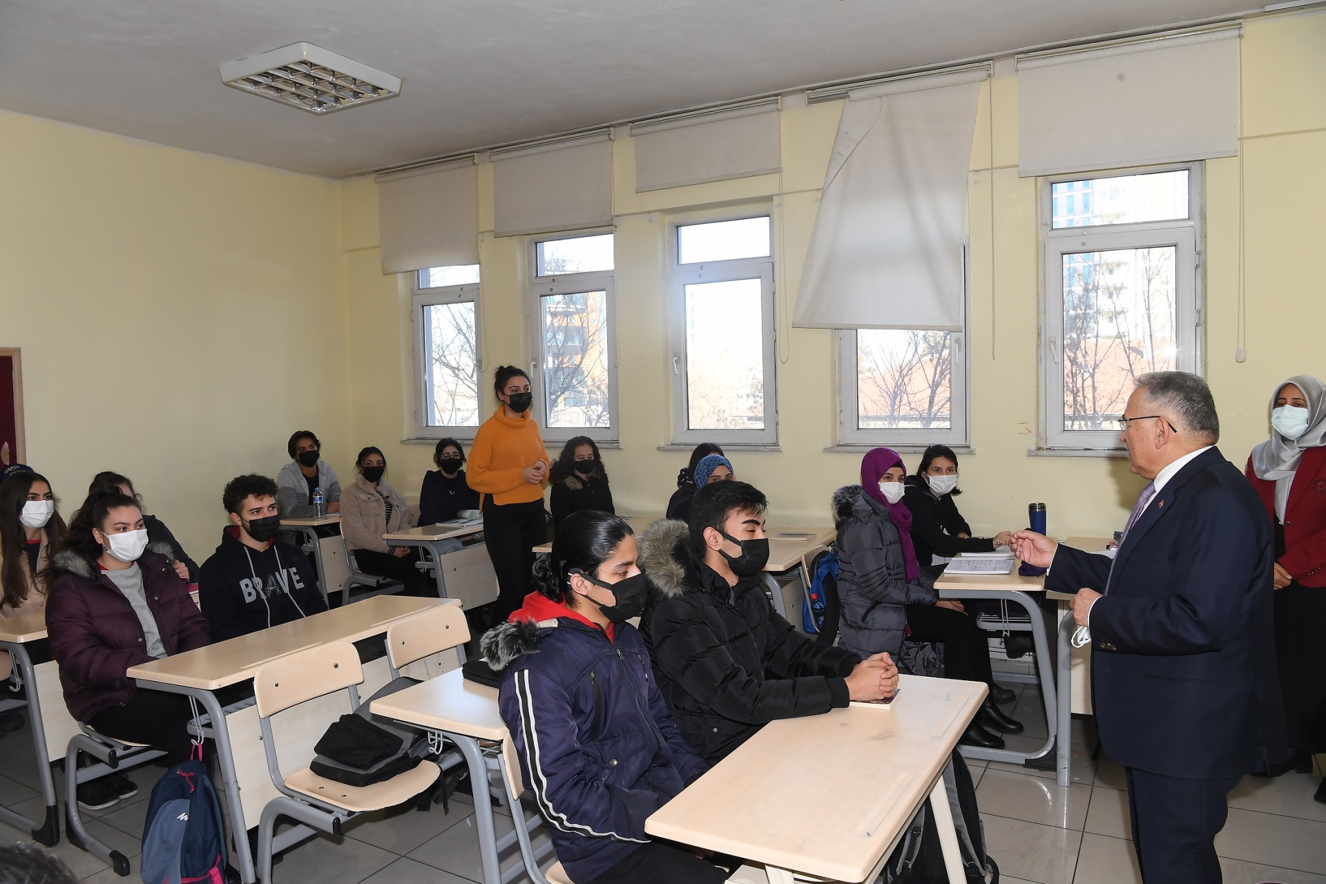Başkan Büyükkılıç, sınıfları gezdi, öğretmenler odasını ziyaret ederek