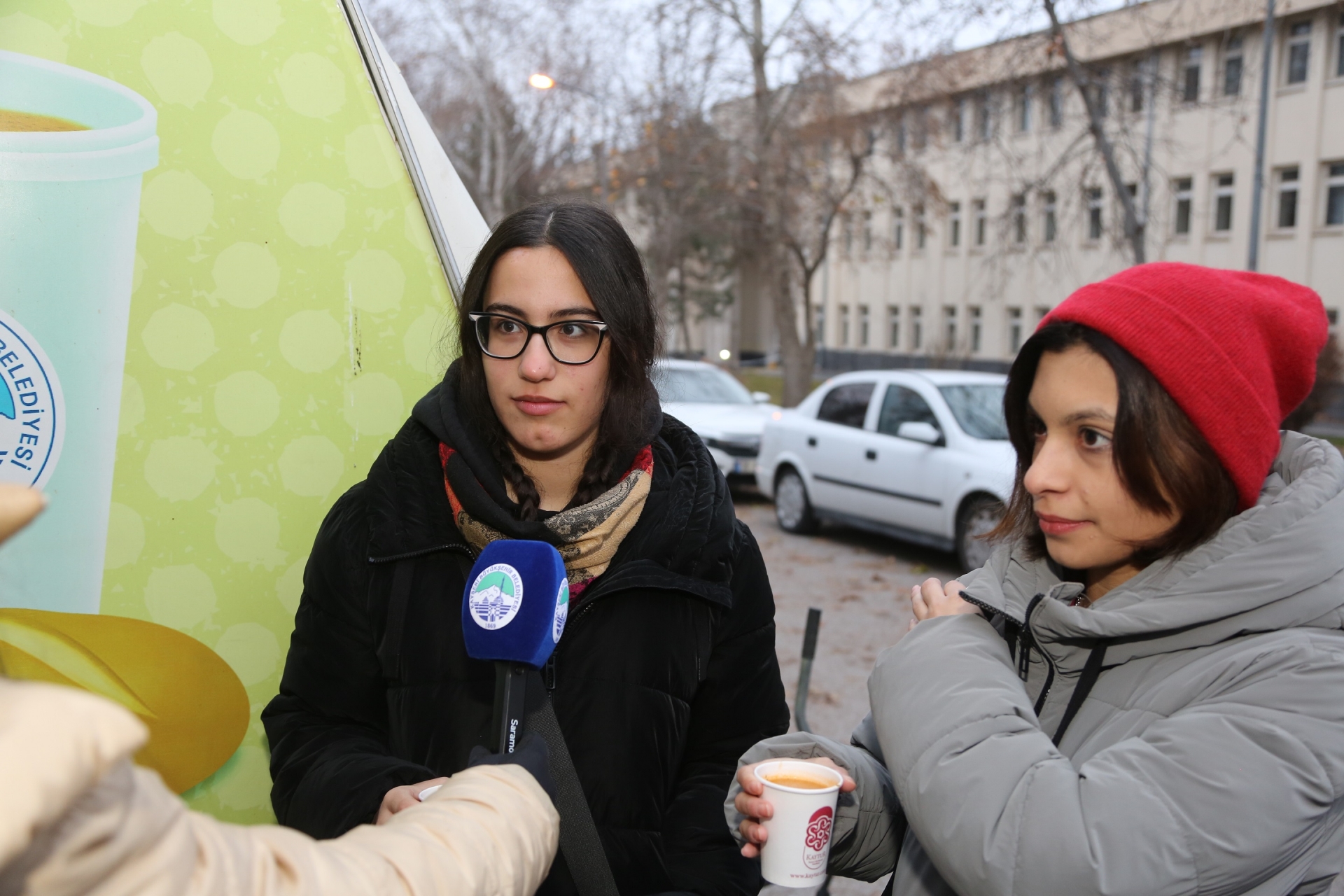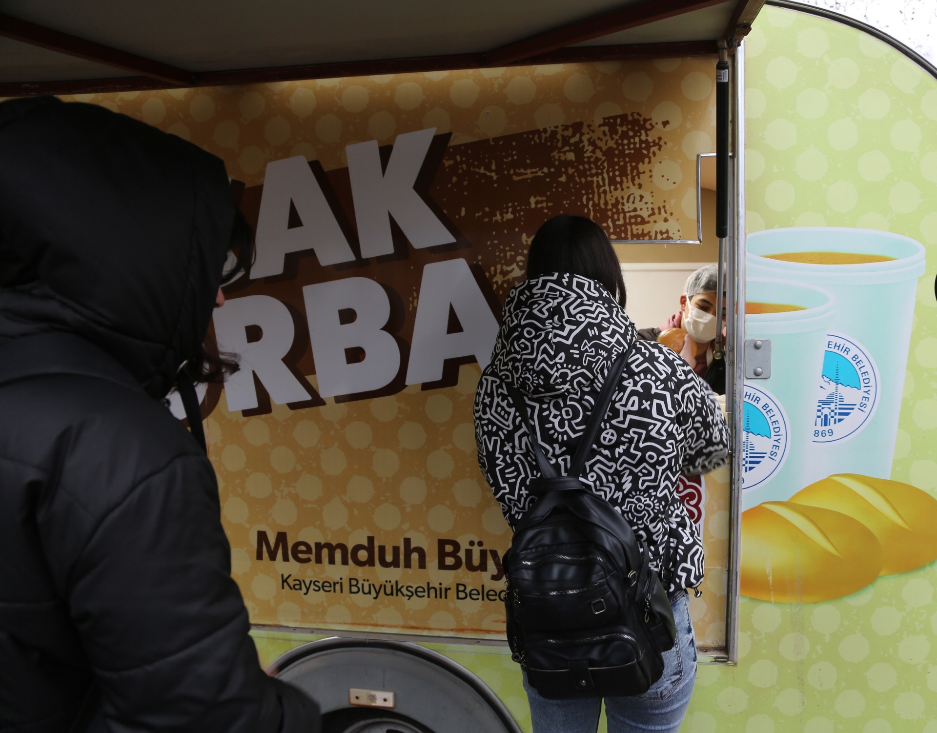 ücretsiz olarak sıcak çorba ve çay ikramı yapılıyor. Sıcak çorba ikramında çok