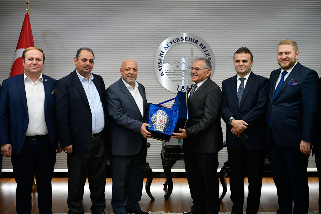 HAK -İŞ Konfederasyonu Genel Başkanı Mahmut Arslan ile HAK- İŞ’e bağlı sendikaların genel başkanları Büyükşehir Belediye Başkanı Dr. Memduh Büyükkılıç’ı ziyaret ettiler. Başkan Memduh Büyükkılıç, çalışanları bir emanet olarak gördüklerini ve onların hakkını korumayı çok önemsediklerini belirtti. HAK- İŞ heyetinin Büyükşehir Belediye Başkanı Memduh Büyükkılıç’a ziyaretine Konfederasyon Genel Başkanı Mahmut Arslan’ın yanı sıra Öz Çelik- İş sendikası Genel Başkanı Yunus Değirmenci, Öz İplik -İş Sendikası Genel Başkanı Rafi Ay, Öz Ağaç -İş Sendikası Genel Başkanı Tuncay Dolu, Enerji İş- Genel Başkanı Mahmud Altunsoy ve bu sendikaların yöneticileri ile şube başkanları katıldı. Sendikaların genel başkanları ile birlikte Başkan Büyükkılıç’a Büyükşehir’deki görevi için hayırlı olsun dileklerinde bulunmak üzere geldiklerini ifade eden HAK- İŞ Genel Başkanı Mahmut Arslan, Başkan Büyükkılıç ile hiçbir dönemde uyuşmazlık yaşamadıklarını söyledi. Başkan Memduh Büyükkılıç’ın sorunları çözen bir anlayışa sahip olduğunu dile getiren Arslan, “Sizinle uzun bir dönem çalışma gerçekleştirdik. Hiçbir dönemde uyuşmazlık yaşamadık. Sorunlarımızın çözümüne önce sizinle Melikgazi Belediyesi’nde başladık. Bizim için orası önemli bir güvenceydi. Büyükşehir Belediye Başkanı olunca daha da rahat çalışacağız” dedi. “ÇALIŞANLARIMIZIN HAKKI ÖNCELİĞİMİZ” Büyükşehir Belediye Başkanı Memduh Büyükkılıç da, uyum içinde çalışmayı prensip edindiklerini dile getirerek, “Sizlerin üyelerinizi bir emanet olarak görüyoruz. Onların hakkını korumayı çok önemsiyoruz” diye konuştu. Yeni dönemde Kayseri’nin her alanda gelişmeye devam edeceğini de belirten Başkan Büyükkılıç, “Kayseri gerek ticari, gerek sanayi, gerek yatırımlar ve gerekse son süreçte turizm açısından en iyi yerlerde olmaya devam edecek. Bu şehri ilgilendiren her işi görev biliyoruz ve elimizi, başımızı taşın altına koyarak çalışıyoruz” dedi.