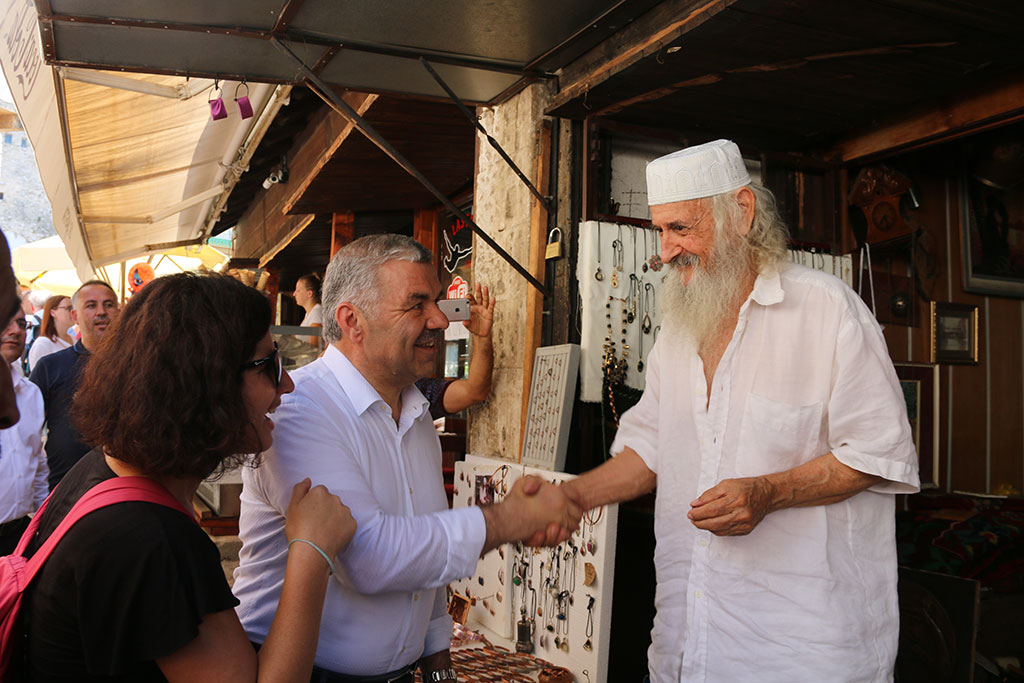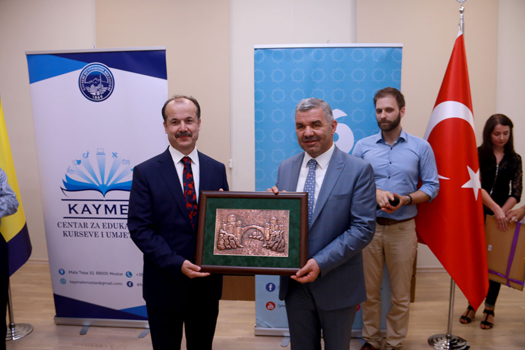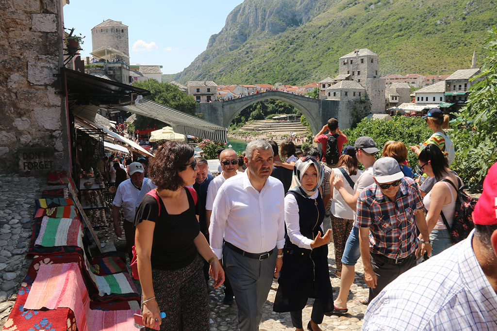 Büyükşehir Belediye Başkanı Mustafa Çelik, kardeş şehrimiz olan Bosna Hersek’in Mostar şehrinde bir dizi ziyaret ve incelemelerde bulundu. Büyükşehir Belediyesi’nin organizasyonuyla Kayseri’deki basın yayın kuruluşlarının temsilcileri ile Mostar’a giden Başkan Çelik, Kayseri’de pek çok proje ile uyguladıkları gönül belediyeciliğini ülke sınırları dışına taşıdıklarını söyledi. Kayseri Büyükşehir Belediyesi’nin KAYMEK şirketiyle Mostar’da vermiş olduğu hizmetler büyük takdirle karşılandı. Türkiye’nin Mostar Başkonsolosu Zerrin Kandemir, Mostar’da Türkiye’den ilk akla gelen şehrin Kayseri olduğunu belirtti. Büyükşehir Belediye Başkanı Mustafa Çelik, Mostar’daki temaslarına KAYMEK Kurs Merkezi’ni ziyaret ederek başladı. Başkan Çelik, Anadolu’da marka haline gelen KAYMEK’in ülkemiz sınırlarının dışına taşan hizmetlerini yerinde gördü ve çalışmalarla ilgili bilgiler aldı. KAYMEK Kurs Merkezi’nin ülkemiz kültürünü yurt dışında tanıtan Yunus Emre Enstitüsü ile işbirliği halinde son iki yılda yaptığı çalışmalarla 1000 kursiyere sertifika verdiği vurgulandı. Büyükşehir Belediye Başkanı Mustafa Çelik, Mostar Köprüsü ve çevresindeki esnaflar ve vatandaşlarla da görüştü. Başkan Çelik, Bosnalıların Kayseri ile ilgili düşüncelerini aldı. “MOSTAR’DA KARDEŞLİĞİ TESİS EDİYORUZ” Büyükşehir Belediye Başkanı Çelik, Mostar’daki KAYMEK Kurs Merkezi’nde yer alan serginin açılışına da katıldı. KAYMEK’te kursiyer iken başarılı çalışmalar gerçekleştiren ve daha sonra KAYMEK’te eğitmen olan Tarık Zagorçiç’in hazırladığı “Ebru Sanat Sergisi”nin açılışına Başkan Mustafa Çelik’in yanı sıra Türkiye’nin Mostar Başkonsolosu Zerrin Kandemir ve Yunus Emre Enstitüsü Genel Başkanı Prof. Dr. Şeref Ateş de iştirak etti. Açılışta konuşan Büyükşehir Belediye Başkanı Mustafa Çelik, insana yatırım ve gönül belediyeciliğini kardeş şehrimiz olan Mostar’da da uyguladıklarını söyledi. Gönül belediyeciliği kavramının slogan olarak kalmadığını ve eyleme de döndüğünü vurgulayan Başkan Çelik, “Büyükşehir Belediyemiz Mostar ve farklı şehirlerde son üç yılda 1000 kursiyere eğitim verdi. Biz tüm bu hizmetleri TİKA ve Yunus Emre Enstitüsü ile birlikte yapıyoruz. Hizmet ederken de din, dil, ırk ayrımı yapmadan gerçek kardeşliği tesis ediyoruz. Büyükşehir Belediyemiz yurt içinde olduğu gibi yurt dışında da hizmet kalitesini ortaya koymuş ve insanların gönlünü ve güvenini kazanmayı başarmıştır. Ecdadımızın bize emaneti olan bağımızı hiç koparmadığımız güzel Mostar’a hizmet vermekten onur duyuyoruz. Üstelik hizmetlerimiz sadece kurslarla sınırlı değil. İhtiyaç duyan sosyal grupların yanında oluyoruz. Mostar’daki yetimhanede ve engelliler okulunda da biz varız. Buralarda da kurs ve malzeme desteği sağlıyoruz. Ramazan ayında burada verdiğimiz iftar takdir toplayan işlerimizin başındaydı” dedi. “MOSTAR’DA EN TANINMIŞ ŞEHİR KAYSERİ” Sergi açılışında konuşan Yunus Emre Enstitüsü Genel Başkanı Prof. Dr. Şeref Ateş de yapılan çalışmalardan övgüyle söz etti. Türkiye’nin Mostar Başkonsolosu Zerrin Kandemir ise Kayseri Büyükşehir Belediyesi’nin yapmış olduğu çalışmaları çok önemsediğini ifade ederek, “Binlerce Mostarlının yaşamına dokunmamıza yardımcı oldukları için, kardeş şehir belediyesi ilişkisini sadece kağıtta bırakmadıkları için, Mostar’da Türkiye’den akla gelen ilk şehir dendiğinde Kayseri isminin gelmesini sağladıkları için kendilerine teşekkür ediyorum” diye konuştu. Konuşmaların ardından Mostar’daki KAYMEK Merkezi’ne kursiyer olarak giren; ama gösterdiği başarı ile eğitmen olan Tarık Zagorçiç’in sergisi ziyaretçilere açıldı.