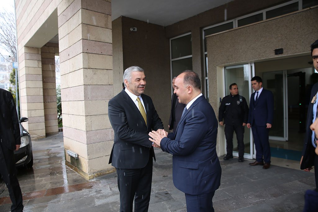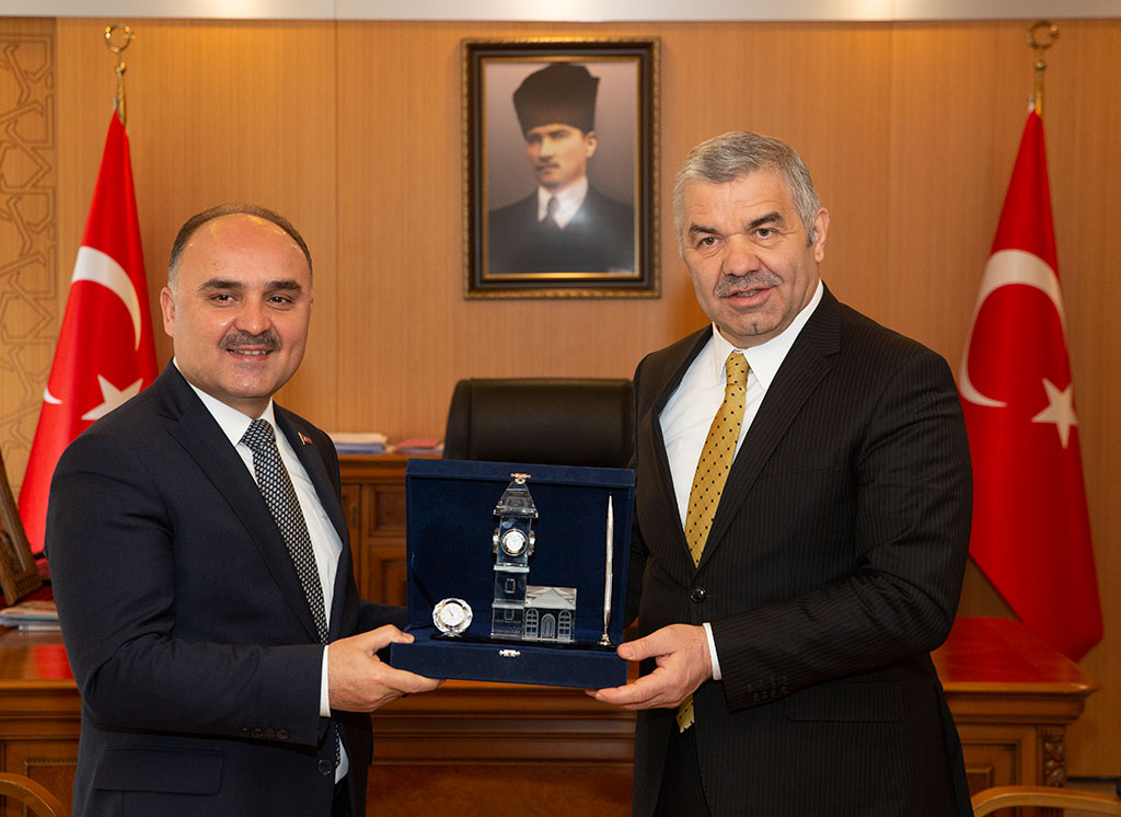Büyükşehir Belediye Başkanı Mustafa Çelik, veda ziyaretleri kapsamında Vali Şehmus Günaydın’ı ziyaret etti. Başkan Çelik, şehre önemli hizmetlerde bulunduklarını ve gönül huzuru içinde ayrıldıklarını söyledi. Vali Günaydın da Başkan Çelik’e şehirdeki uyum kültürüne katkısı ve yapmış olduğu hizmetler nedeniyle teşekkür etti. Büyükşehir Belediye Başkanı Mustafa Çelik, Vali Şehmus Günaydın’ı ziyaret ederek bir süre görüştü. Görev süresi boyunca şehrin tüm yönetim dinamikleriyle olduğu gibi valilik ve bağlı kurumlarıyla da uyum içinde çalıştığını ifade eden Başkan Çelik, bu uyumla da şehri iyi bir seviyeye getirdiklerini söyledi. Başkan Çelik, gönül huzuru içinde görev sürelerini tamamladıklarını dile getirdi. Vali Şehmus Günaydın da Başkan Çelik’in şehirdeki uyum kültürüne önemli katkı sağladığını ifade ederek, “4 aydır beraber çalışıyoruz. Başkanımız ilk geldiğimizde Kayseri’deki uyum kültürünü dile getirdi. 4 ay içinde bunu yaşayarak gördük. Kurumlar arasındaki uyumun iyi olması hizmetlerin kaliteli ve verimli olmasını sağlıyor. Bunu sağladıkları için Başkanımıza teşekkür ediyorum. Büyükşehir Belediye Başkanının bu anlamda yapıkları çok önemli. Kurumlar arası koordinasyonu sağlamak başkanımızın yaptığı önemli bir görev. Bunu sağladıkları için ve Kayserimize yaptığı hizmetler nedeniyle teşekkür ediyorum. Bundan sonra kendisine ve ailesine huzurlu ve sağlıklı bir hayat temenni ediyorum” diye konuştu. Vali Günaydın, ziyarette Başkan Mustafa Çelik’e günün anısına Tarihi Saat Kulesi’nin maketini hediye etti.