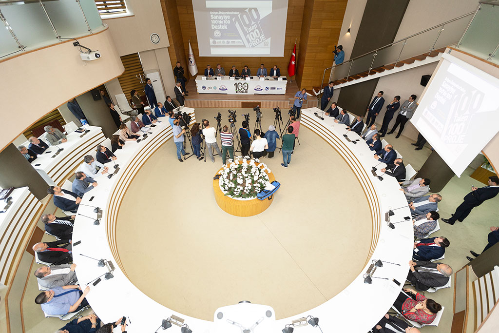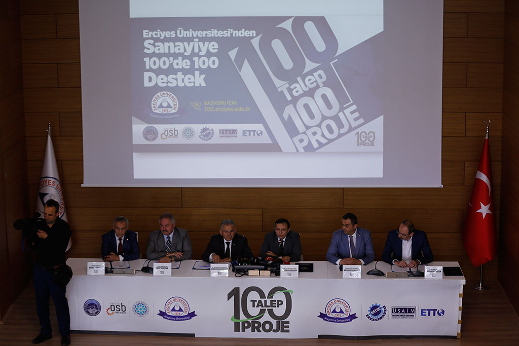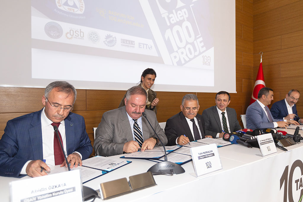 Kayseri Büyükşehir Belediyesi ve Erciyes Üniversitesi ile meslek odaları ve Organize Sanayi Bölgesi arasında “100 Talep 100 Proje” konulu protokol imzalandı. Büyükşehir Belediye Başkanı Dr. Memduh Büyükkılıç, üniversite-sanayi işbirliğini icraata geçirecek olan her projeye destek vermeye hazır olduklarını söyledi. Büyükşehir Belediye Başkanı Memduh Büyükkılıç, Erciyes Üniversitesi’nde düzenlenen törenle Erciyes Üniversitesi, Erciyes Teknoloji Transfer Ofisi, Kayseri Sanayi Odası, Kayseri Ticaret Odası, Kayseri Organize Sanayi Bölgesi ve Üniversite Sanayi Araştırma İşbirliği Vakfı arasında hazırlanan “100 Talep 100 Proje” konulu protokolü imzaladı. Böylesine önemli bir proje için imza atmaktan duyduğu memnuniyeti dile getiren Başkan Büyükkılıç, “Sanayicilerimizle, üniversitelerimizin işbirliği konusu sürekli gündeme getirdiğimiz konulardan birisi. İşbirliğini lafta bırakmayıp icraata geçirecek olan protokol nedeniyle tüm paydaşlarımızı tebrik ediyorum. Yerel yönetimler olarak daha fazlasını yapmak istediğimizi de beyan ediyorum. Bu projeyi daha da ileriye taşımak için ne gerekiyorsa hazırız” dedi. Büyükşehir Belediye Başkanı Memduh Büyükkılıç’ın da imzaladığı protokol 100 sanayici talebi ile 100 akademik çözümü uygulayarak sonuç elde edilmesini amaçlıyor.