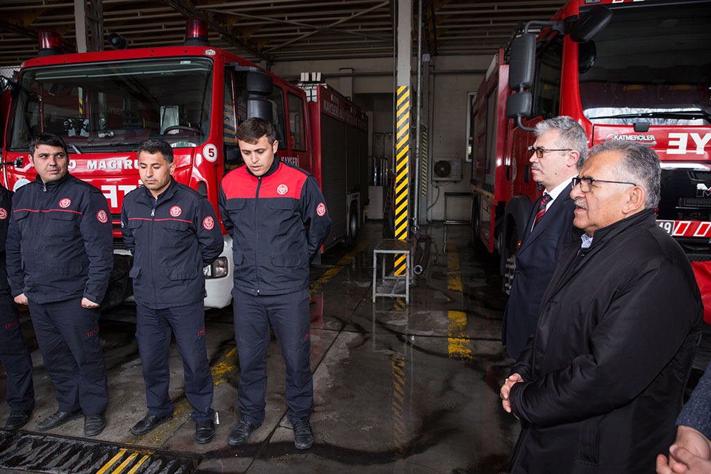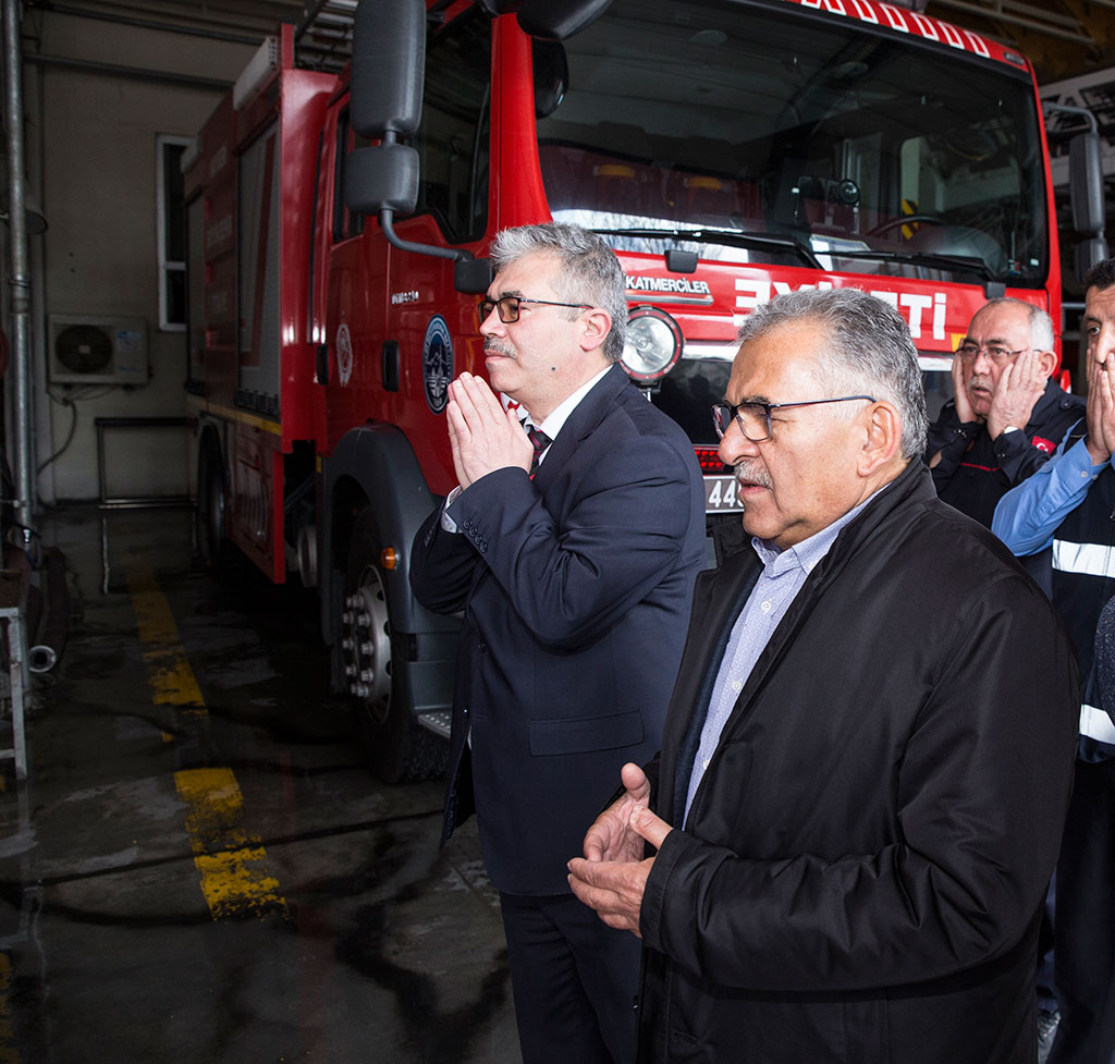 Kayseri Büyükşehir Belediye Başkanı Dr. Memduh Büyükkılıç, her yeni güne duayla başlayan Büyükşehir Belediyesi İtfaiyesini ziyaret etti. Başkan Büyükkılıç, İtfaiye personeli ile birlikte dua etti ve onlardan güvenlik önlemlerini asla göz ardı etmemelerini istedi. Büyükşehir Belediye Başkanı Memduh Büyükkılıç, sabah erken saatlerde parklarda yaptığı incelemenin ardından Büyükşehir Belediyesi İtfaiye Teşkilatını ziyaret etti. Başkan Büyükkılıç, her yeni güne duayla başlayan itfaiye personeli ile birlikte el açarak dua etti. İtfaiye personelinin dualarında “Allah’ım tehlikeye düşmüş her canlının imdadına geç kalmadan yetişmemiz için bize güç ver. Sevgimizi, cesaretimizi ve inancımızı eksik etme” ifadeleri yer aldı. Büyükşehir Belediye Başkanı Memduh Büyükkılıç, toplu halde edilen duanın ardından güne ve her yapılan işe Besmele ile başlamanın önemine vurgu yaparak, “Allah hepimizi kazadan beladan korusun. Hassas bir görev yapıyorsunuz. Her işin başı Besmele. Cenabı Allah Besmele ile başlanan her işi hayırla sonuçlandırır. Sizlerden isteğimiz güvenlik önlemlerini asla göz ardı etmeden tedbirinizi alın ve takdiri Allah’a bırakın” diye konuştu.