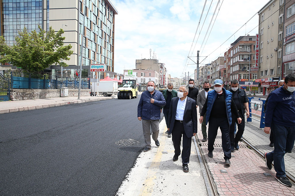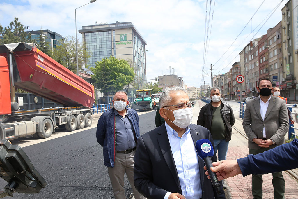 Kayseri Büyükşehir Belediye Başkanı Dr. Memduh Büyükkılıç, sokağa çıkma kısıtlaması nedeniyle boşalan yollarda altyapı ve yenileme çalışmaları yapan Büyükşehir ekiplerini ziyaret etti. Büyükşehir Belediyesi’nin sokağa çıkma kısıtlamasını da değerlendirerek boşalan caddelerdeki çalışmaları devam ediyor. Büyükşehir Belediye Başkanı Dr. Memduh Büyükkılıç, Düvenönü’nden Osman Kavuncu Bulvarı istikametine yapılan asfaltlama çalışmalarını yerinde takip etti. Caddelerde trafiğin olmamasını değerlendirdiklerini ifade eden Başkan Büyükkılıç, “Evde kal Kayseri, biz size hizmet ederiz’ parolasıyla hizmetlerimizi sürdürüyoruz. Trafik yoğunluğunun olmaması nedeniyle sokağa çıkma kısıtlamasında çalışıyoruz. Geçen hafta Osman Kavuncu Bulvarı’nda KASKİ alt yapı çalışmaları yapmıştı. Bu hafta da ekiplerimiz asfaltlama çalışması yapıyor. Ana arterlerimizin asfaltını yaparak Kayseri’ye yakışır duruma getiriyoruz. Şehrin farklı bölgelerindeki çalışmalara devam edeceğiz” dedi.