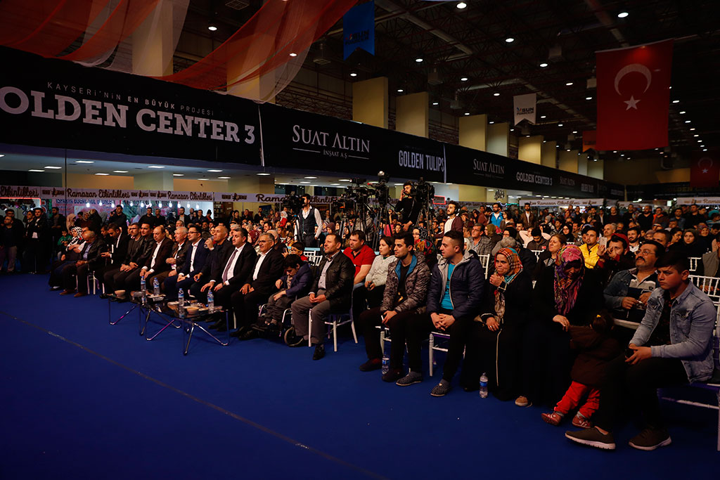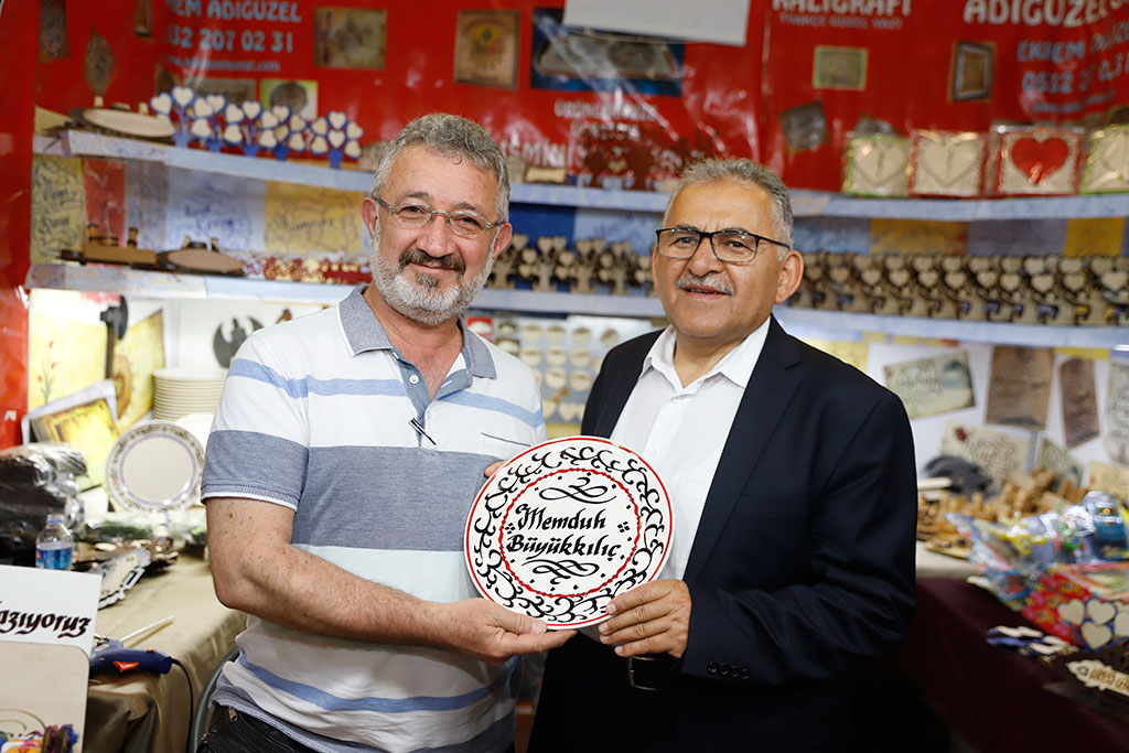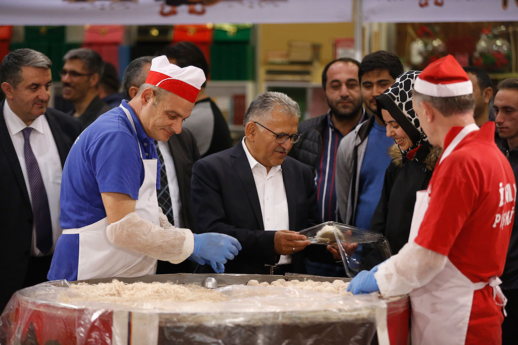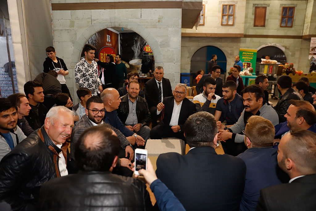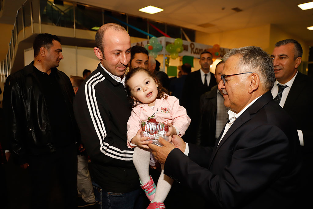 Kayseri Büyükşehir Belediye Başkanı Dr. Memduh Büyükkılıç, Kayseri Dünya Ticaret Merkezi’ndeki Ramazan Etkinlikleri alanını ziyaret ederek vatandaşlarla bir araya geldi. Etkinlik alanındaki tüm esnafı tek tek dolaşan Başkan Büyükkılıç’a vatandaşlar tarafından büyük ilgi gösterildi. Başkan Büyükkılıç, Ramazan Etkinliklerinin ikinci gününe katılan Ünlü Sanatçı Esat Kabaklı’yı da dinledi. Büyükşehir Belediye Başkanı Memduh Büyükkılıç, teravih namazı sonrası Kayseri Dünya Ticaret Merkezi’ni ziyaret etti. Ramazan’ın ruhunu en güzel şekilde yansıtan etkinlik alanında tüm esnafları tek tek ziyaret eden Başkan Büyükkılıç, esnaf ve vatandaşlarla sohbet etti. Her gittiği yerde ilgi ve sevgiyle karşılaşan Başkan Büyükkılıç, vatandaşlara ikramlarda da bulundu. Başkan Büyükkılıç, etkinlik alanını gezen vatandaşlara simit ve pişmaniye dağıttı. ESAT KABAKLI’DAN MUHTEŞEM KONSER Ramazan etkinliklerinin ikinci gününe Ünlü Sanatçı Esat Kabaklı katıldı. Ünlü Besteci ve Yorumcu Esat Kabaklı teravih namazı sonrasında başlayan konserinde kahramanlık türküleri ve marşlar seslendirdi. Büyükşehir Belediye Başkanı Memduh Büyükkılıç da izleyenlerle birlikte türküler ve marşlara eşlik etti. Büyük bir ilgiyle takip edilen Esat Kabaklı, “Bil Oğlum” türküsü ile izleyenleri coşturdu. Konser sonrası sahneye çıkarak Esat Kabaklı’ya çiçek veren ve teşekkür eden Başkan Memduh Büyükkılıç, Esat Kabaklı’nın milli duygularımızı şaha kaldıran bir sanatçı olduğunu ifade ederek, “Kendini vatanına, milletine, Türk Bayrağımıza, ezanımıza feda etmiş, ömrünü bu uğurda harcamış olan aziz bir dostumuz. Cenabı Allah hayırlı uzun ömürler versin” dedi. Ünlü Sanatçı Esat Kabaklı da “Sayın Başkanıma başarılar diliyorum. Kayseri şaha kalkacak diyorlar. İnşallah Başkanımla şaha kalkacak” diye konuştu. Büyükşehir Belediye Başkanı Memduh Büyükkılıç, konser sonrası da etkinlik alanını gezmeye ve vatandaşlarla bir arada olmaya devam etti. Geç saatlere kadar etkinlik alanında vatandaşlarla sohbet eden Başkan Büyükkılıç, sahurluk simit ve kete de dağıttı.