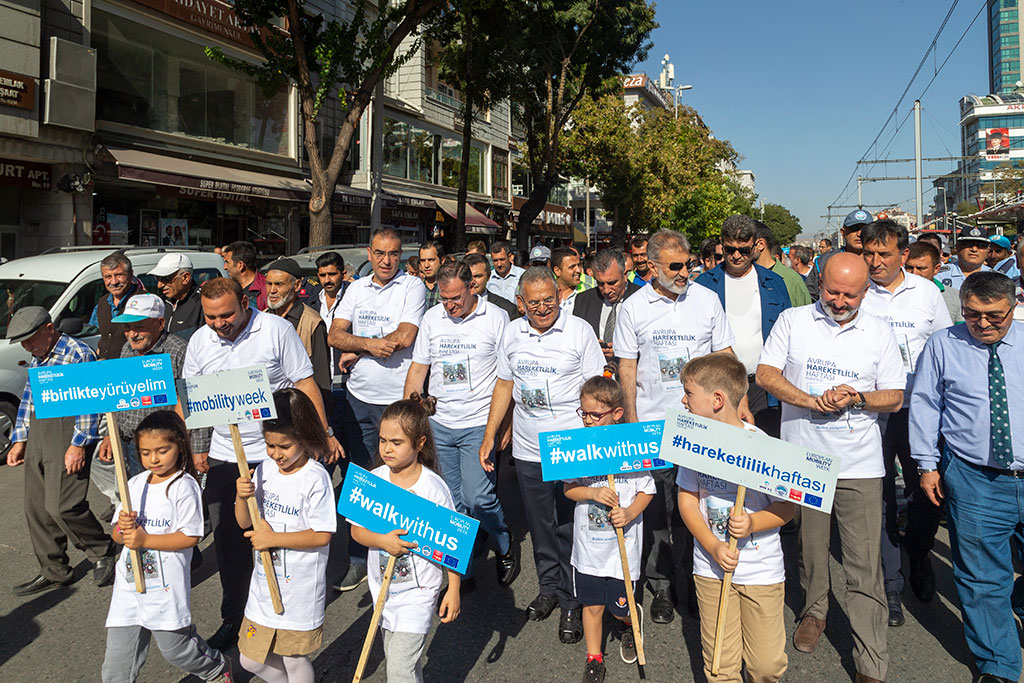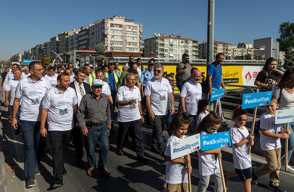 Kayseri Büyükşehir Belediyesi, “Avrupa Hareketlilik Haftası” kapsamında hafta başından beri sürdürdüğü etkinliklere “7’den 77’ye Birlikte Yürüyelim” etkinliği ile devam etti. Başkanlık girişinden başlayan ve her yaştan insanların katıldığı yürüyüş etkinliğini Büyükşehir Belediye Başkanı Dr. Memduh Büyükkılıç ve önceki dönem Enerji Bakanı Taner Yıldız başlattı. Spor A.Ş. tarafından “Avrupa Hareketlilik Haftası” etkinlikleri çerçevesinde “7'den 77'e Birlikte Yürüyelim” sloganıyla yapılan organizasyona Büyükşehir Belediye Başkanı Dr. Memduh Büyükkılıç’ın yanı sıra önceki dönem Enerji Bakanı Taner Yıldız, Kocasinan Belediye Başkanı Ahmet Çolakbayrakdar, Hacılar Belediye Başkanı Bilal Özdoğan, kreşlerden gelen çocuklar ve huzurevi sakinleri katıldı. Başkanlık girişinden başlayan ve mehteran takımının öncülüğünde devam eden yürüyüş renkli görüntülere sahne olurken, vatandaşların da yürüyüşe katıldıkları gözlendi. Cumhuriyet Meydanı’nda biten yürüyüş sonrasında konuşan Başkan Memduh Büyükkılıç, sözlerine Avrupa Hareketlilik Haftası nedeniyle Büyükşehir’in etkinliklerine gösterilen ilden dolayı vatandaşlara teşekkür ederek başladı. Her gün farklı ilçelerde etkinlikler gerçekleştirildiğini belirten Başkan Büyükkılıç, “Her gün bir ilçemizde, bir bölgemizde veya caddemizde etkinlikten etkinliğe koşuyoruz. Kayseri’mizin güzel insanlarının da etkinliklere destek vermesi bizleri keyiflendiriyor. Etkinlikler kapsamında hedefimiz bisiklet ve yürüyüş etkinlikleri olacaktır. Amacımız ise sağlıklı bir toplum oluşturmak. Güzel şehrimiz bisiklet kullanma açısından çok uygun. Dolayısıyla bu güzellik sizler tarafından kullanılmalı. Ayrıca önümüzdeki iki yıl içerisinde ilaveten 50 kilometrelik bisiklet yolu yapmak suretiyle bisikletle ilgili olan çalışmaları halkımıza yakışır bir konuma getirmek istiyor ve Kayseri’de yaşayan 1 buçuk milyon insanı teşvik etmek istiyoruz. Yapmış olduğumuz çalışmaları 16 ilçemize de önermekte ve oralarda da bu tür etkinliklerin yapılması için gerekli gayreti göstermekteyiz” dedi. Bisiklete Önem Veren Belediye Büyükşehir Belediyesi olarak bisiklete önem verdiklerini belirten Büyükşehir Belediye Başkanı Memduh Büyükkılıç, “Kayseri’mizde 51 bölgede KAYBİS marifetiyle bisikletlerimizi konumlandırdık ve vatandaşlarımızın rahatça kullanımına sunduk. Bisiklete en uygun şehir olan Kayseri’nin en güzel şekilde kullanılması her türlü kolaylığı sağlıyoruz” şeklinde konuştu. Birçok ilçede değişik alanlarda etkinlikler yapıldığına değinen Başkan Büyükkılıç, gerçekleştirilen çalışmalarda bisikletin önemine dikkat çekmeyi amaçladıklarını belirtti. Kayseri Kalesi Açılıyor Konuşmasında Kayseri Kalesi’nin açılışına da değinen Başkan Memduh Büyükkılıç, “Kayserimizin en önemli değerlerden birisi olan, değişik medeniyetlere ev sahipliği yapmış olan kalemiz tamamlandı. İnşallah 28 Eylül’de sürprizler ve değişik etkinliklerle kelemizi hizmete sunacağız. Sonrasında da ekim ayı içerisinde Sayın Cumhurbaşkanı’mızın yapacağı toplu açılışlarda da resmi açılışını gerçekleştireceğiz” dedi. Başkan Büyükkılıç’tan Sağlık Tavsiyeleri Nöroloji Doktoru olan Büyükşehir Belediye Başkanı Memduh Büyükkılıç, “Bir doktor olarak sizlerin sağlıklı bireyler olarak toplumda yer almasını istiyorum. Şu kısa mesafeli yürüyüşümüzde bile yüzlerce kutu ilacın alınmasını engelleyecek önemli bir çalışma yaptığımızı anımsatmak isterim. Gerek karbonhidrat, gerek lipit, gerekse protein açısından önem arz eden böyle bir rahatsızlıkta adeta kutu kutu milyonlarca lira ithal edilecek iken günde 10 bin adım yürüdüğümüzde hem devletimiz, hem toplumumuz, hem de sizler kazanacak hem de ekonomik olarak büyük bir kazanım elde edilmiş olacak” şeklinde konuştu. Yapılan etkinliklere vatandaşlardan çok daha fazla katılım olmasını isteyen Başkan Büyükkılıç, Spor A.Ş’nin 500 bin kişiye hizmet verdiğini belirterek “Durmak Yok Bu Tür Etkinliklere devam” dedi. “ “7'den 77'ye Birlikte Yürüyelim” etkinliğine katılan önceki dönem Enerji Bakanı Taner Yıldız’da oluşturduğu farkındalık için Büyükşehir Belediye Başkanı Memduh Büyükkılıç’a ve Spor A. Ş. çalışanlarına teşekkür etti.