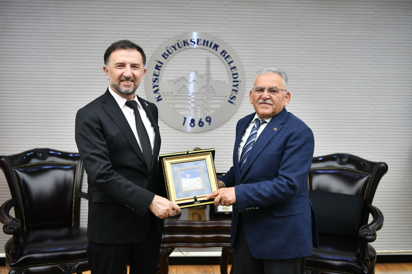 Kayseri Büyükşehir Belediye Başkanı Dr. Memduh Büyükkılıç, Türkiye Havacılık ve Uzay Sanayii (TUSAŞ) Genel Müdürü Dr. Mehmet Demiroğlu ve beraberindeki heyeti, makamında konuk etti.
