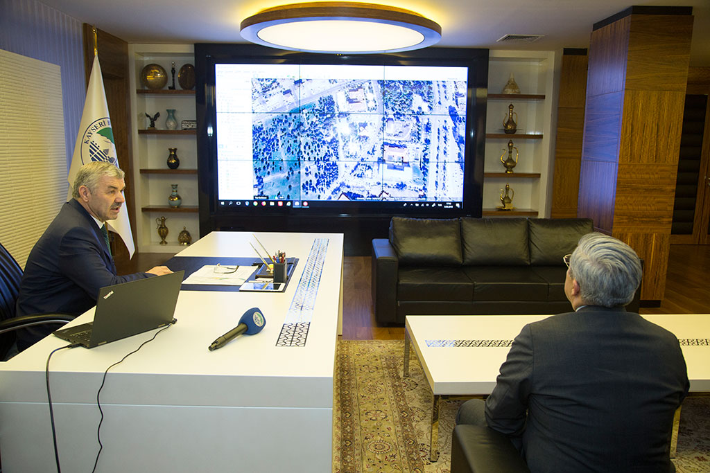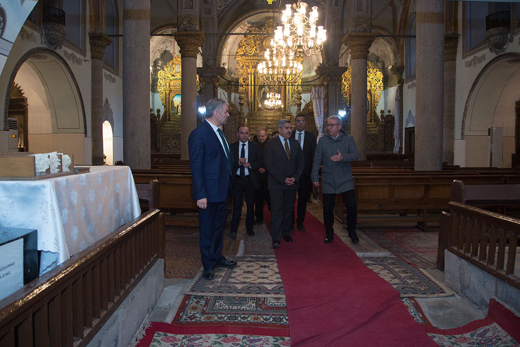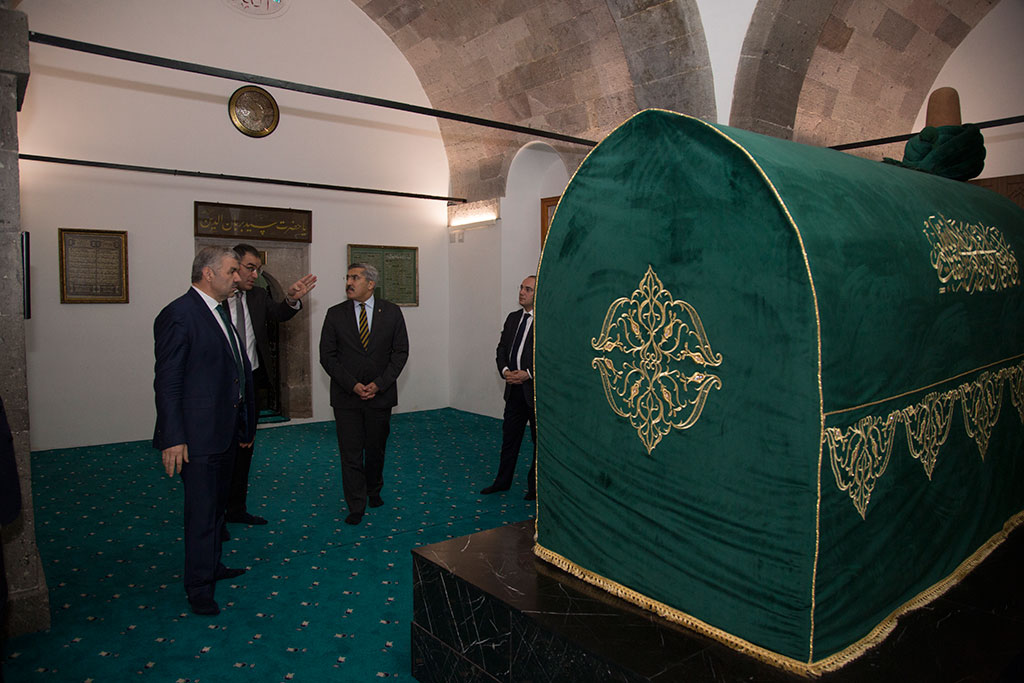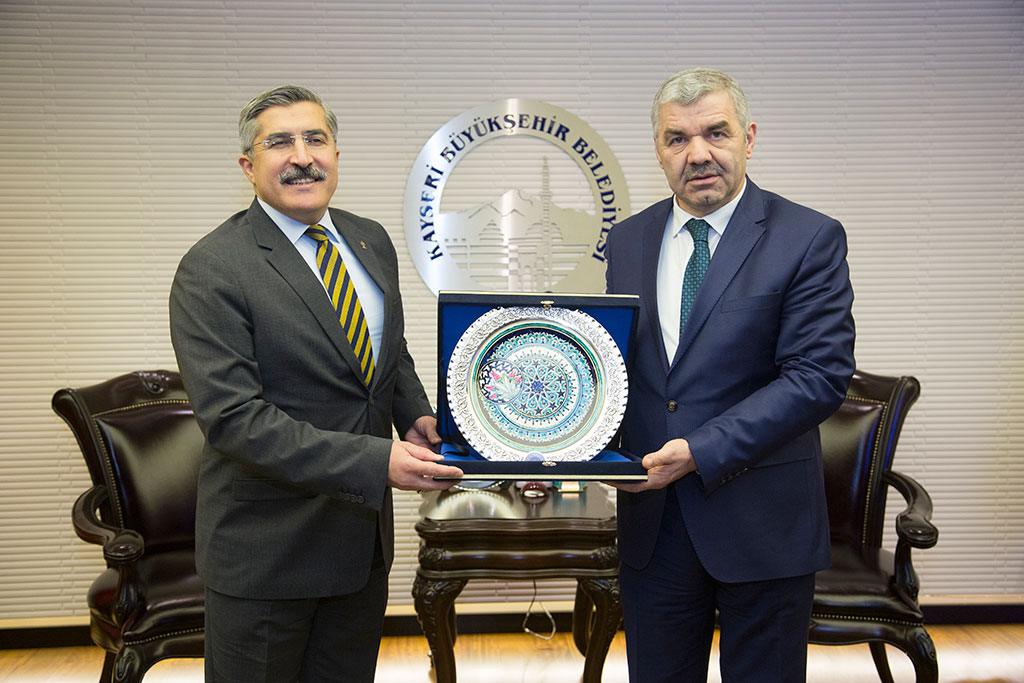 Kültür ve Turizm Bakan Yardımcısı Hüseyin Yayman, Büyükşehir Belediye Başkanı Mustafa Çelik’i ziyaret etti ve Başkan Çelik ile birlikte bazı ziyaretlerde bulundu. Yayman, özellikle Büyükşehir Belediyesi’nin Kayseri’ye kazandırdığı 800 kişilik kütüphaneyi çok beğendi ve Türkiye’de gördüğü en güzel kütüphanelerden biri olduğunu söyledi. Kültür ve Turizm Bakan Yardımcısı Hüseyin Yayman, bir dizi ziyaret ve incelemelerde bulunmak üzere geldiği Kayseri’de Büyükşehir Belediye Başkanı Mustafa Çelik’i de ziyaret ederek bir süre görüştü. Başkan Çelik, Bakan Yardımcısı Yayman’a kültür ve turizm yatırımlarıyla ilgili bilgiler verdi. Başkan Mustafa Çelik ve Bakan Yardımcısı Hüseyin Yayman, birlikte bazı ziyaretlerde de bulundu. Büyükşehir Belediyesi yanındaki 800 kişilik Merkez Kütüphane’yi gezen Hüseyin Yayman, kütüphaneyi çok beğendiğini ifade etti. Bakan Yardımcısı Yayman, “Bizim hayalimizdeki işi yapmışsınız” ifadelerini kullandı. “TÜRKİYE’DE GÖRDÜĞÜM EN GÜZEL KÜTÜPHANE” Her zamanki gibi öğrencilerin tamamen doldurduğu kütüphaneyi gezen ve kütüphaneye gösterilen ilgiden dolayı memnuniyetlerini dile getiren Bakan Yardımcısı Hüseyin Yayman, “Sayın Başkanım Türkiye’nin örnek alınacak kütüphanelerinden bir tanesini yapmış. Mustafa Başkanımı tebrik ediyorum. Kayseri’ye layık bir hizmet olmuş. Kayseri ülkemizin model şehirlerinden bir tanesi. Kültür anlamında da bu model özelliğini sürdürüyor. Başkanımızı tekrar tekrar tebrik ediyorum. Türkiye’de gördüğüm en güzel kütüphanelerden bir tanesi olmuş. Kayseri’ye her şey yakışıyor; ama Kültür şehri Kayseri’ye en çok kitap yakışıyor. Bizim de örnek alacağımız bir uygulama” diye konuştu. Kültür ve Turizm Bakan Yardımcısı Hüseyin Yayman, Büyükşehir Belediye Başkanı Mustafa Çelik ile birlikte daha sonra Seyyid Burhaneddin Hazretleri Türbesi’ni ziyaret ederek Büyükşehir Belediyesi’nin yapmış olduğu restorasyon çalışmaları ve çevre düzenlemelerini yerinde gördü. Bakan Yardımcısı Yayman ve Başkan Çelik, daha sonra Tarihi Surp Krikor Lusavoriç Kilisesi’ne de giderek incelemelerde bulundular.