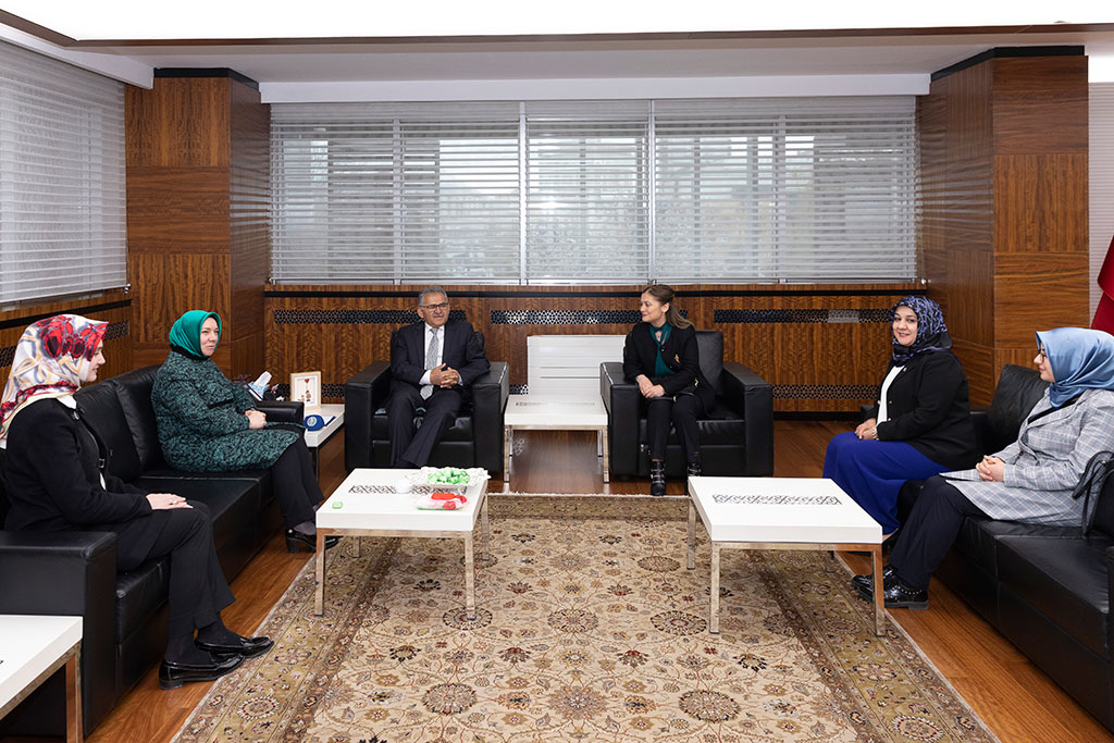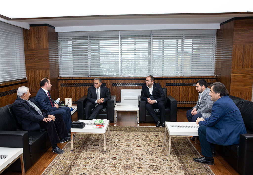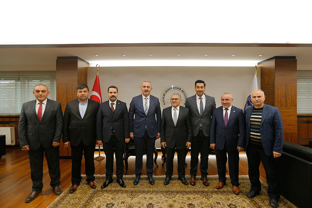 Kayseri Büyükşehir Belediye Başkanı Dr. Memduh Büyükkılıç’ı AK Parti Kayseri Milletvekili Hülya Nergis ile Hizmet İş Sendikası ve KAYMOS yönetimi ziyaret etti. Başkan Büyükkılıç, ziyaretlerde Kayseri için işbirliği içinde çalışacaklarını belirtti. AK Parti Kayseri Milletvekili Hülya Nergis, Büyükşehir Belediye Başkanı Memduh Büyükkılıç’ı ziyaretinde hayırlı olsun dileklerini iletti. Büyükkılıç’ın başkanlığının Kayseri için kazanım olduğunu ifade eden Nergis, “Rabbim hayırlı hizmetler yapmayı nasip etsin. Layıkıyla yapacağınıza inanıyoruz. Sizi AK Parti ailesinin bir ağabeyi olarak görüyoruz” dedi. Başkan Büyükkılıç da dua ve temennilere layık olmak için çalışacaklarını kaydetti. Büyükşehir Belediye Başkanı Memduh Büyükkılıç’ı Hak İş Konfederasyonu Genel Başkan Yardımcısı Halil Özdemir, Hizmet İş Sendikası Kayseri Şube Başkanı Serhat Çelik ve yönetim kurulu üyeleri de ziyaret etti. Büyükkılıç’ın Büyükşehir Belediye Başkanlığından büyük mutluluk duyduklarını ifade eden Halil Özdemir, “Melikgazi Belediyesi’nde sendikamıza gösterdiğiniz alakadan ve işçilerimize gösterdiğiniz şefkatten dolayı teşekkür ederim. Yıllardır hiçbir sıkıntı çekmeden belediye ile iç içe çalıştık. Hiçbir arkadaşımızın içerde tek kuruşu kalmadı ve herkes huzur içinde çalıştı” ifadelerini kullandı. Başkan Memduh Büyükkılıç da bundan sonra da sağduyu ile çalışmaya devam edeceklerini ifade ederek, “Bugüne kadar biz de sizden hiç incinmedik. Tabii ki siz işçinin hakkını korudunuz, bizler de hem işçi hakkını hem de kurumun hakkını korumaya çalıştık ve bu anlayışla da iyi noktalara geldik. Bundan sonra da işbirliğini sürdürerek sağduyu ile hareket ederiz” dedi. Büyükşehir Belediye Başkanı Memduh Büyükkılıç’ı Kayseri Mobilya Sanayicileri Derneği (KAYMOS) Başkanı Mehmet Yalçın ve yönetim kurulu üyeleri de ziyaret etti. Mehmet Yalçın, Başkan Büyükkılıç’a hayırlı olsun dileklerini ileterek KAYMOS olarak her zaman yanlarında olacaklarını belirtti. Başkan Büyükkılıç da “Birlikte şehrimize adına çok güzel işler yapacağımıza inanıyorum” diye konuştu.