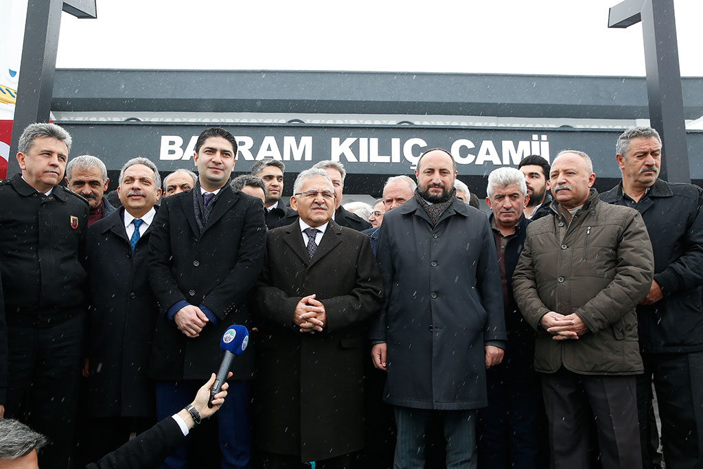 Kayseri Büyükşehir Belediye Başkanı Dr. Memduh Büyükkılıç, Talas’ın Reşadiye Mahallesi’nde ibadete açılan Bayram Kılıç Camii’nde Kayseri’nin hayırseverlerine değimdi ve onlarla gurur duyduklarını söyledi. Büyükşehir Belediye Başkanı Dr. Memduh Büyükkılıç, Cuma namazını Talas’ın Reşadiye Mahallesi’nde ibadete açılan Bayram Kılıç Camii’nde kıldı. Camiinin açılışına Başkan Memduh Büyükkılıç’ın yanı sıra AK Parti Kayseri Milletvekili İsmail Emrah Karayel, MHP Kayseri Milletvekili İsmail Özdemir, İl Jandarma Komutanı Albay Nadir Çelik, Talas Kaymakamı Zekeriya Güney, Melikgazi Belediye Başkanı Mustafa Palancıoğlu, Talas Belediye Başkanı Mustafa Yalçın, Hacılar Belediye Başkanı Bilal Özdoğan, Hayırsever Bayram Kılıç ve ailesi ile vatandaşlar katıldı. Bayram Kılıç camiinin hayırlı olmasını dileyen Başkan Memduh Büyükkılıç, “2019’un son Cuma gününde Bayram Kılıç ve kardeşlerinin yaptırdığı böyle güzel bir camide Cuma namazını eda etmenin huzurunu yaşıyoruz. Kayseri’yi Kayseri yapan hayırseverlerimizle gurur duyuyoruz. Cenabı Allah bu güzel hizmetleri yapmayı; Ay Yıldızlı Türk Bayrağımıza, vatanımıza, milletimize, devletimize, dinimize sahip çıkma duygusunu elimizden almasın” dedi.