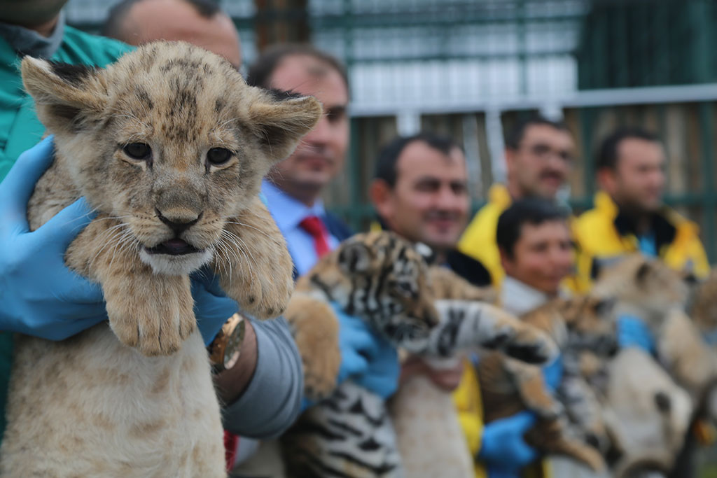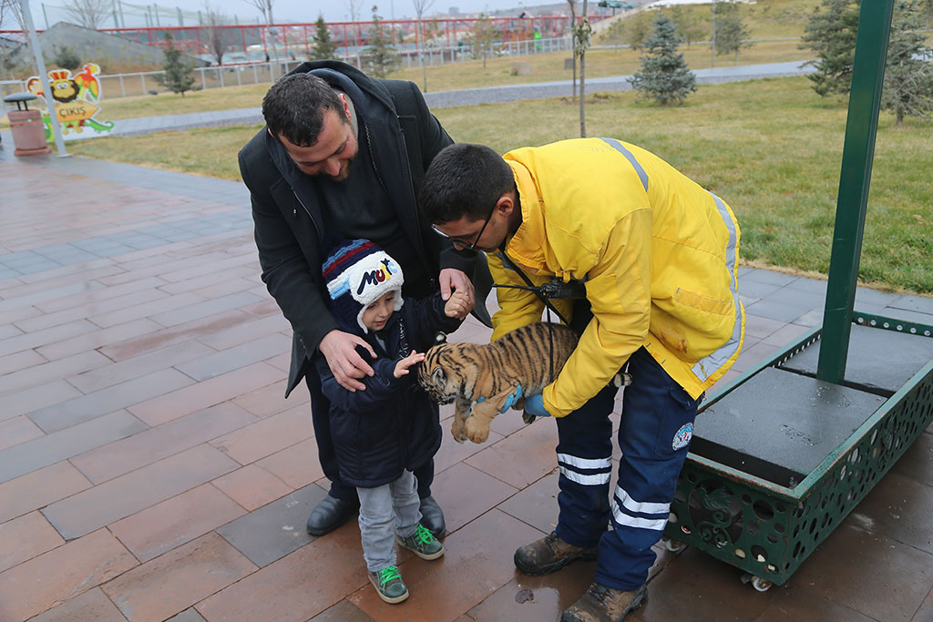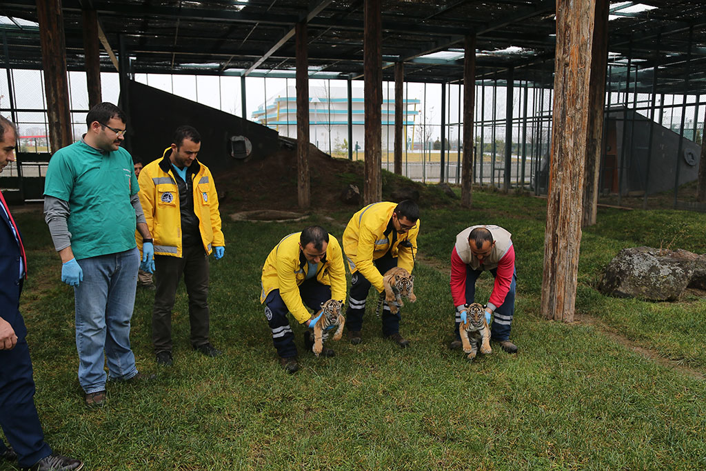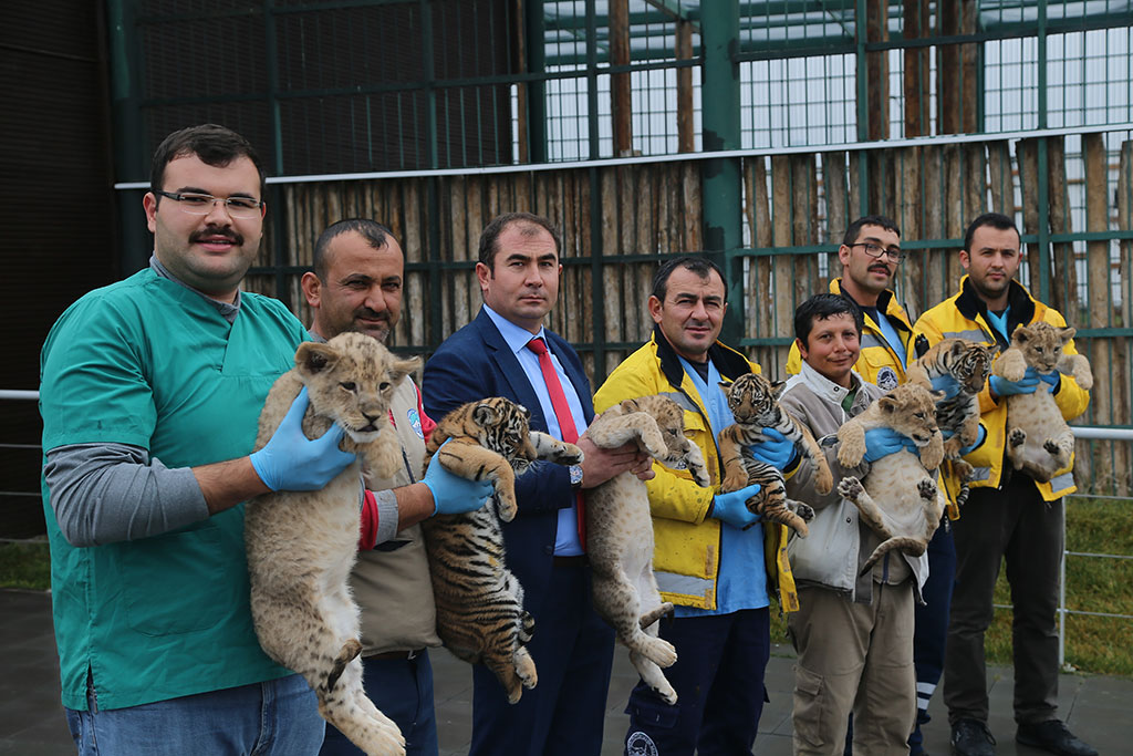 Anadolu Harikalar Diyarı’ndaki Hayvanat Bahçesi’nde dört aslan, üç kaplan yavrusu dünyaya geldi HAYVANAT BAHÇESİ’NİN MASKOTU OLDULAR Kayseri Büyükşehir Belediyesi tarafından yapılan Anadolu Harikalar Diyarı içindeki Hayvanat Bahçesi’nde bereketli bir dönem yaşanıyor. Hayvanat Bahçesi’nde ekim ayının sonunda üç kaplan yavrusu, kasım ayının başında ise dört aslan yavrusu dünyaya geldi. Yavru aslan ve kaplanlar Hayvanat Bahçesi’nin maskotu haline geldiler. Anadolu Harikalar Diyarı’ndaki Hayvanat Bahçesi’nde 26 Ekimde üç dişi yavru kaplan dünyaya geldi. Bu doğumdan kısa süre sonra 1 Kasım’da bu kez üç dişi bir erkek aslan dünyaya gözlerini açtı. Çok sağlıklı olan ve anne sütü ile beslenen aslan ve kaplan yavruları ziyaretçilerin büyük ilgisiyle karşılaştı. Hayvanat Bahçesi Sorumlusu Veteriner Hekim Burhanettin Bacak, yavruları günlük olarak annelerinden ayırarak sağlık kontrolünden geçirdiklerini ve herhangi bir sağlık sorunlarının bulunmadığını belirtti. Burhanettin Bacak, halen anne sütü ile beslenen yavrulara önümüzdeki günlerde ek besinler vereceklerini kaydetti. KÜÇÜKLER SEVİMLİ, BÜYÜKLER YIRTICI Aslan ve kaplan yavruları Hayvanat Bahçesi’nin maskotu haline geldi. Günlük olarak sağlık kontrolünden geçen yavrular görevlilerin nezaretinde ziyaretçilerle buluşturuluyor. Bazı çocuklar hayvanları severken bazıları ne de olsa aslan ve kaplan yavruları diyerek uzak duruyorlar. Anne aslan ve kaplan ise barınma alanlarında dahi yavrulara gösterilen bu ilgiden rahatsızlıklarını her halleriyle gösteriyorlar ve yırtıcı bir tutum sergiliyorlar. ASLAN VE KAPLAN NÜFUSU ARTTI Anadolu Harikalar Diyarı’ndaki Hayvanat Bahçesi’nde son doğumlarla aslan ve kaplan nüfusu arttı. Hayvanat Bahçesi’nde yetişkin olarak iki erkek dört dişi kaplan ve bir erkek dört dişi aslan bulunuyor. Yavrularla birlikte toplam sayı iki erkek yedi dişi kaplan ve iki erkek yedi dişi aslana ulaştı.